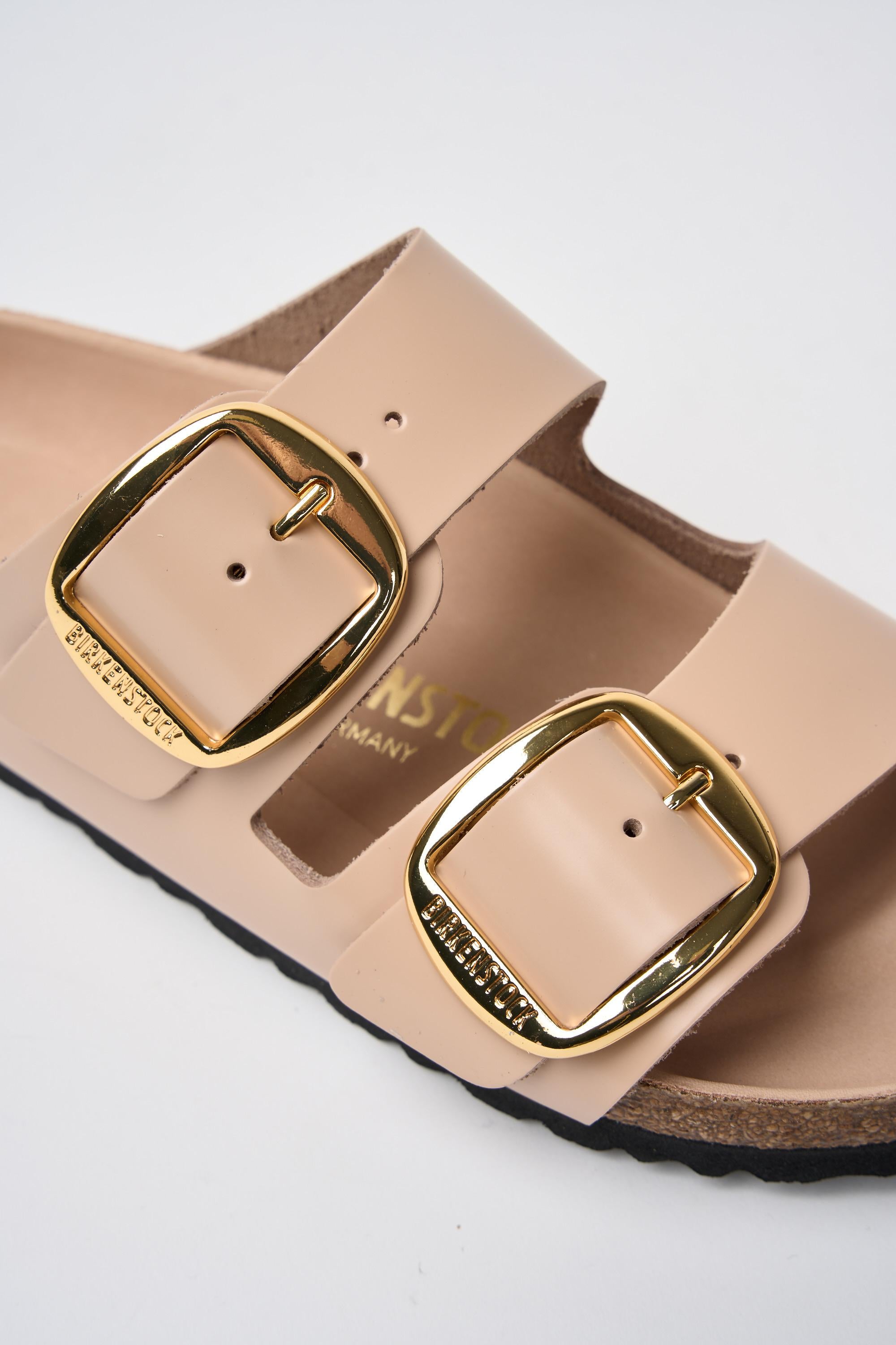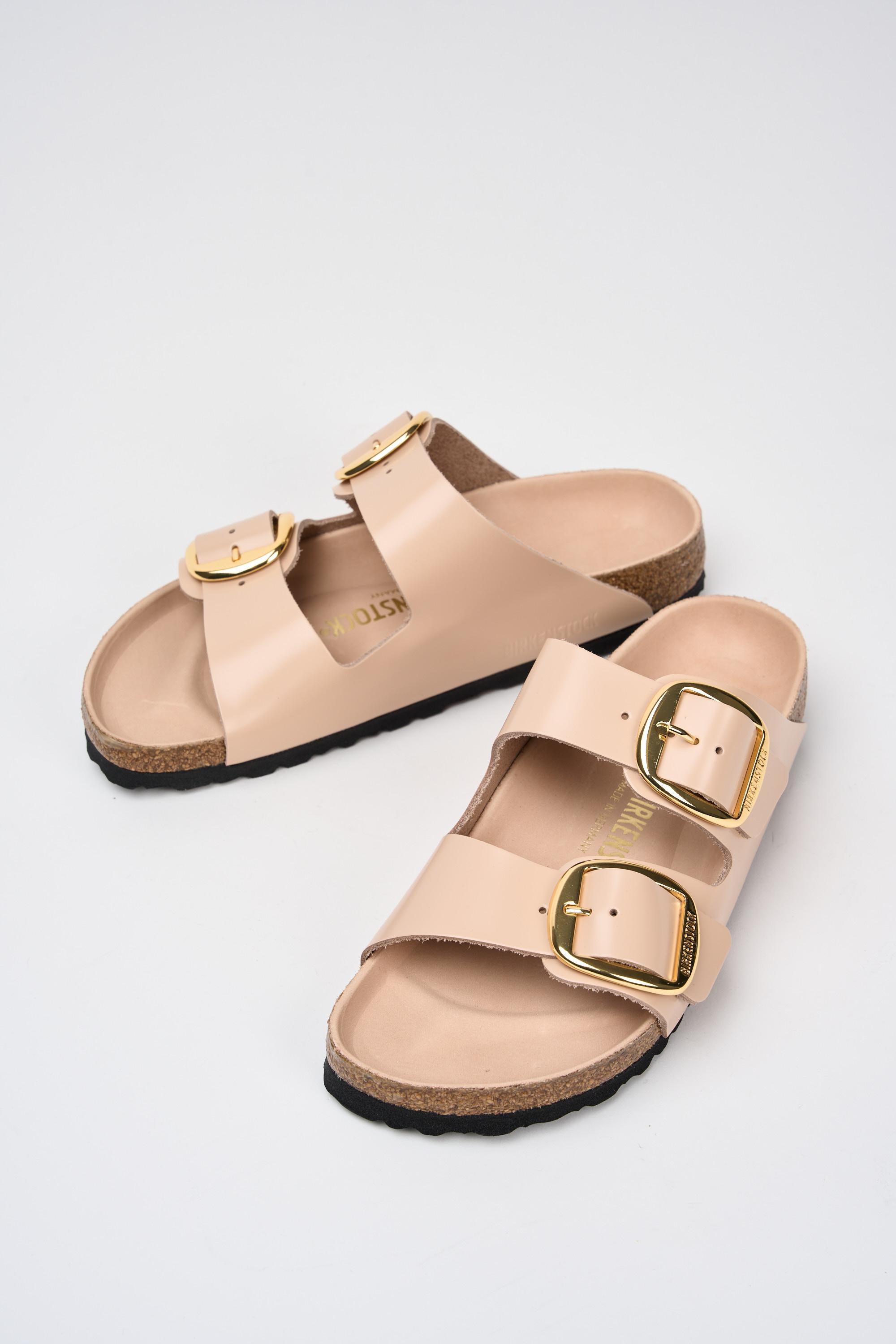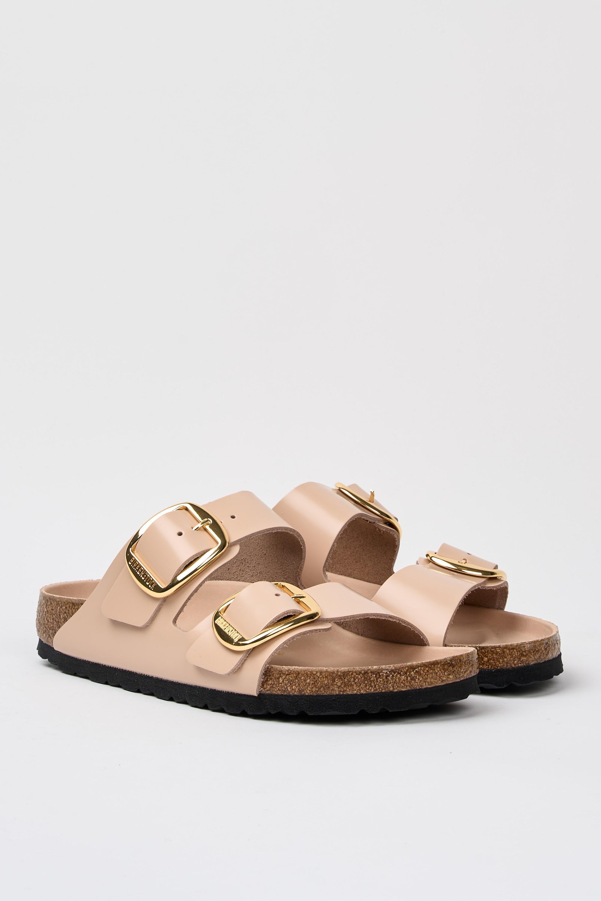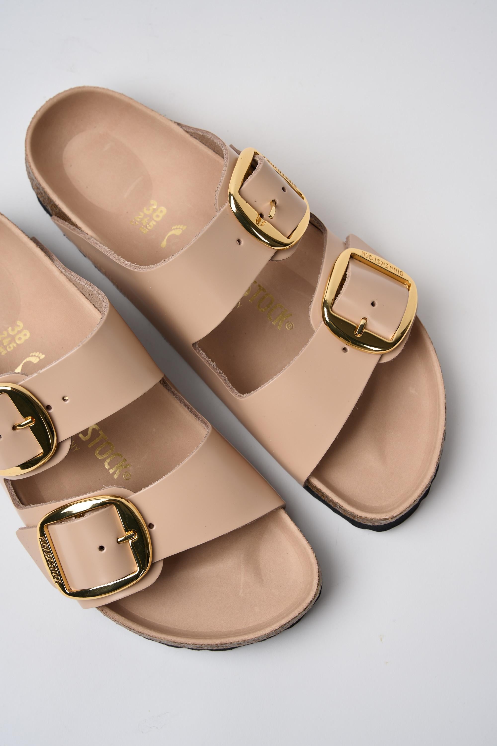 Sandalo modello Arizona con tomaia in pregiata pelle naturale con una brillante finitura laccata. Due cinturini con grandi fibbie in metallo regolabili individualmente in colore coordinato e suola in EVA. Sottopiede in pelle piumato per offrire una straordinaria comodità. Plantare dalla forma anatomica in sughero e lattice. Pianta stretta.