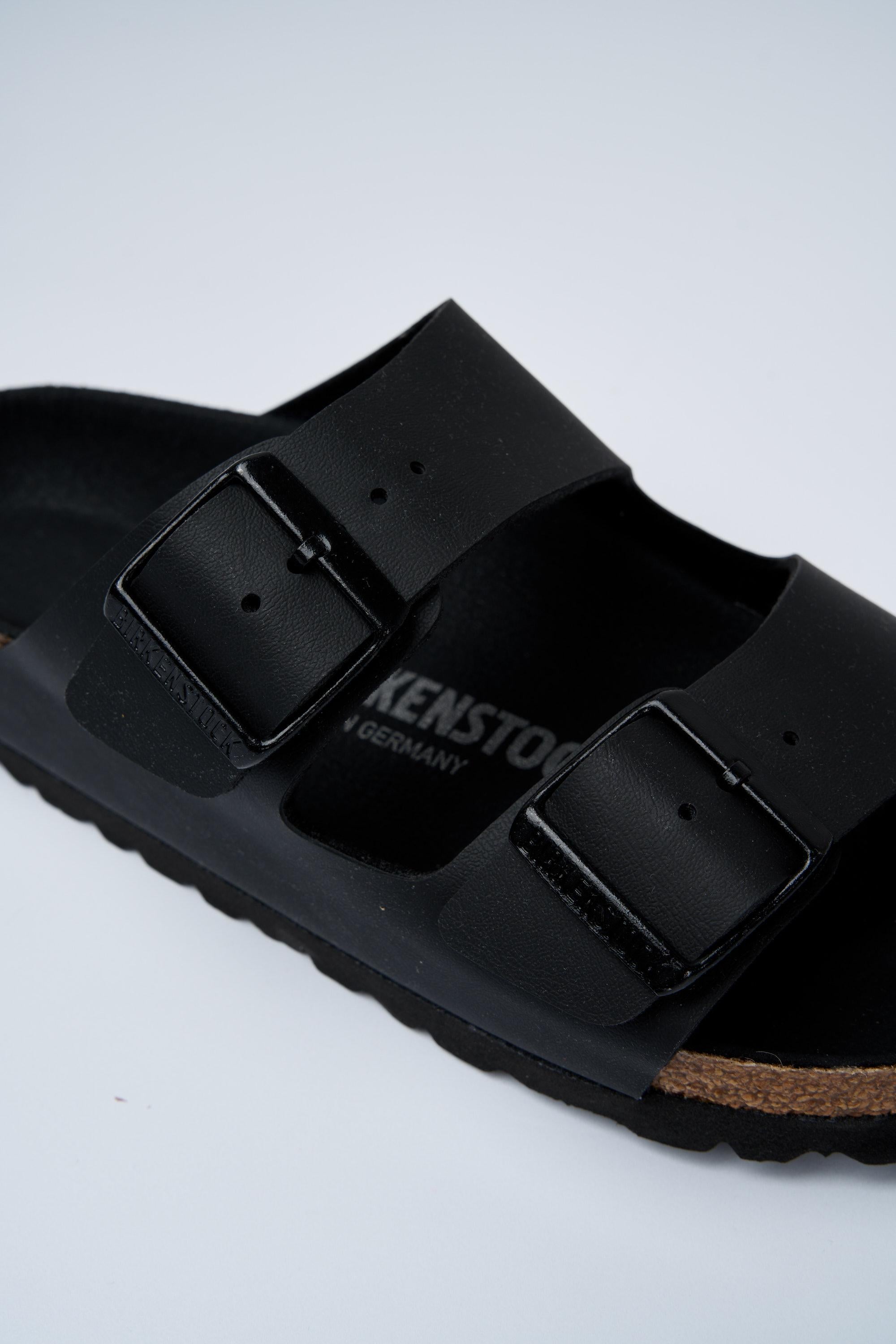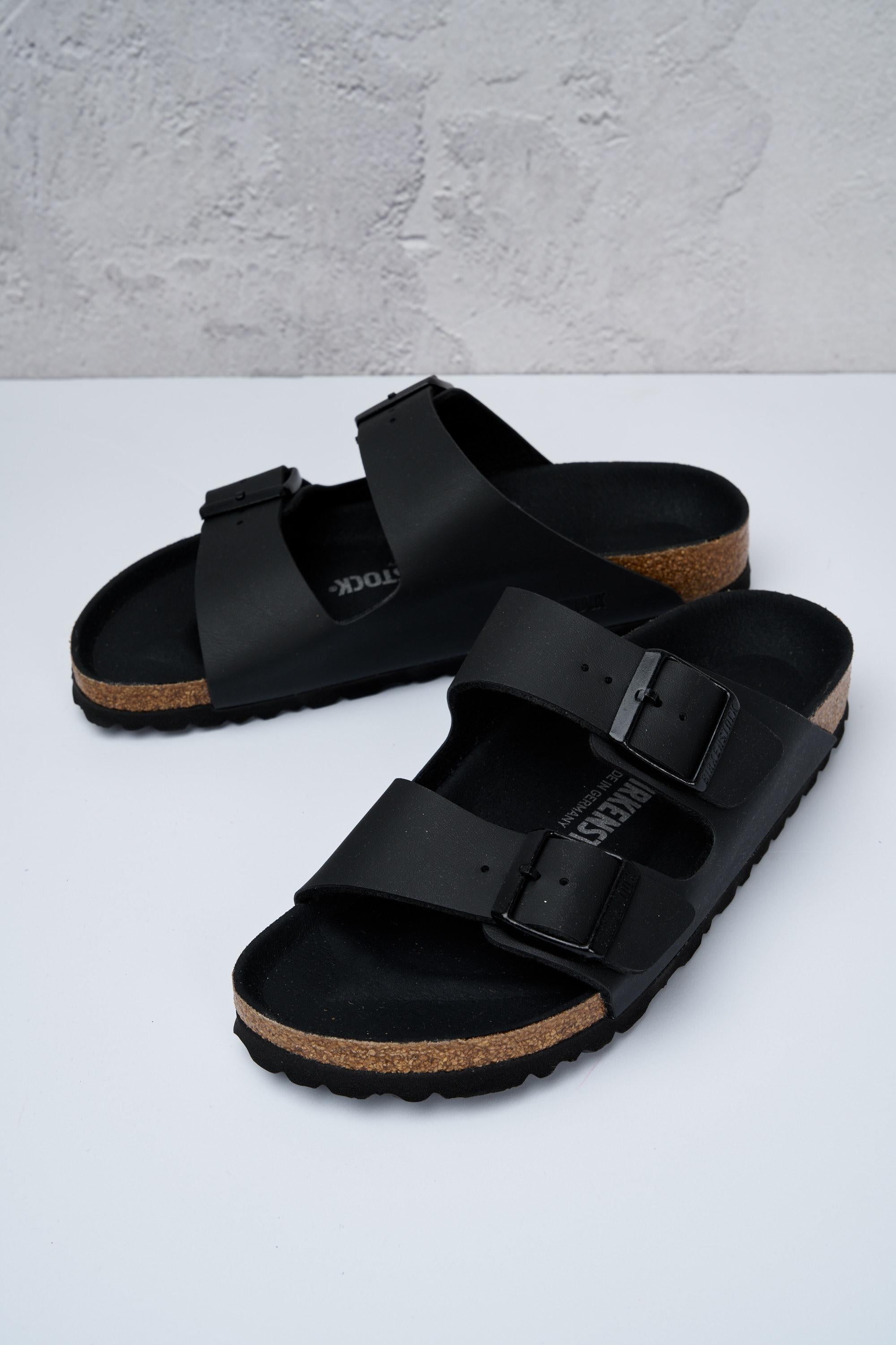 Sandalo modello Arizona con tomaia in Birko-Flor®, due cinturini con fibbie in metallo regolabili singolarmente e suola in EVA. Sottopiede microfibra e plantare in colore coordinato dalla forma anatomica in sughero e lattice.
