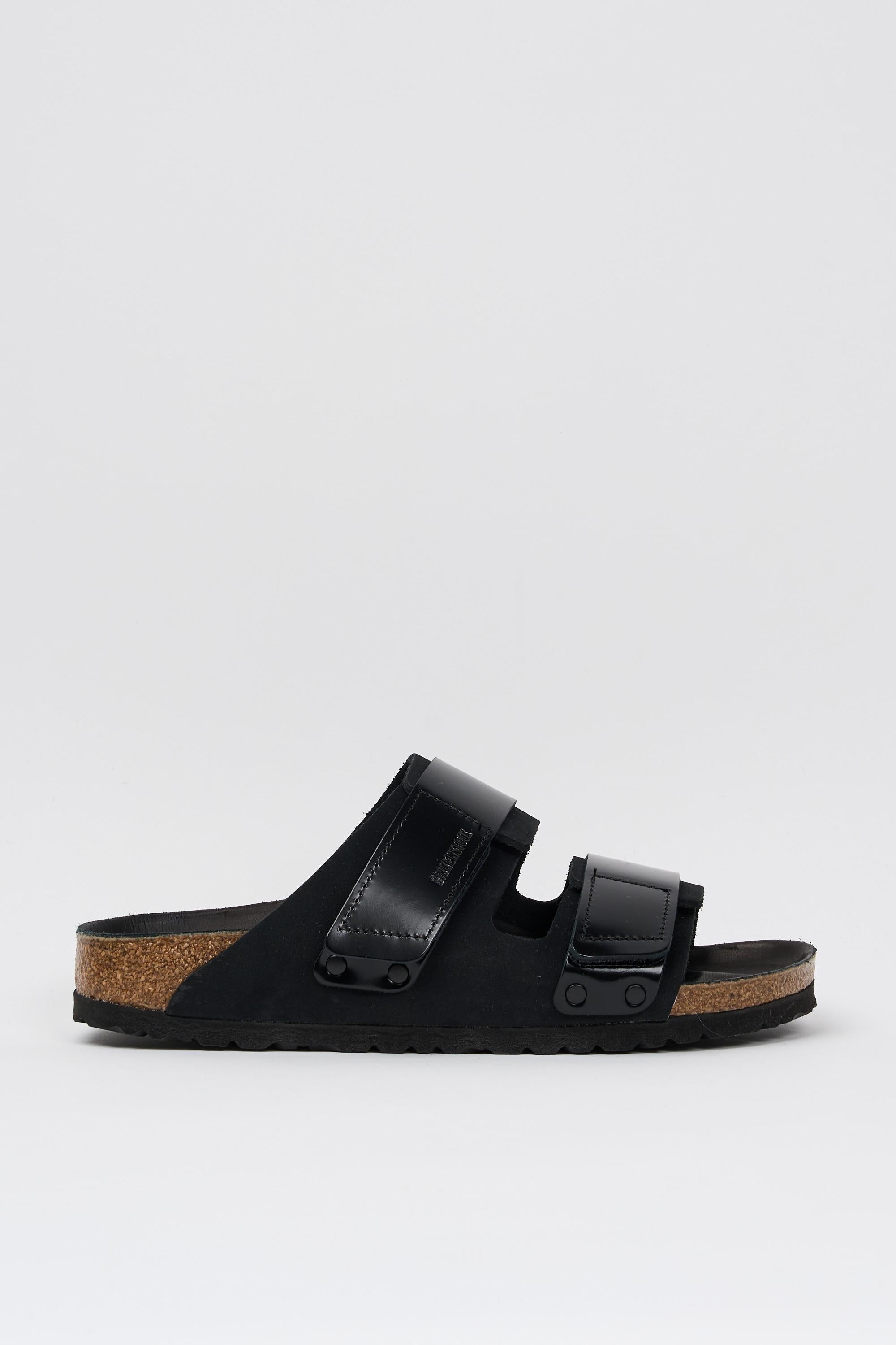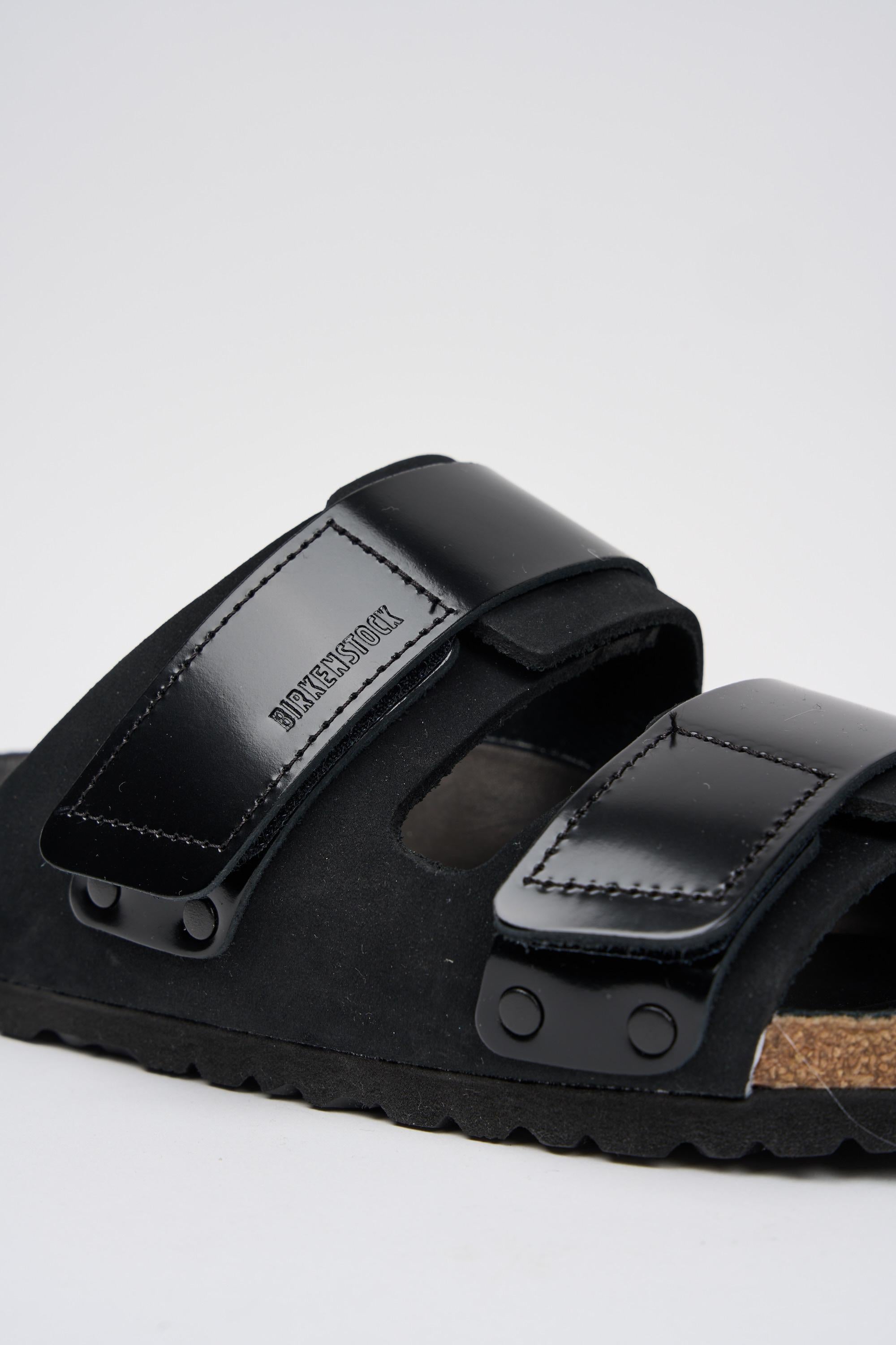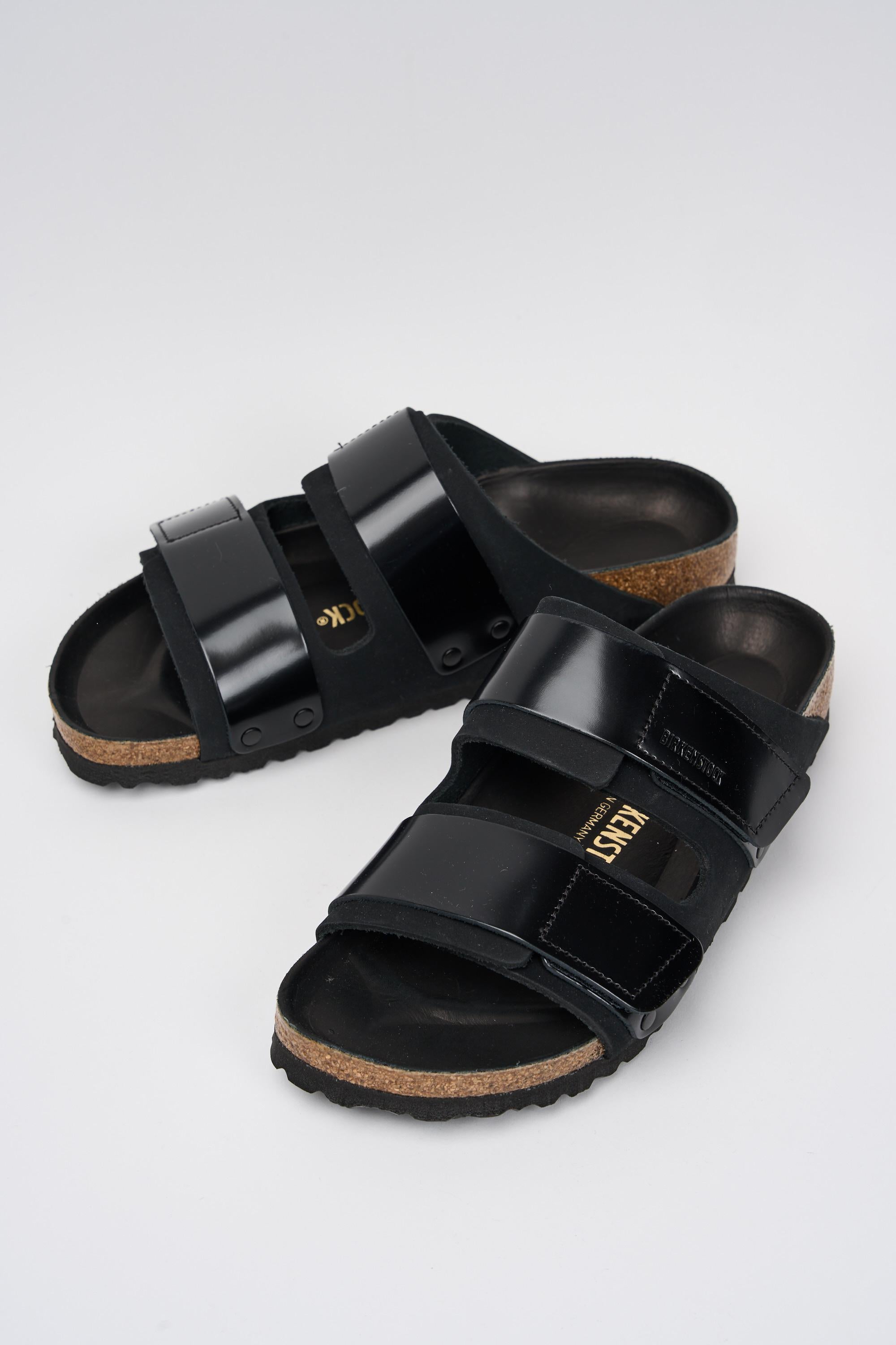 Sandalo modello Uji con tomaia in pregiata pelle nabuk, due chiusure regolabili individualmente e rivetti decorativi. Suola in EVA. Sottopiede in pelle piumato per offrire una straordinaria comodità. Plantare dalla forma anatomica in sughero e lattice. Pianta stretta.