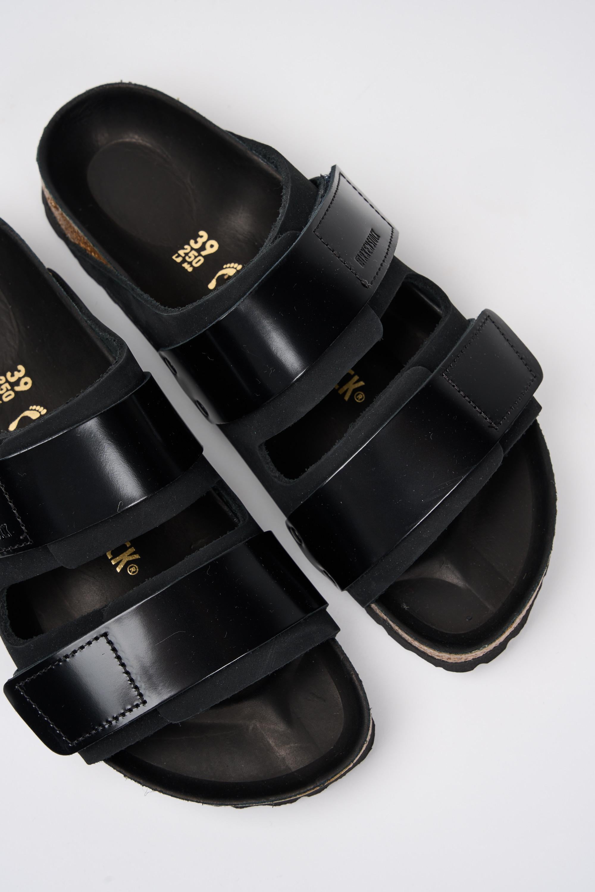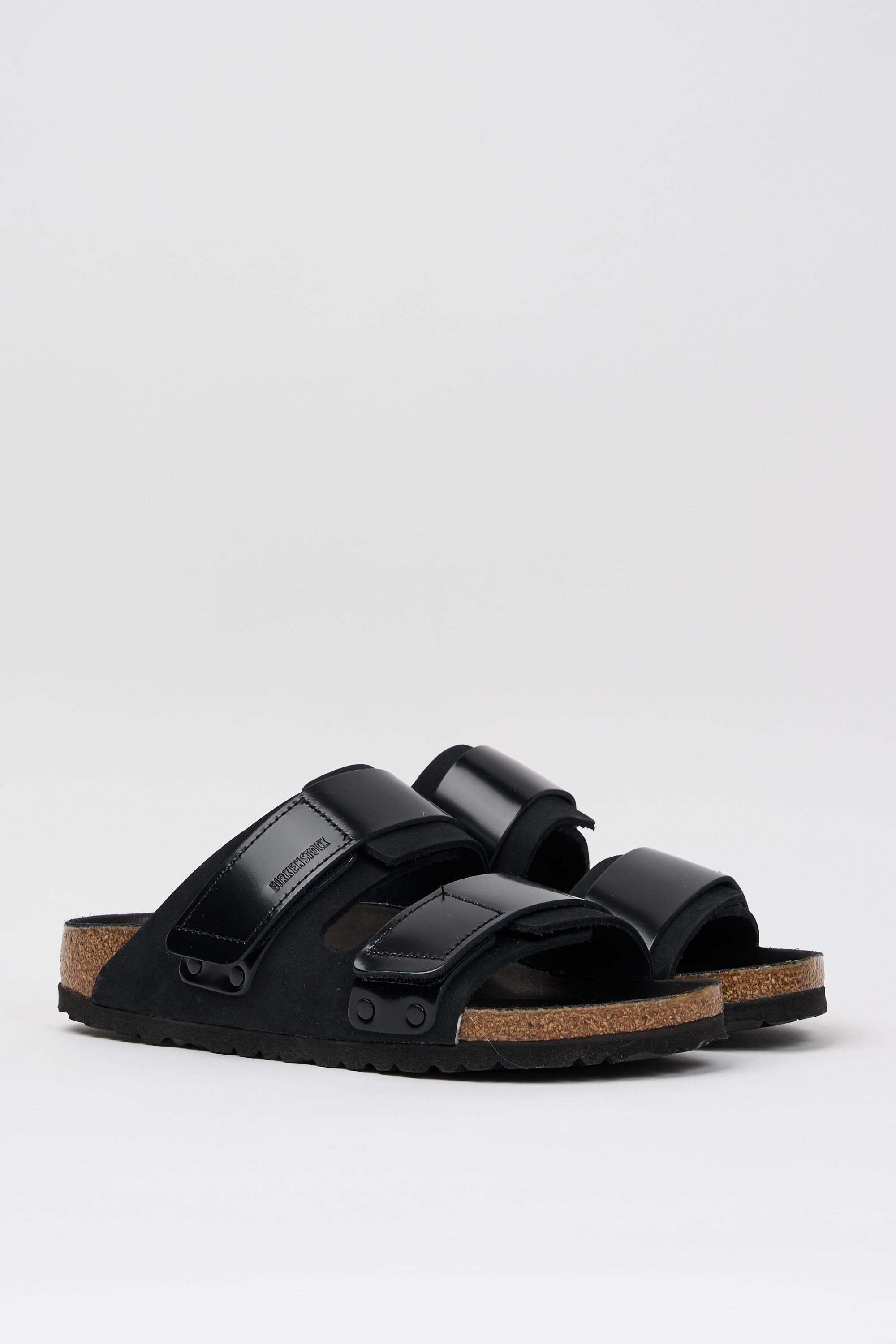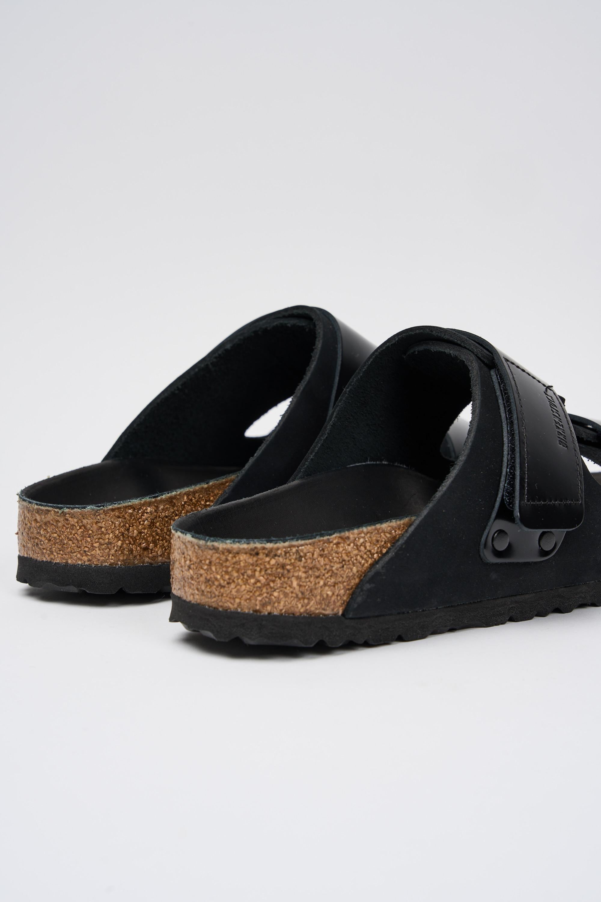 Sandalo modello Uji con tomaia in pregiata pelle nabuk, due chiusure regolabili individualmente e rivetti decorativi. Suola in EVA. Sottopiede in pelle piumato per offrire una straordinaria comodità. Plantare dalla forma anatomica in sughero e lattice. Pianta stretta.