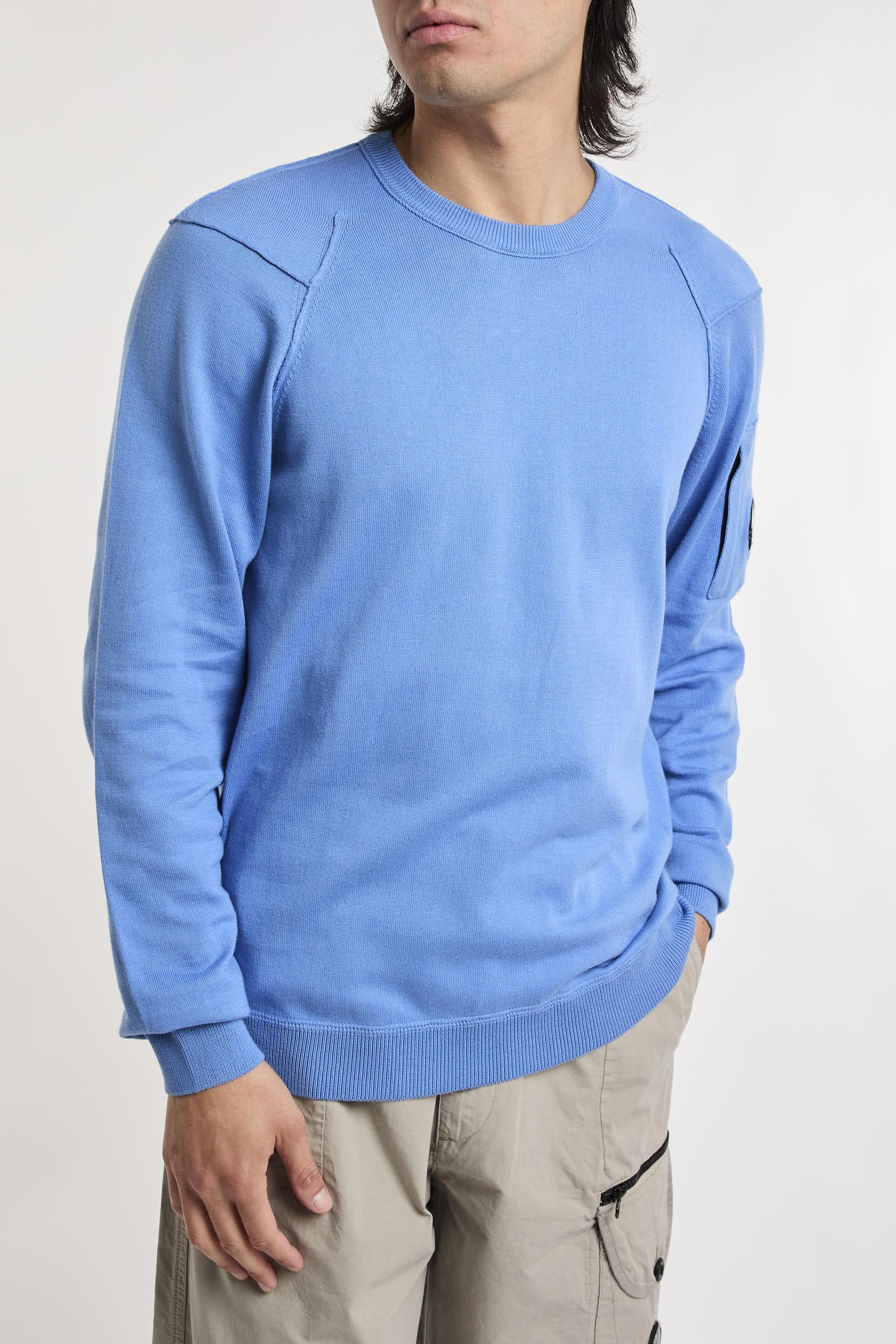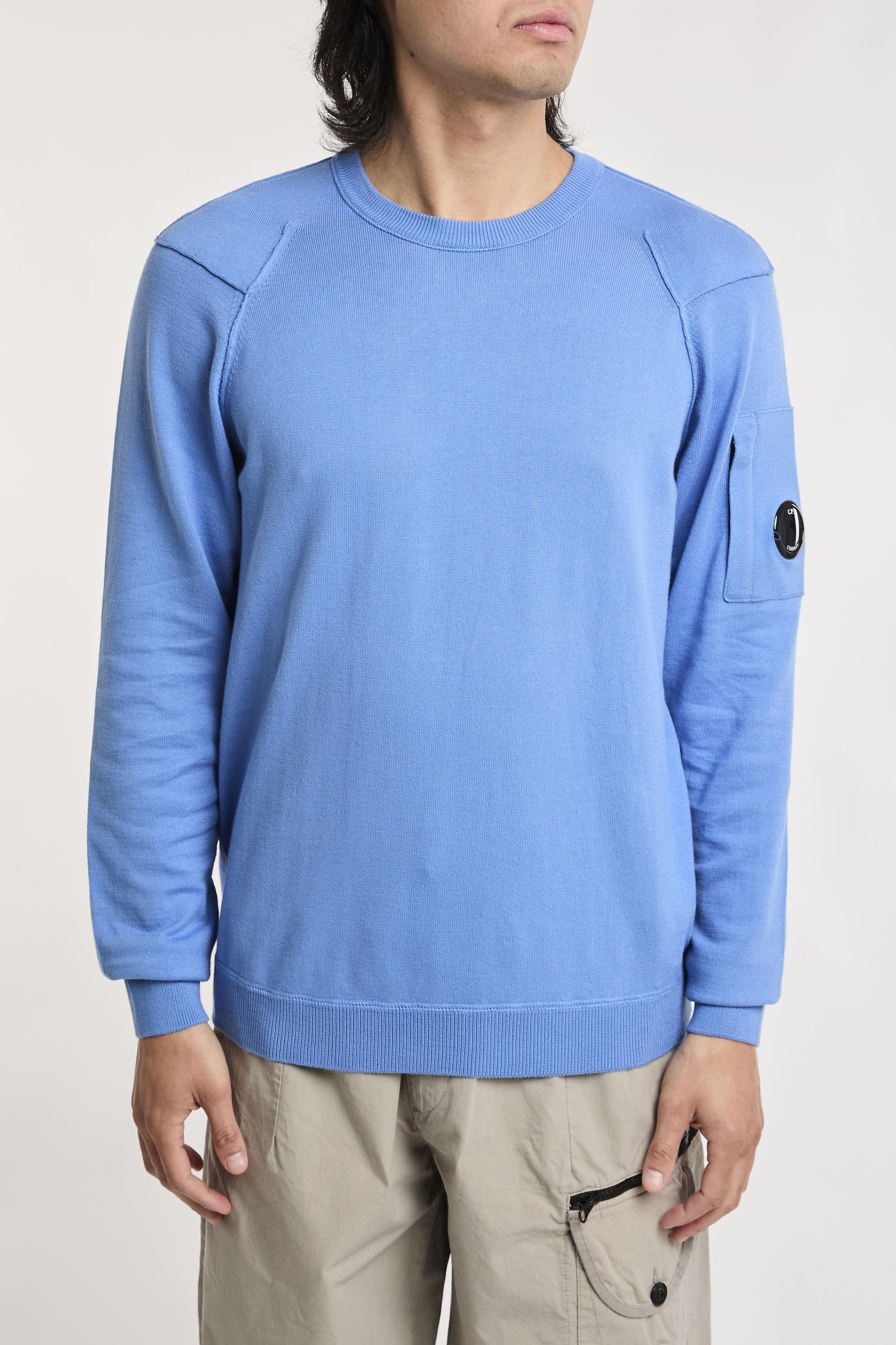 Maglione girocollo realizzato in cotone Sea Island, caratterizzato da Lente. Il cotone Sea Island è un materiale di prima scelta, che si distingue per la sua brillantezza, morbidezza e resistenza, anche dopo un uso prolungato. Fondo, collo e polsini a costine, e scomparto sulla manica con C.P. Company Lens. Cuciture a contrasto sul giromanica. Finezza 14. Regular fit. Il modello è alto 187cm e indossa la taglia 50.