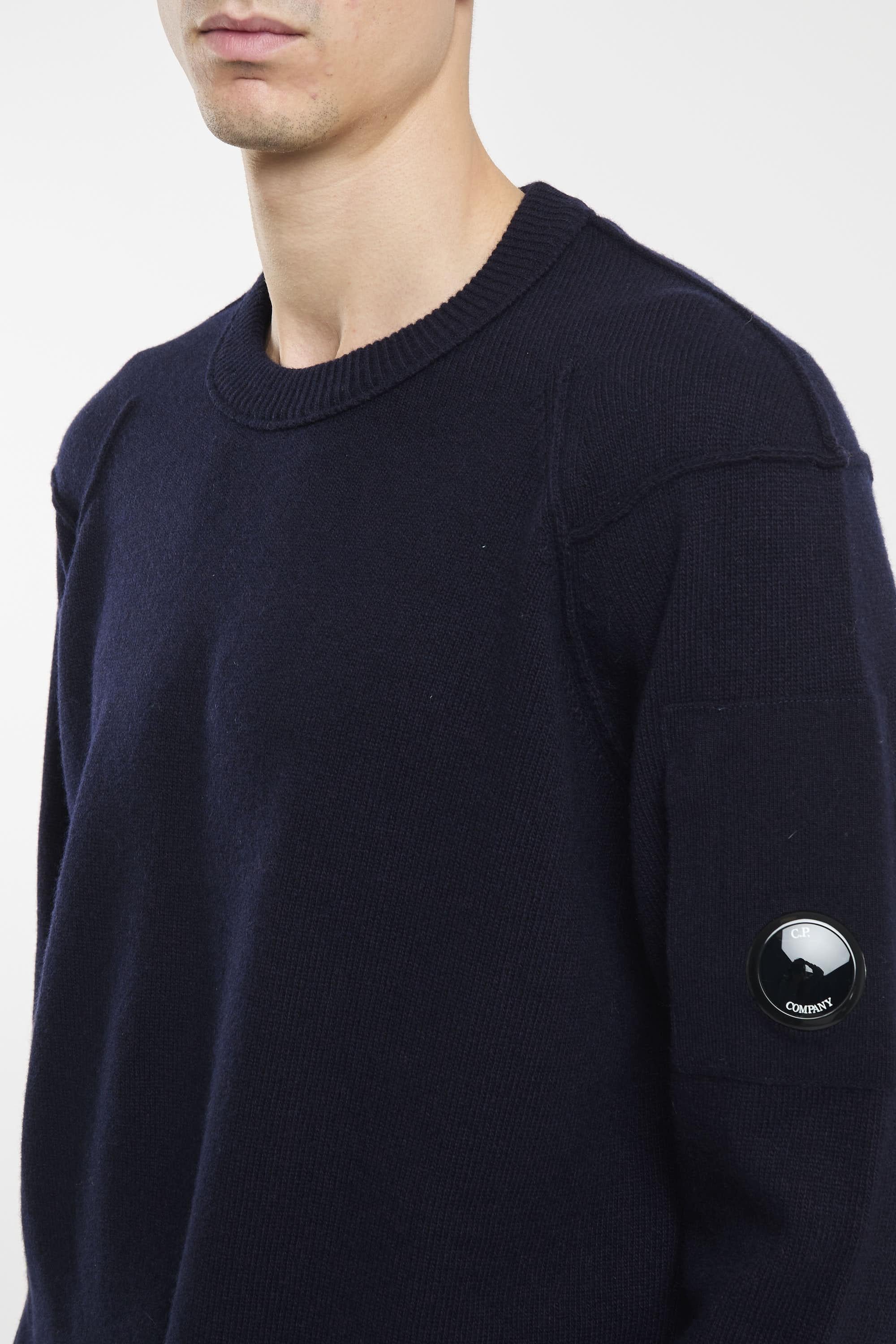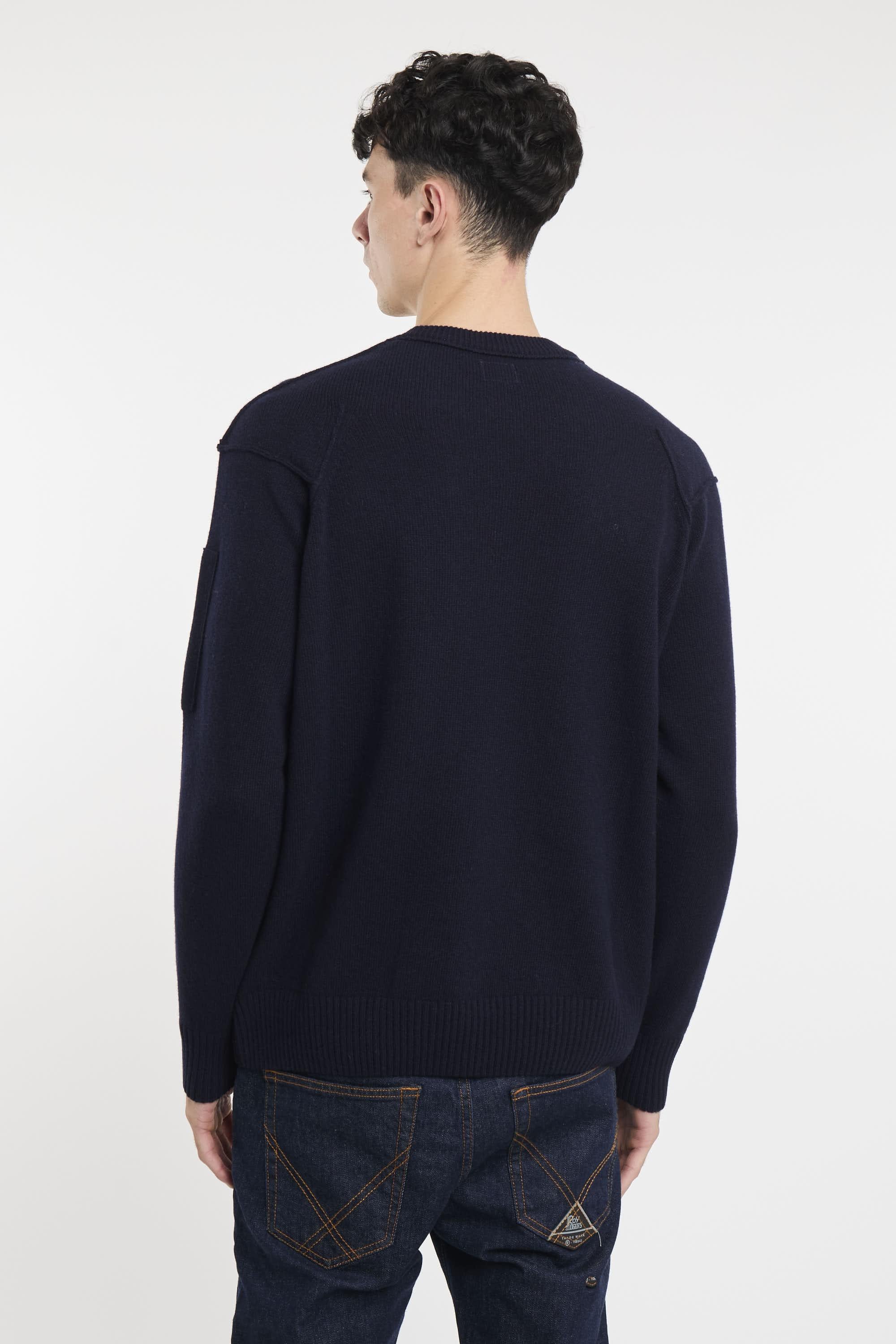 Maglione girocollo realizzato in Lambswool GRS. Global Recycled Standard certifica luso di prodotti nel rispetto di criteri ambientali e sociali estesi a tutte le fasi della filiera produttiva. Fondo, collo e polsini a costine, e scomparto sulla manica con C.P. Company Lens. Finezza 7. Regular fit. Il modello è alto 187cm e indossa la taglia 50.