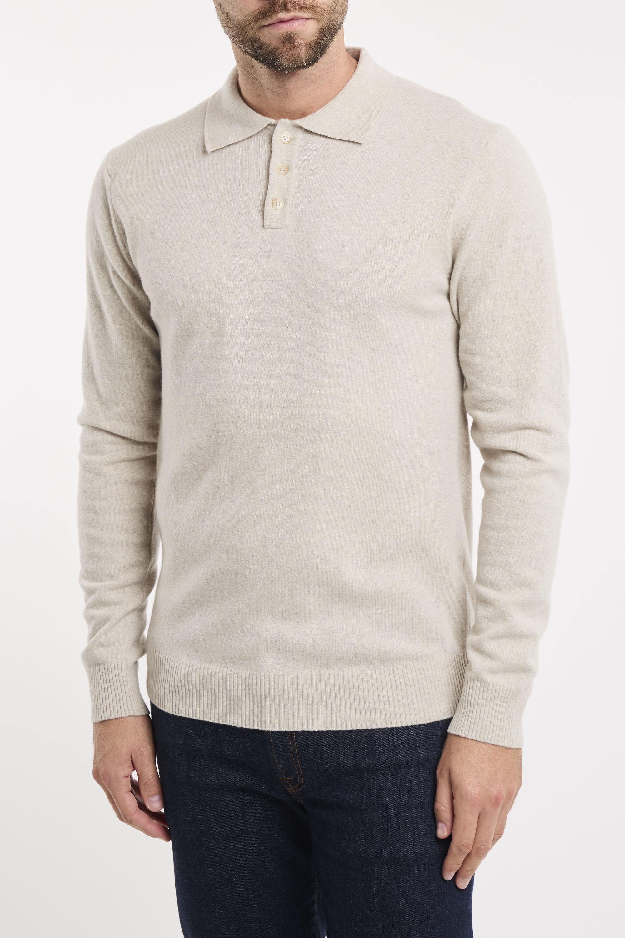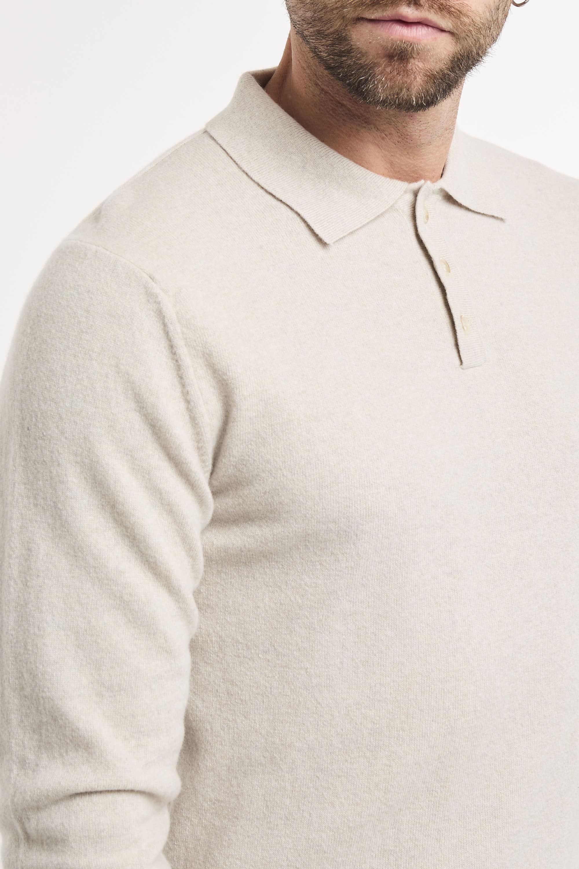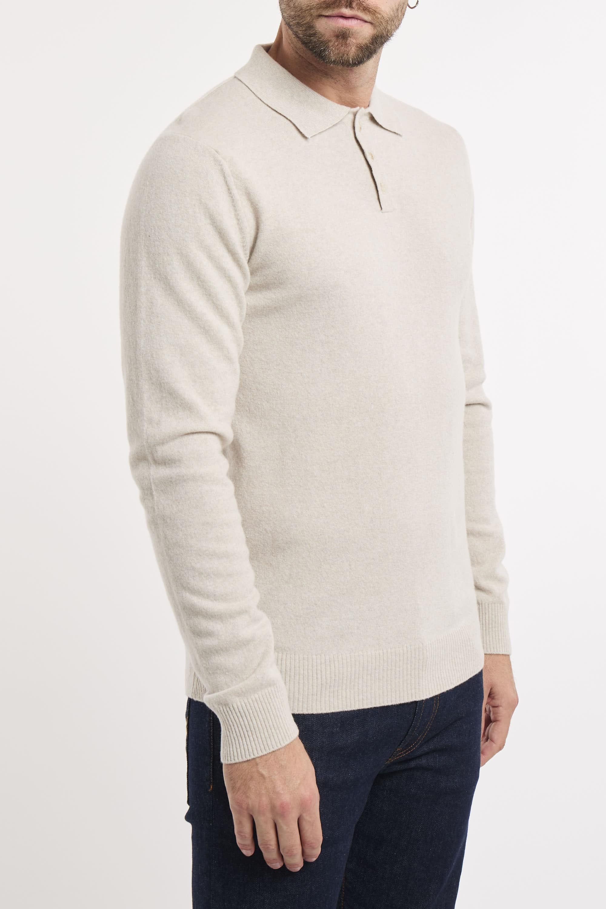 Polo in maglia manica lunga in 90% extrafine Merino wool e 10% cashmere, con balza a coste su fondo e polsini. Tinto filo, fit regolare, rasato. Il modello è alto 187 cm e indossa la taglia L.