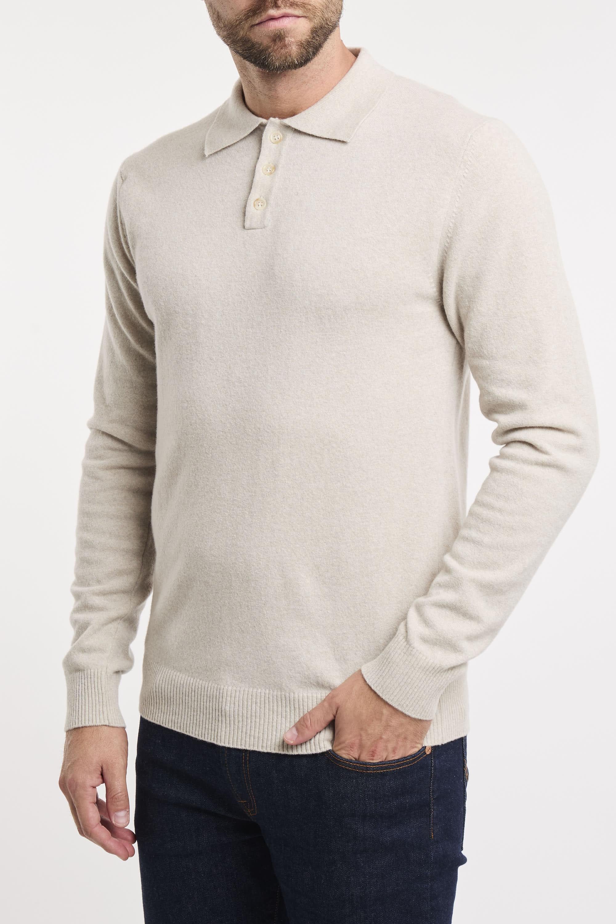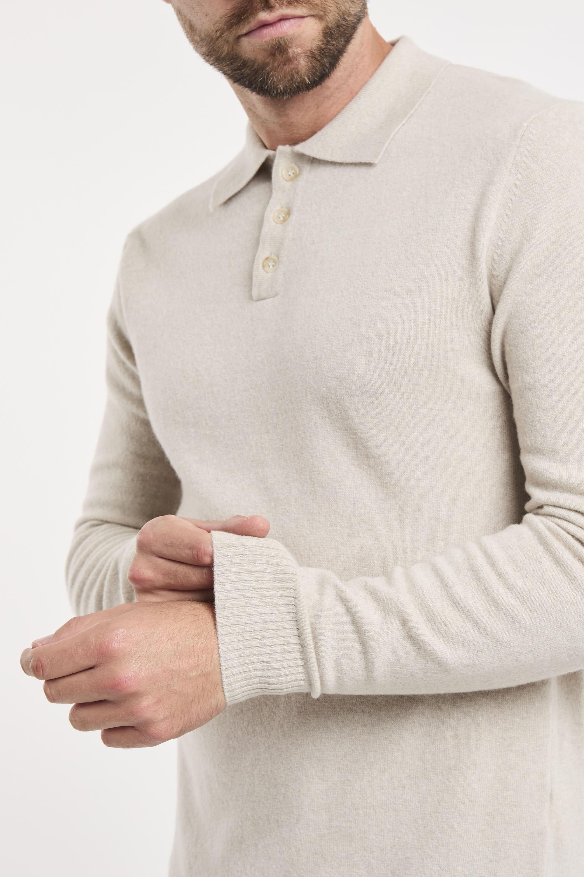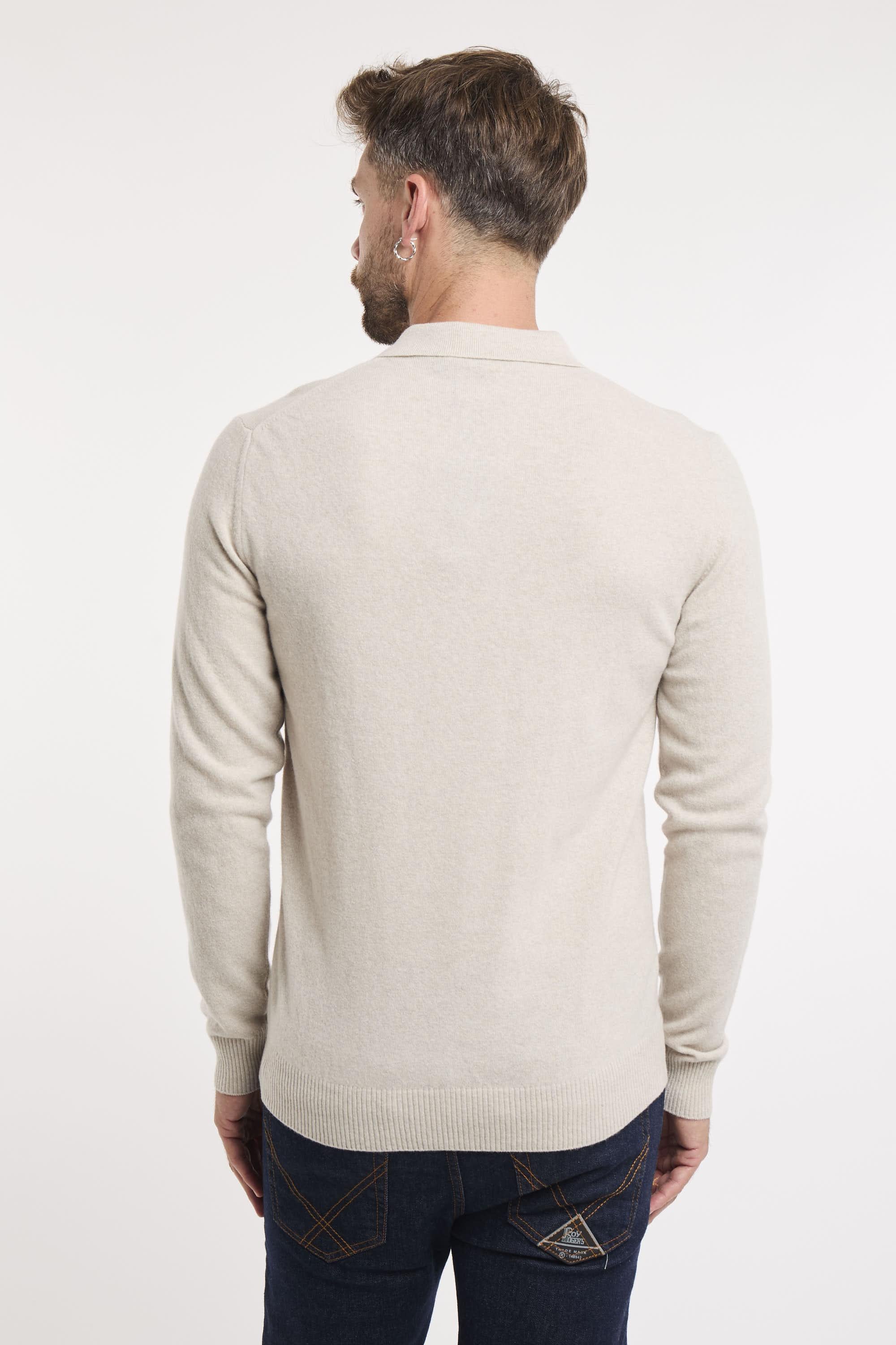Polo in maglia manica lunga in 90% extrafine Merino wool e 10% cashmere, con balza a coste su fondo e polsini. Tinto filo, fit regolare, rasato. Il modello è alto 187 cm e indossa la taglia L.
