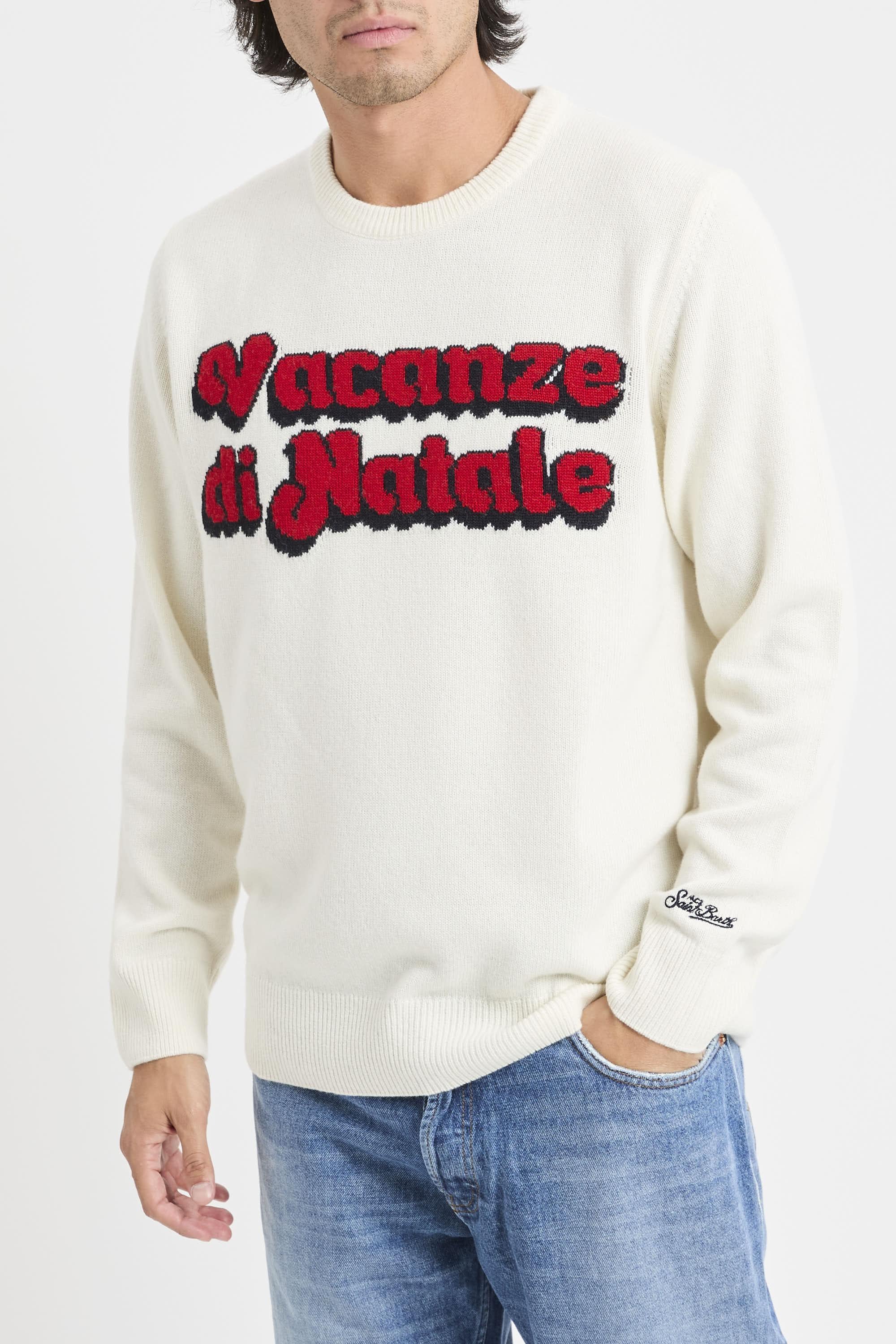 Maglia Heron girocollo. Collo, polsi e fondo a coste. Stampa jacquard del logo Vacanze di Natale sul davanti. Ricamo St. Barth sul polsino. Vestibilità regolare. Il modello è alto 187cm e indossa la taglia L.