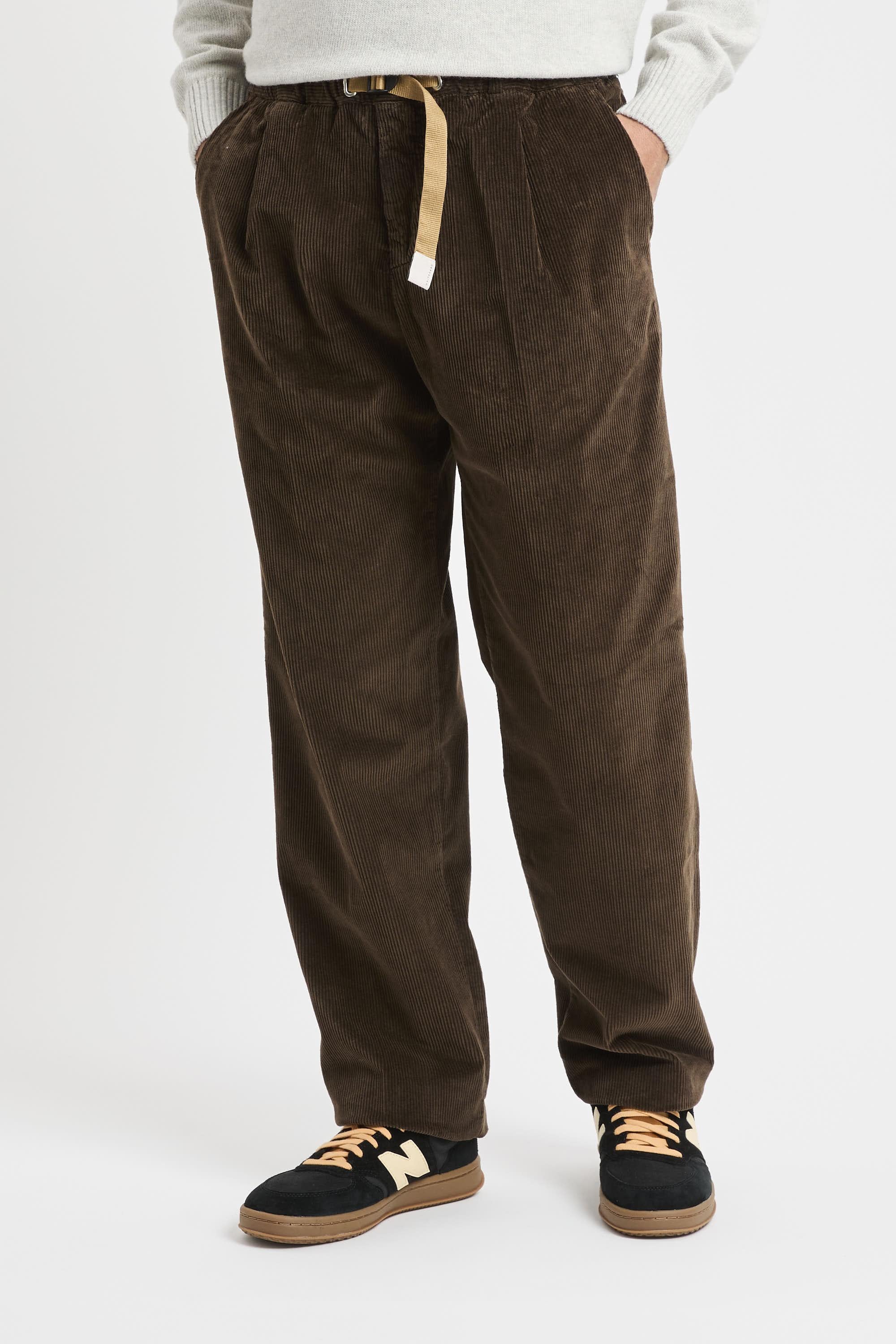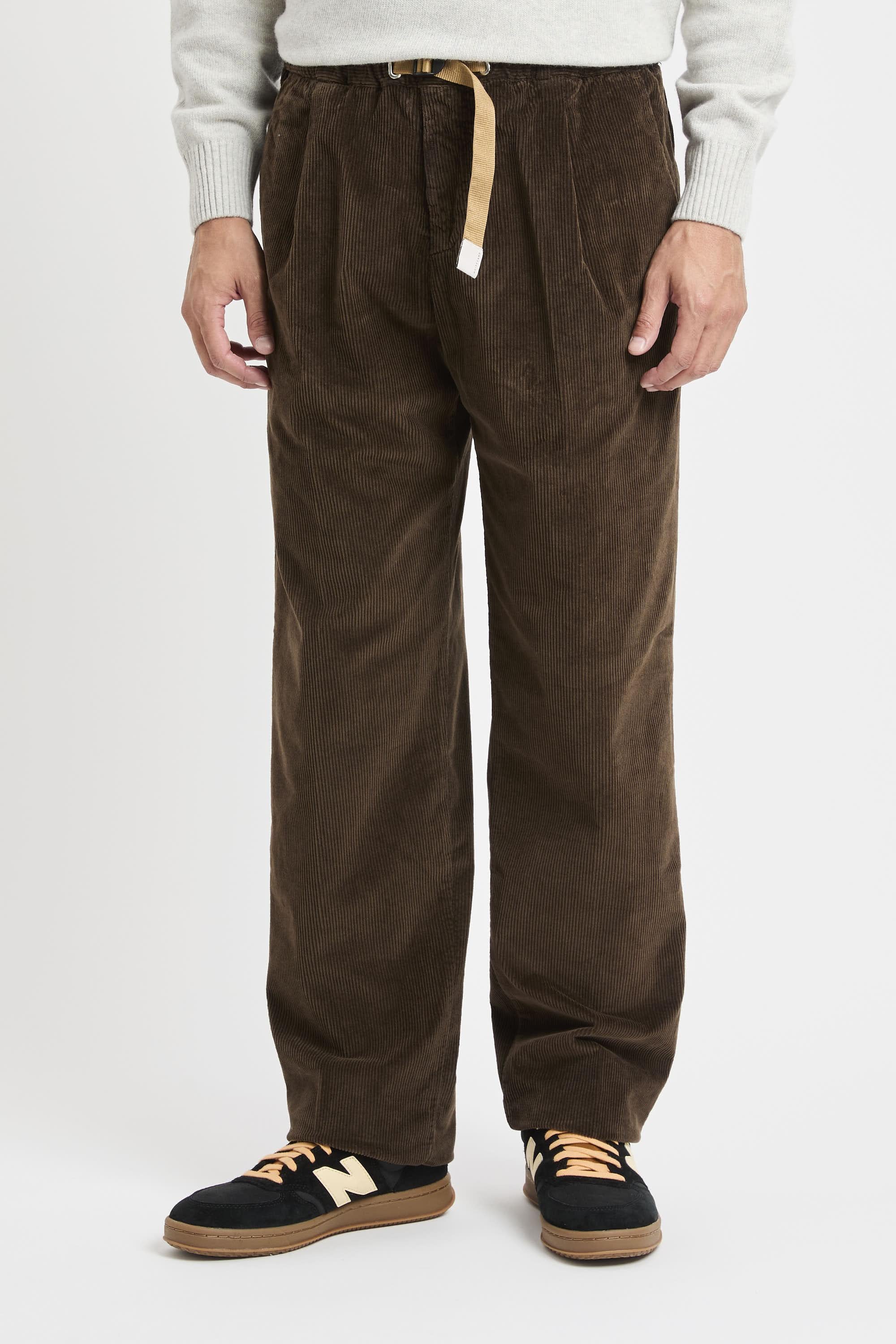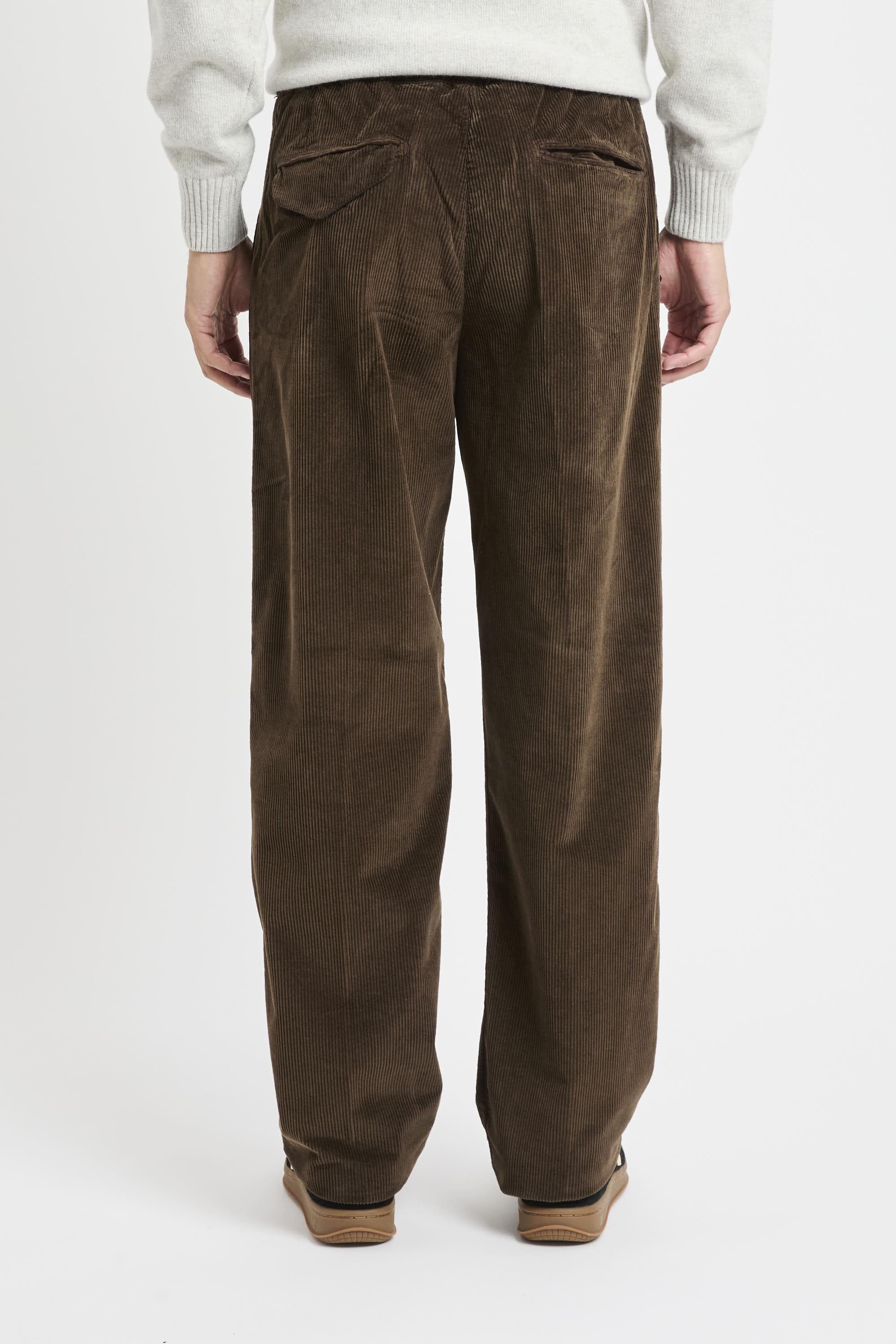 Pantalone in velluto con pinces, cintura regolabile con fibbia sul davanti. Due tasche laterali e due posteriori. Chiusura frontale con zip nascosta. Il modello è alto 187cm e indossa la taglia 48.