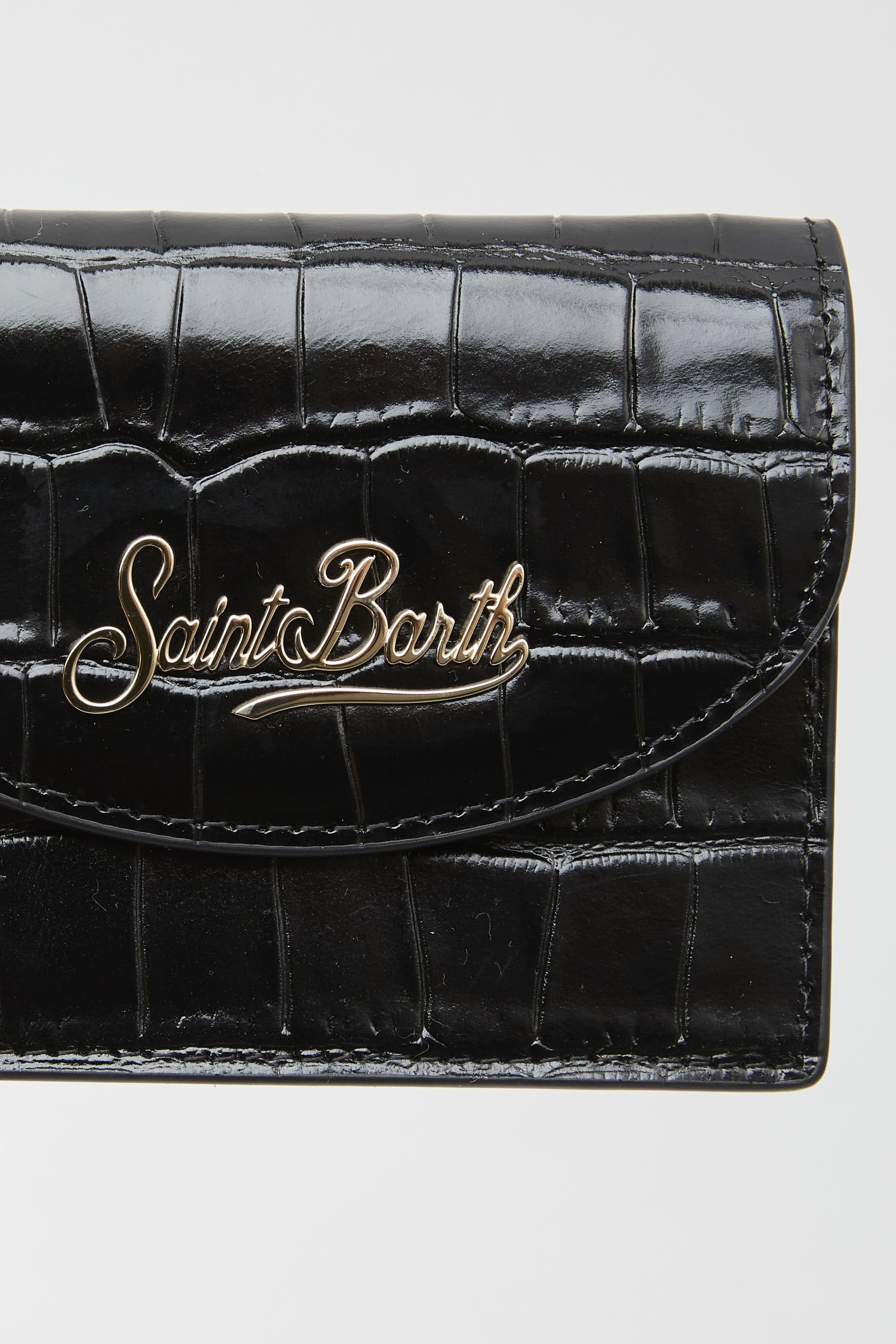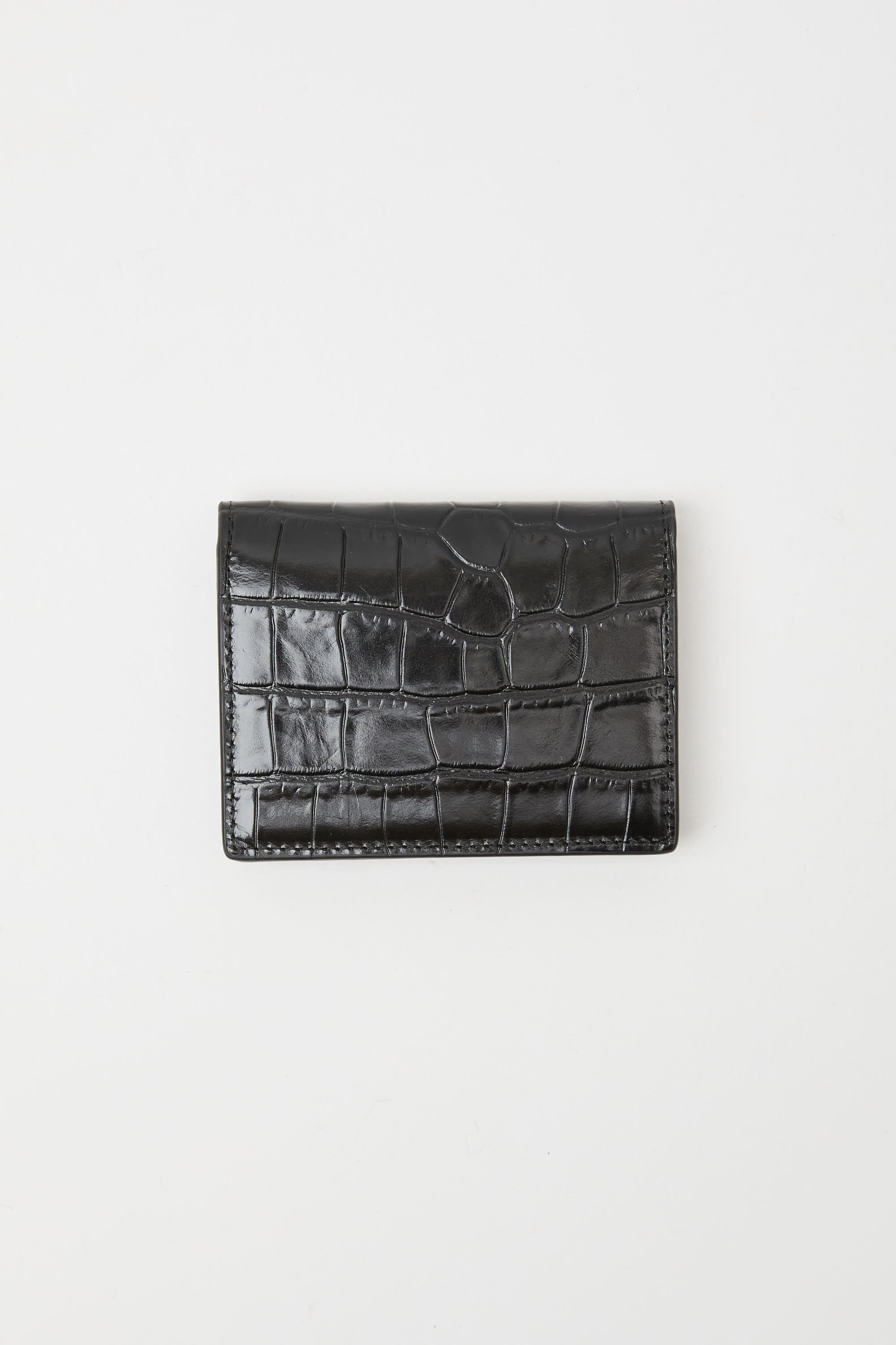 Portacarte in pelle stampa cocco nero. Scompartimenti per carte e monete. Placchetta logo. Dimensioni: 11x8,5x2cm.