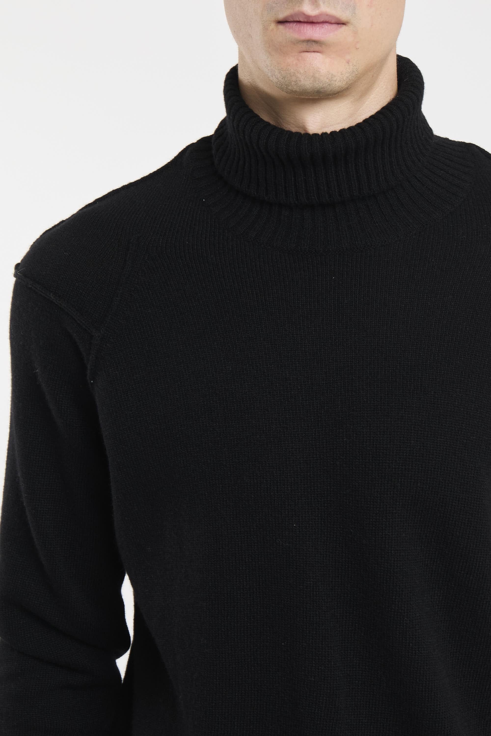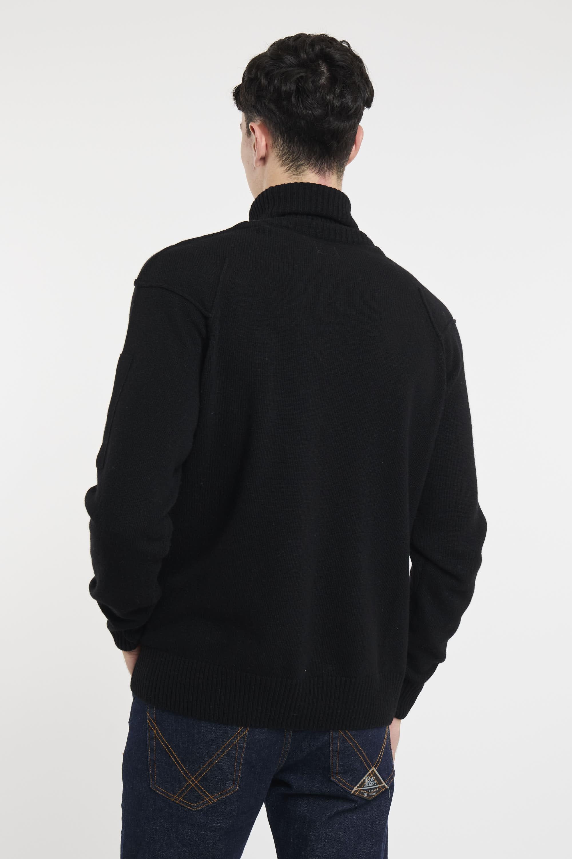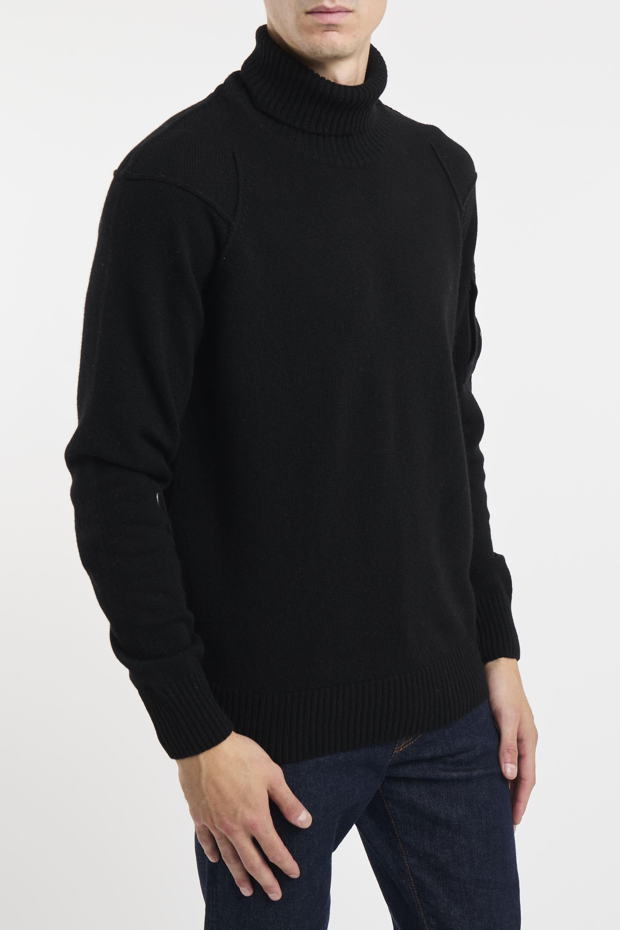 Maglione collo alto realizzato in Lambswool GRS. Global Recycled Standard certifica l'uso di prodotti nel rispetto di criteri ambientali e sociali estesi a tutte le fasi della filiera produttiva. Fondo, collo e polsini a costine, e scomparto sulla manica con C.P. Company Lens. Finezza 7. Regular fit. Il modello è alto 187cm e indossa la taglia 50.