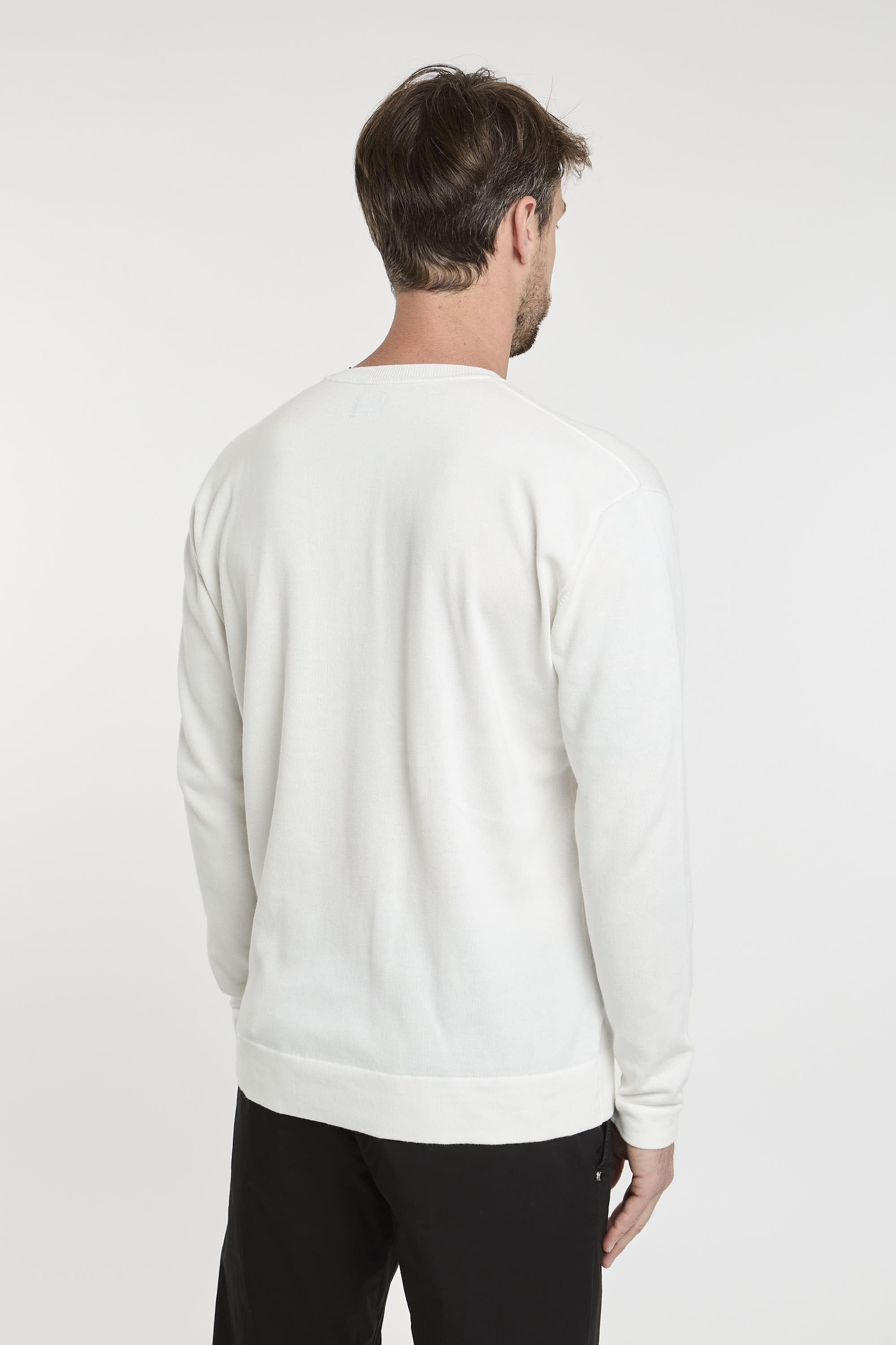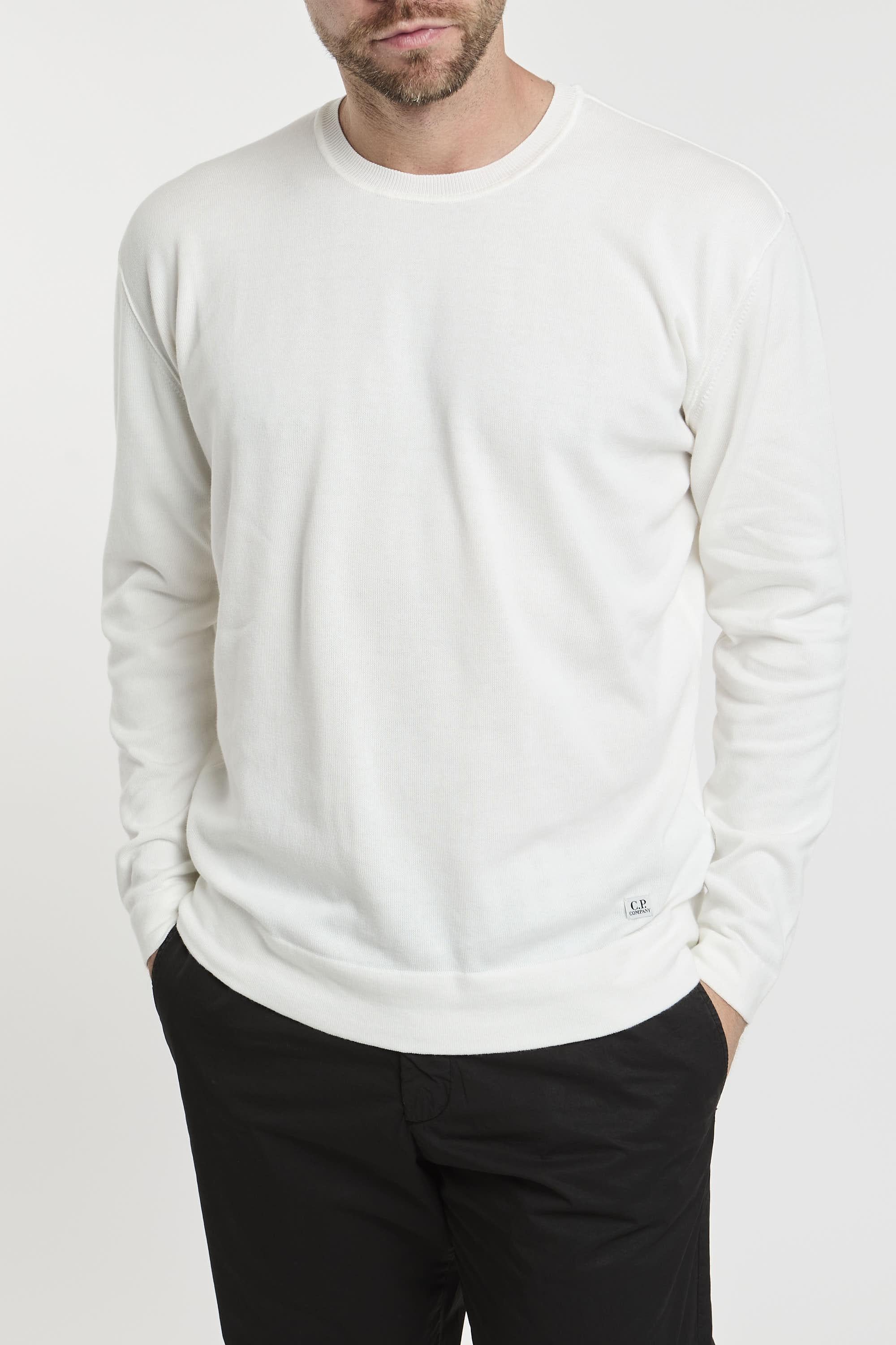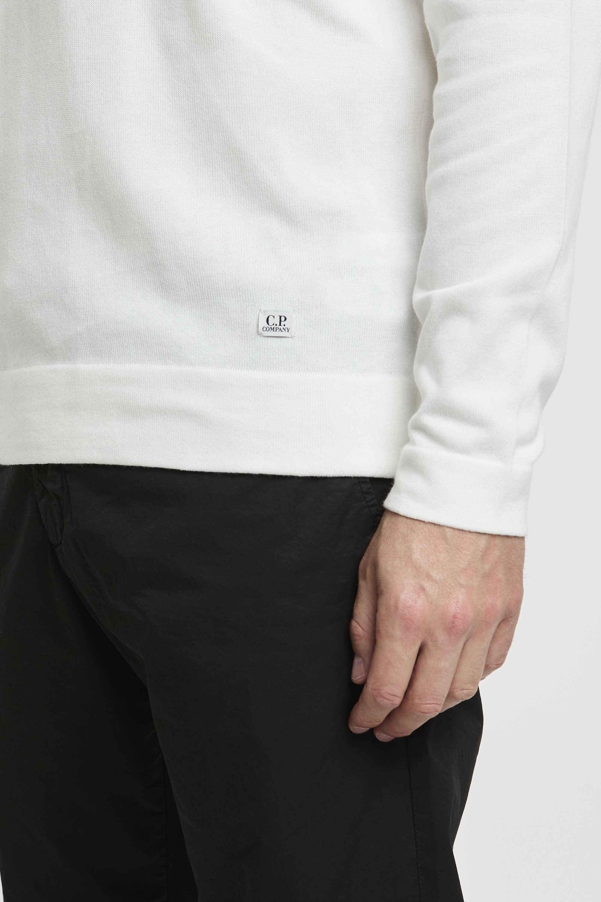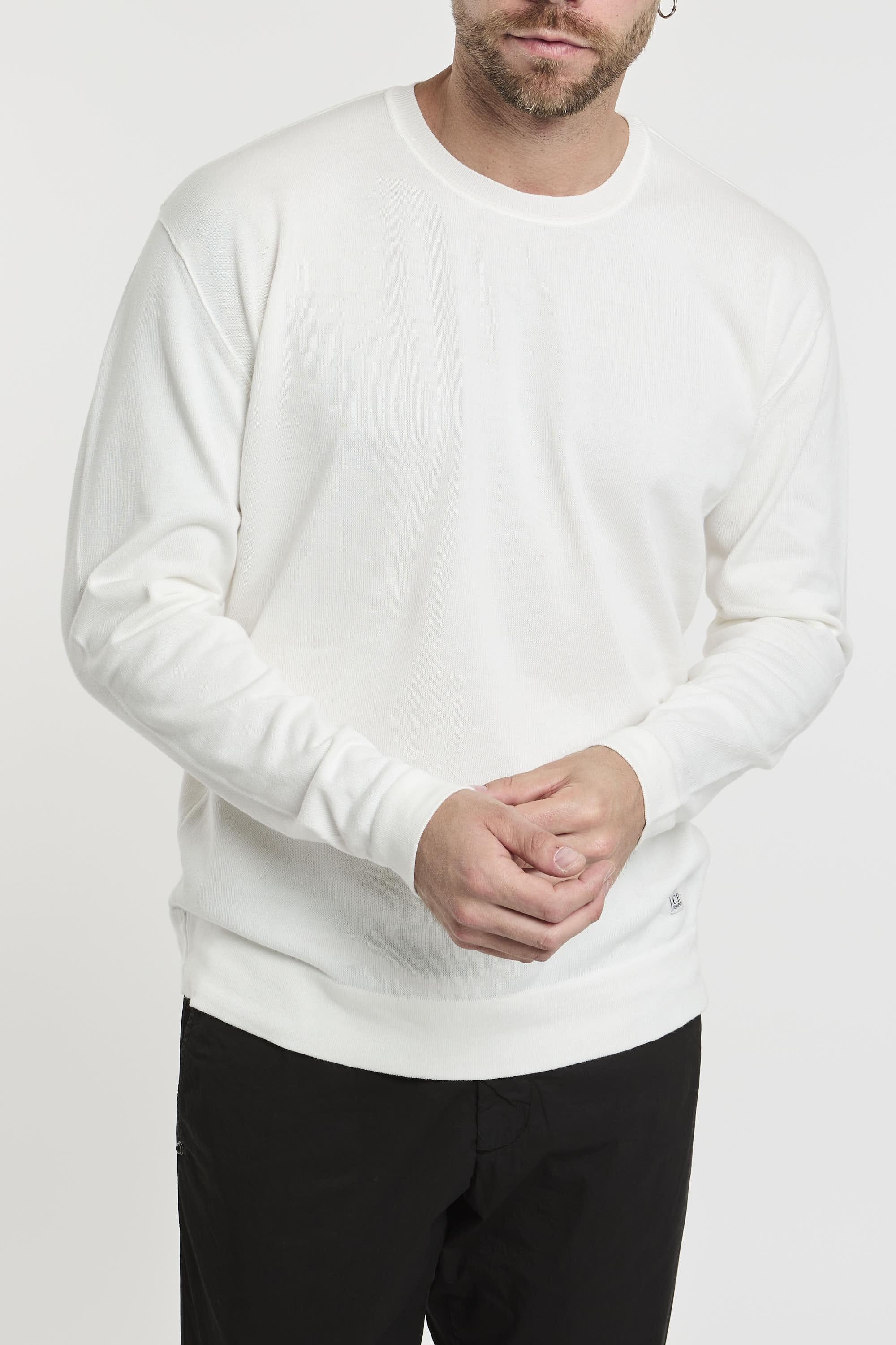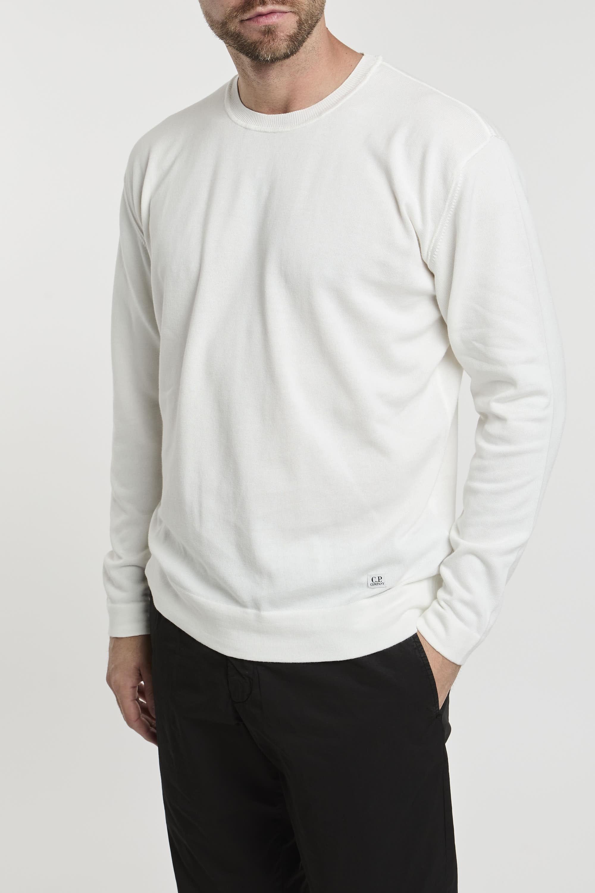 Maglia girocollo con finiture a costine, cuciture tono su tono e logo C.P. Company cucito sul fondo. Il modello è alto 187 cm e indossa la taglia 50.
