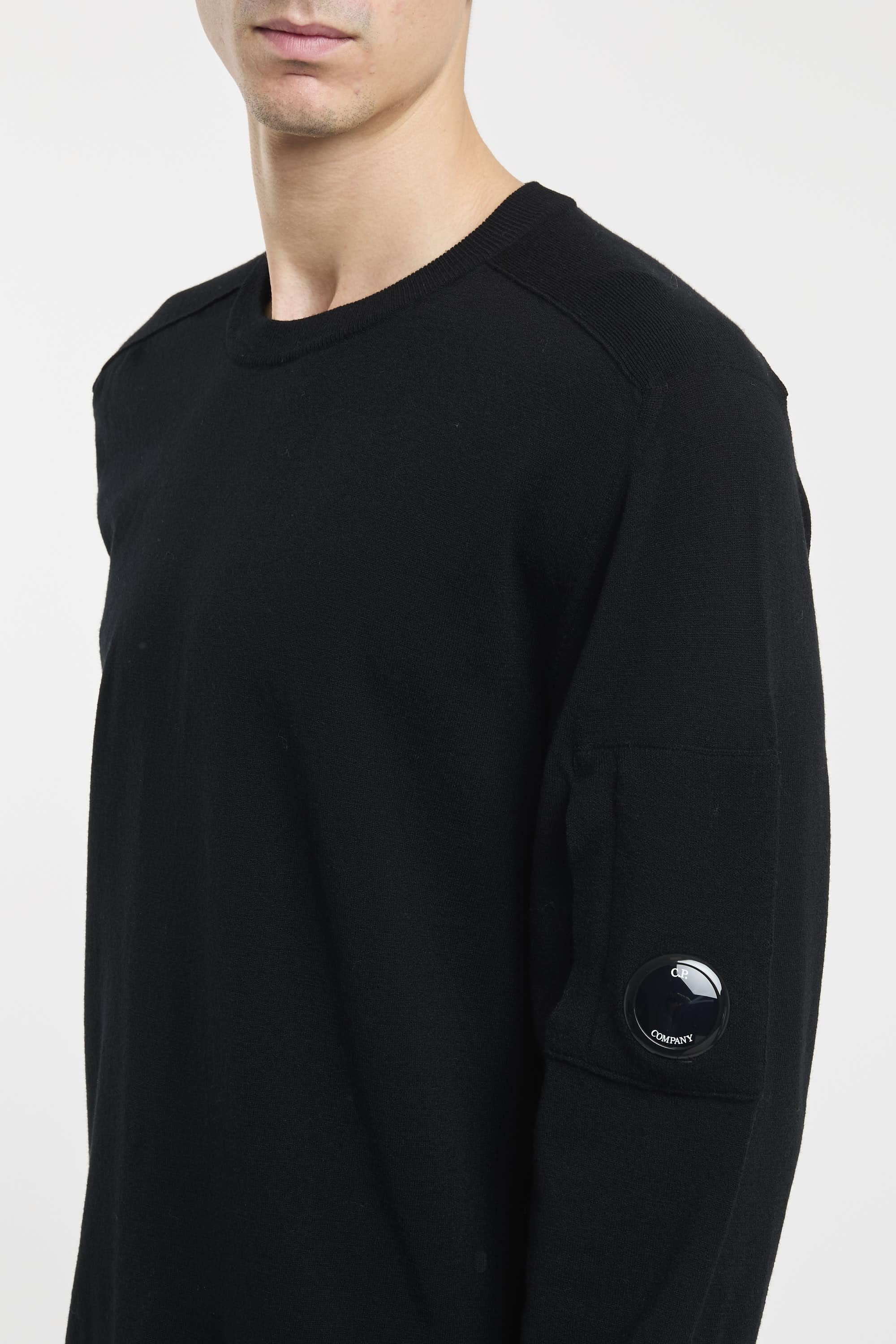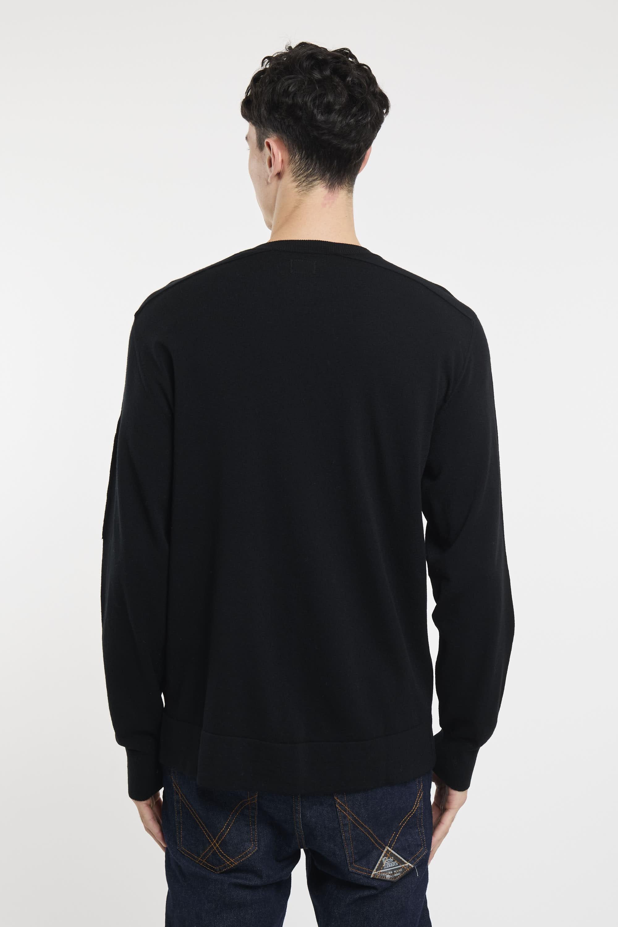 Maglione girocollo realizzato in lana merino extra fine. Fondo, collo e polsini a costine, e taschino con Lente su manica. Finezza 12. Regular fit. Il modello è alto 187cm e indossa la taglia 50.
