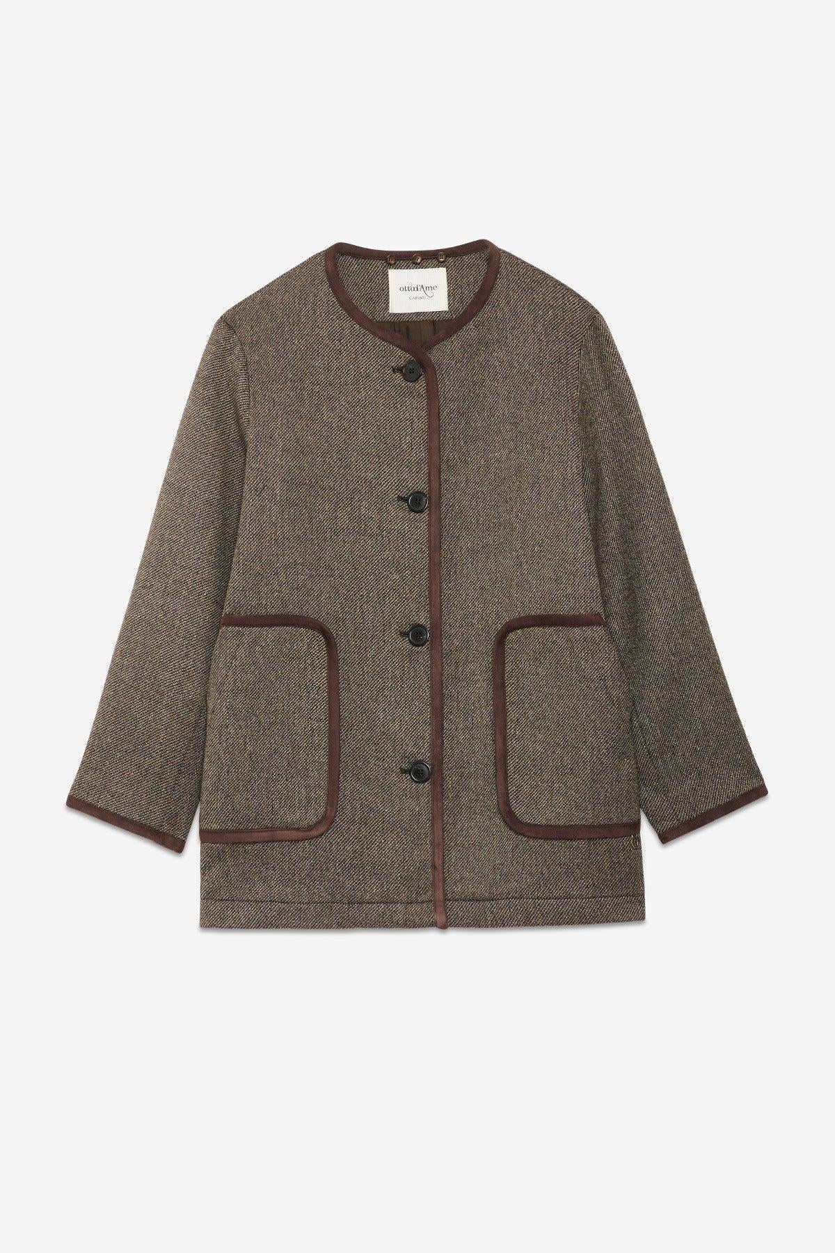 Cappotto in misto cotone e lana con profili a contrasto e collo staccabile. La modella è alta 178 cm e indossa la taglia 40.