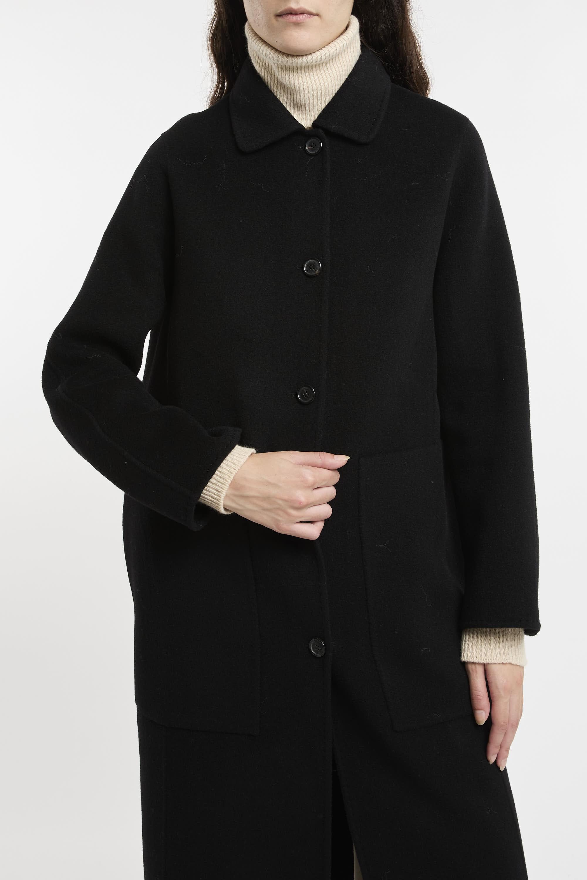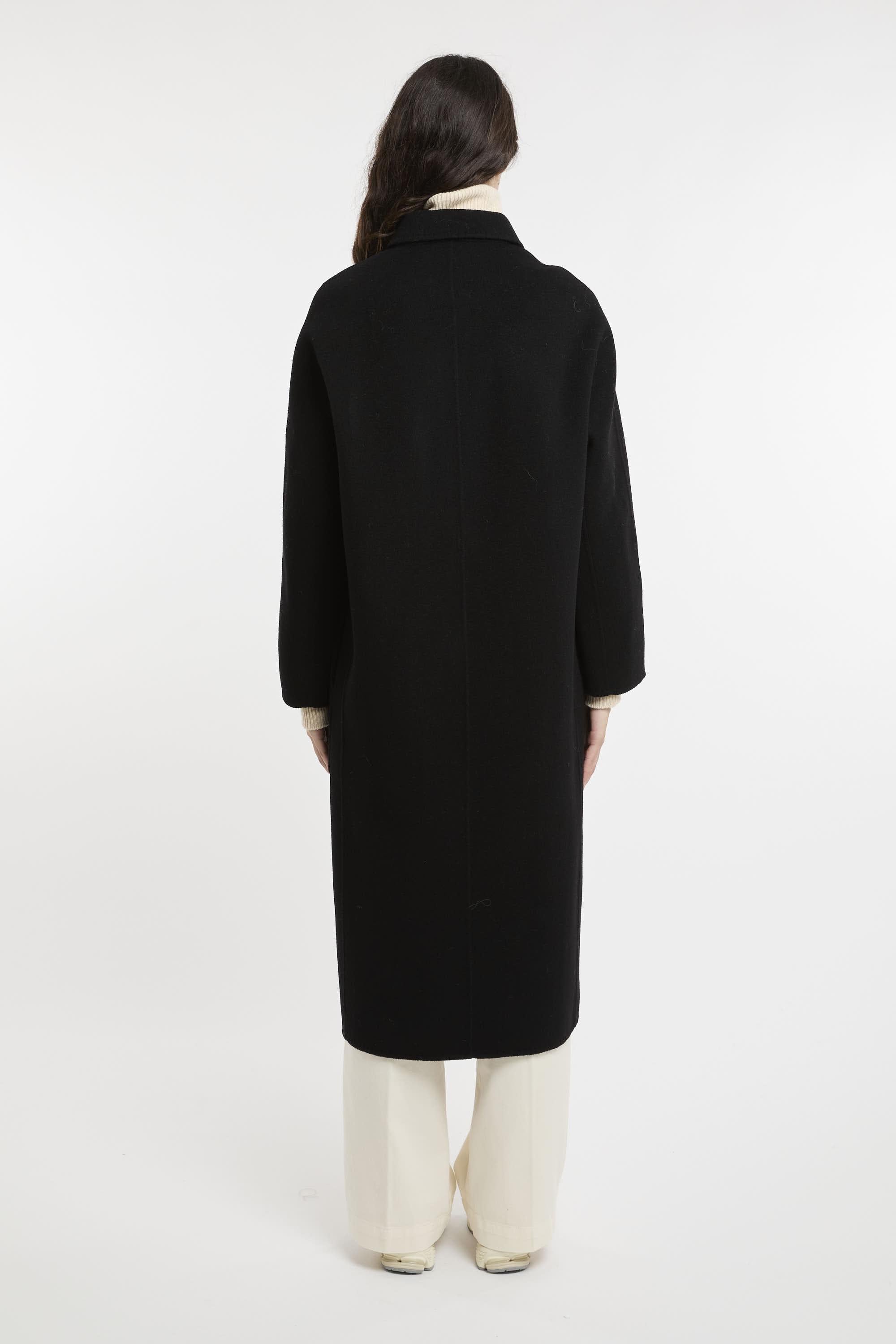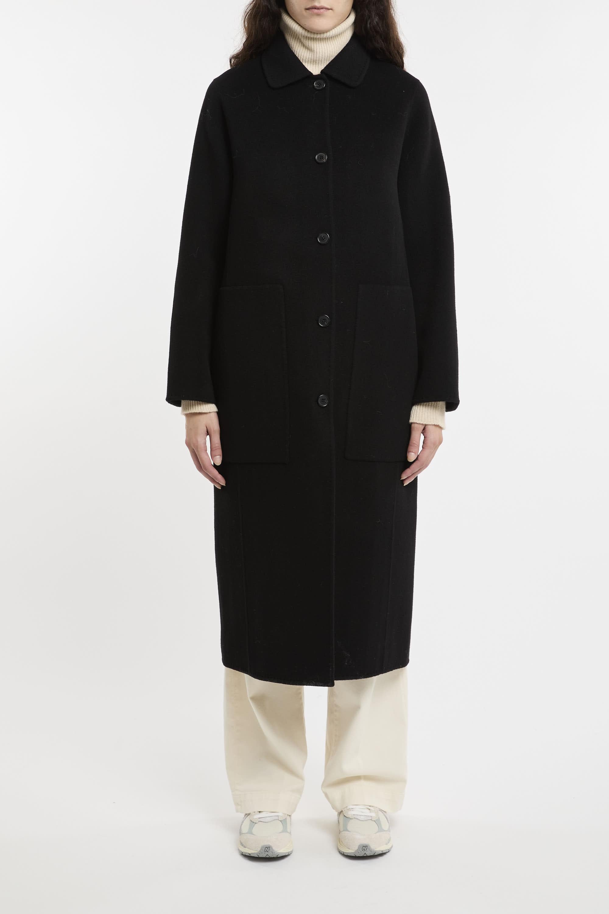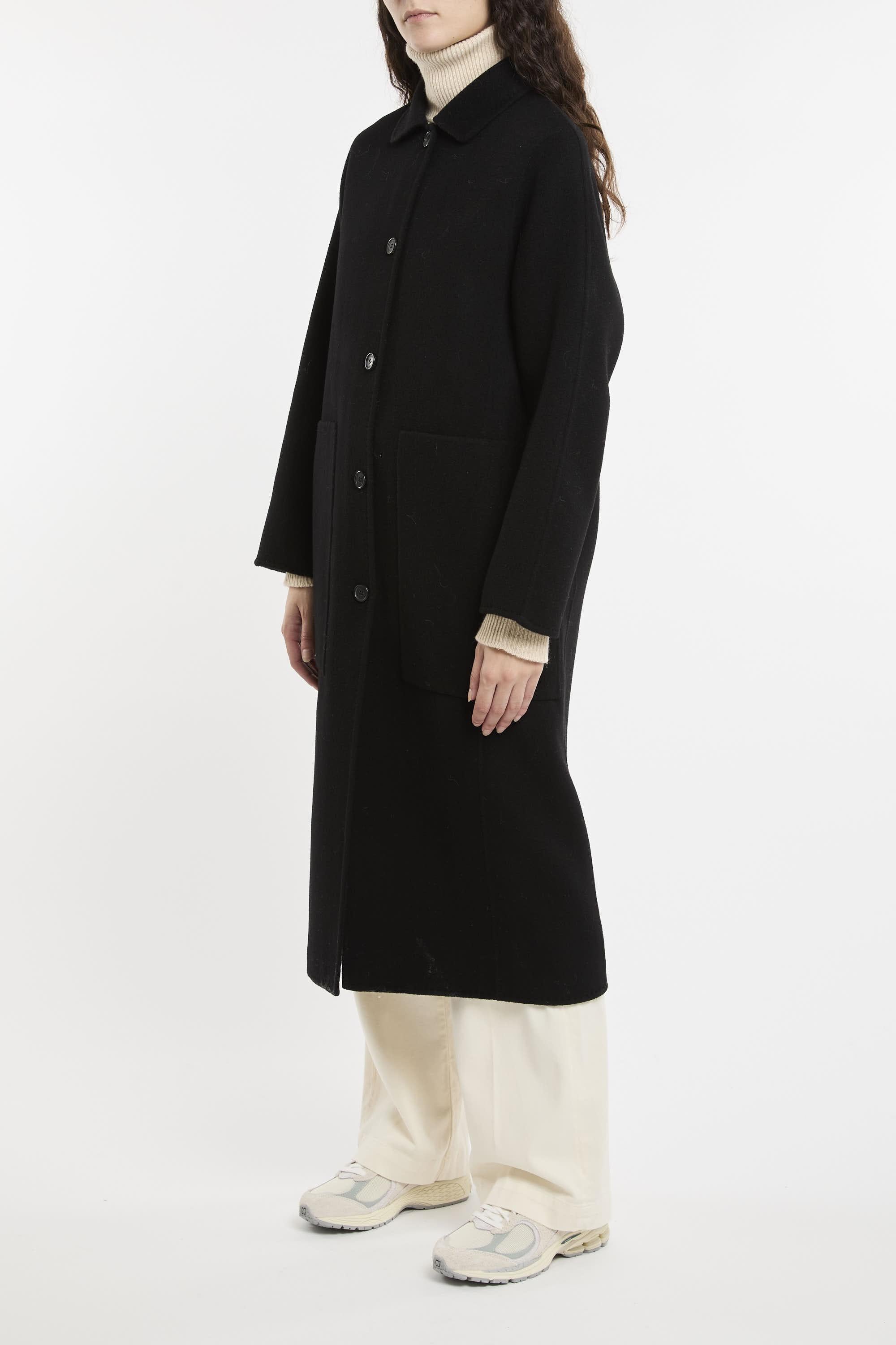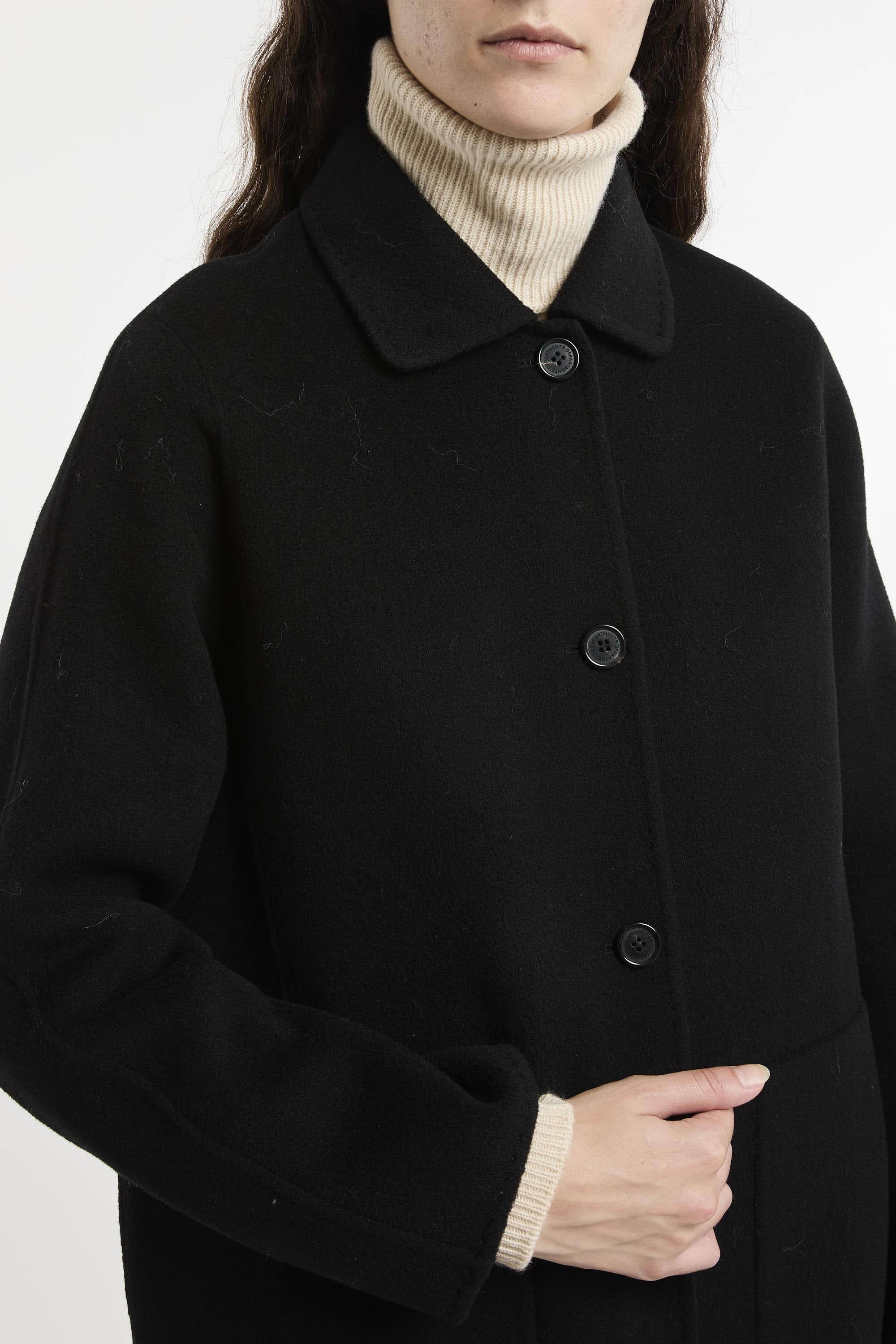 Cappotto monopetto realizzato in panno di lana, senza fodera, taglio dritto, colletto classico, chiusura con bottoni, maniche lunghe, due tasche sul davanti, lunghezza sotto il ginocchio, orlo dritto, design destrutturato. Fit comodo. La modella è alta 178 cm e indossa la taglia XS.