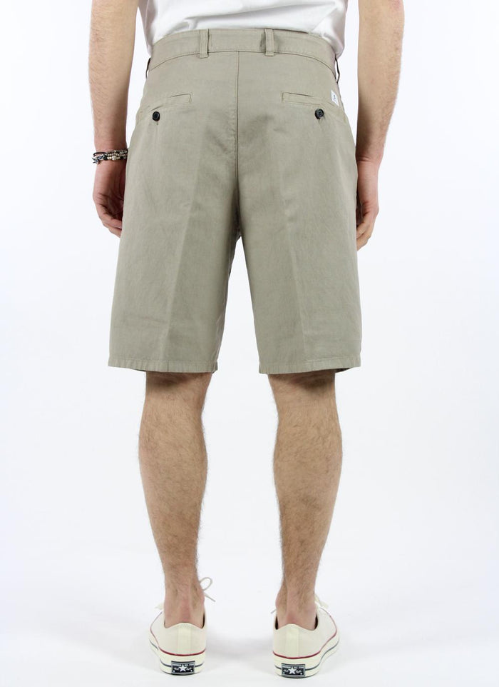 Bermuda in misto cotone e lino con tasche all'americana laterali e tasche posteriori a filetto con bottone. Chiusura frontale con zip e bottone.