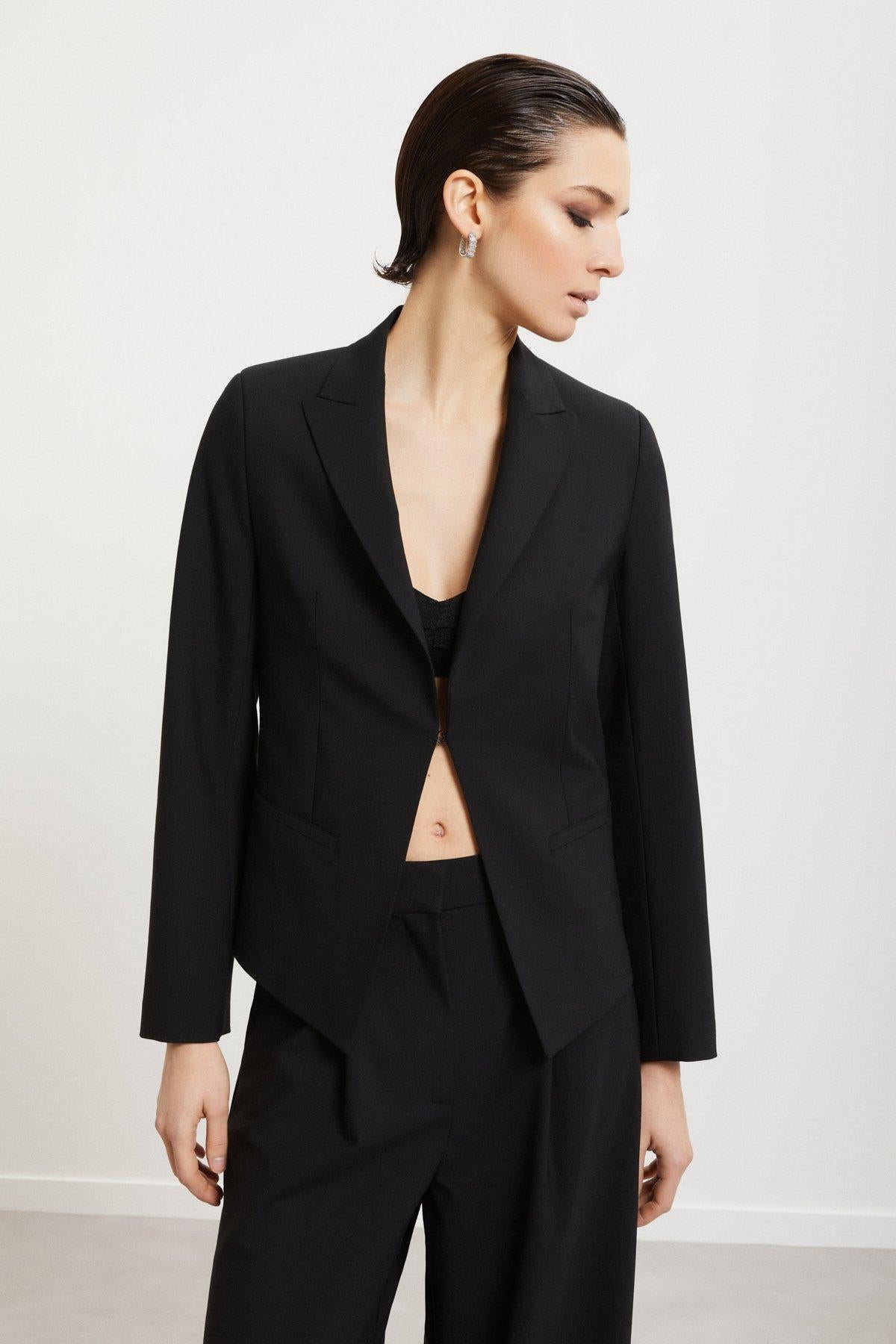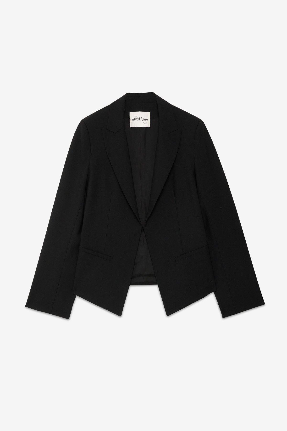 Giacca cropped in misto lana. La modella è alta 178 cm e indossa la taglia 40.