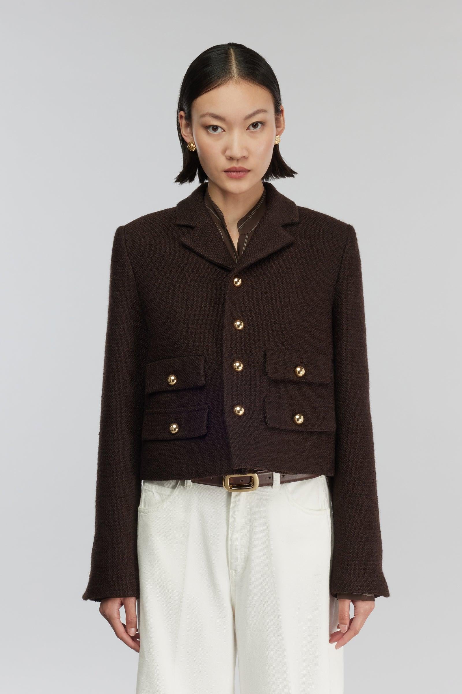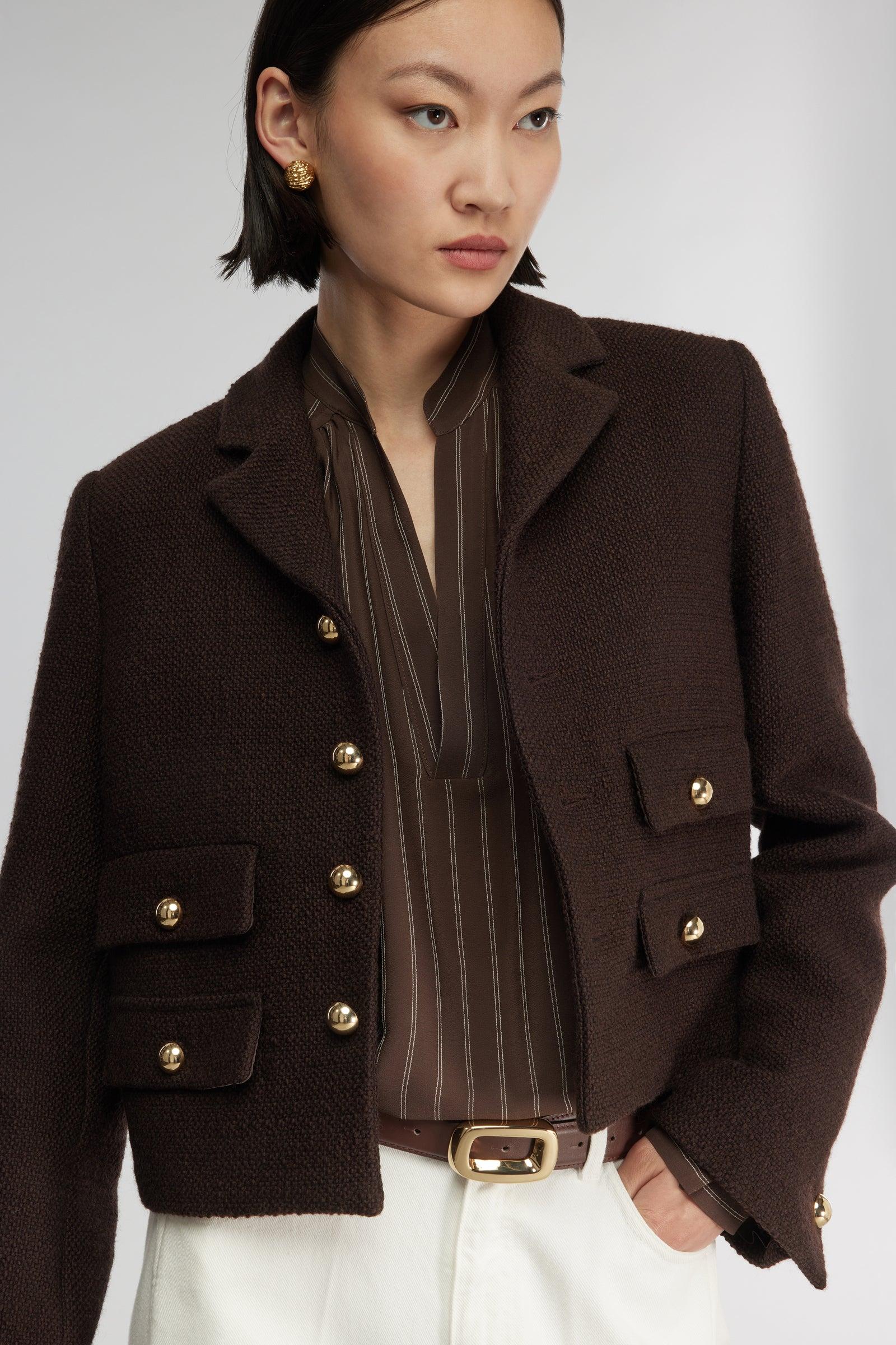 Giacca in misto lana con rever. Abbottonatura sul davanti. Quattro tasche con patta. Vestibilità regular e lunghezza vita. La modella è alta 178 cm e indossa la taglia S.