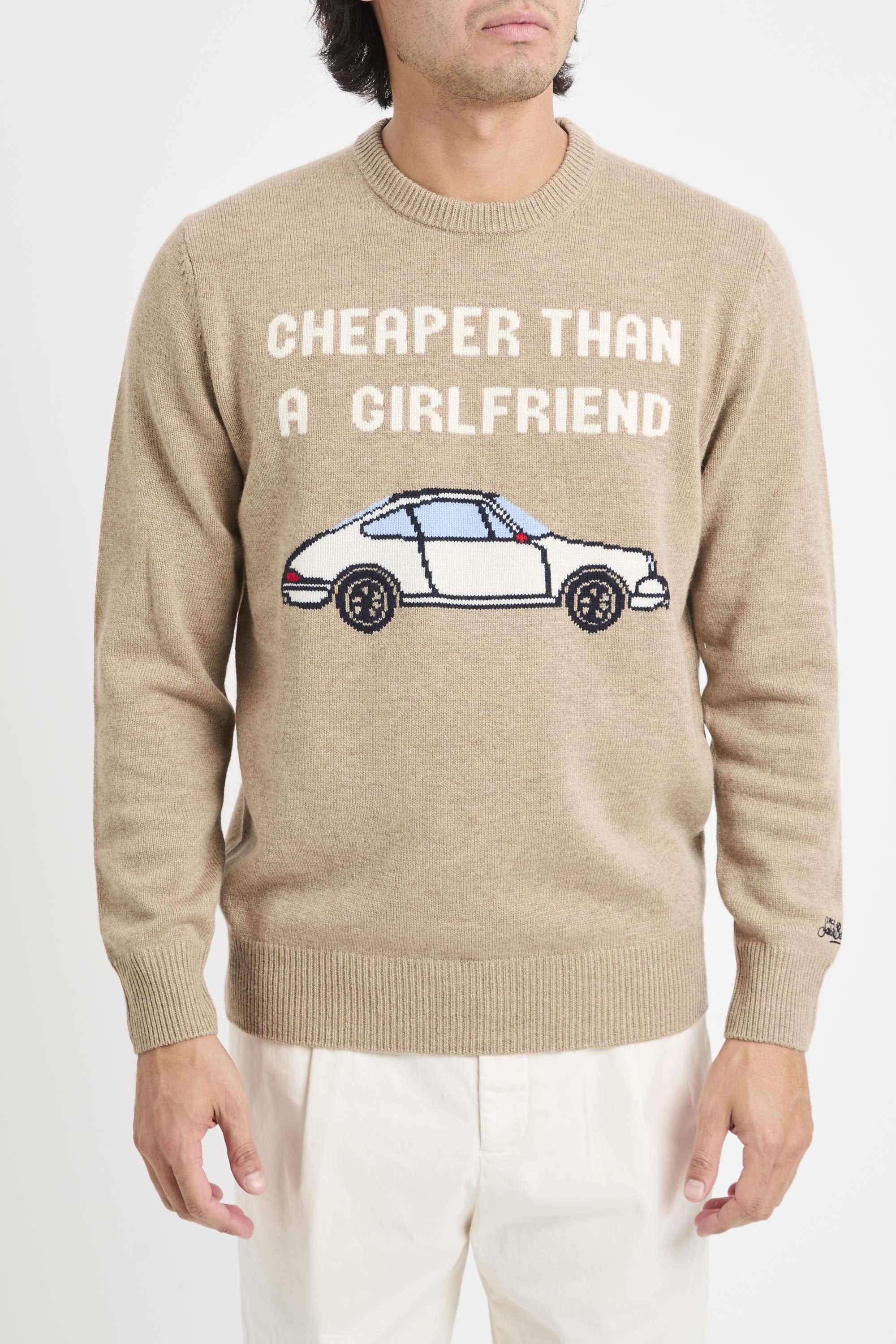 Maglia Heron girocollo con collo, polsi e fondo a coste. Stampa jacquard sul davanti. Ricamo St. Barth sul polsino. Vestibilità regolare. Il modello è alto 187cm e indossa la taglia L.