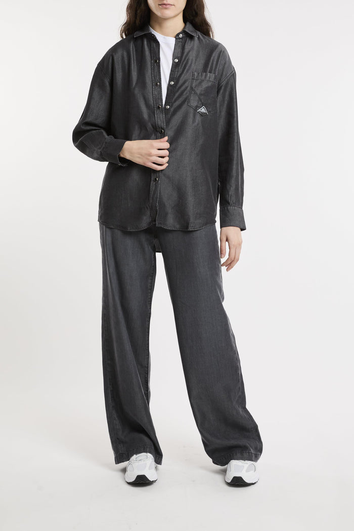 Jeans in denim leggero tinta unita. Vita media con passanti e salpa applicata sul retro. Chiusura sul fronte con bottone logato e zip. Due tasche sul fronte e due tasche sul retro con label Roy Roger's applicato. Flare fit. La modella è alta 178 cm e indossa la taglia 26. Materiale: 100% Lyocell