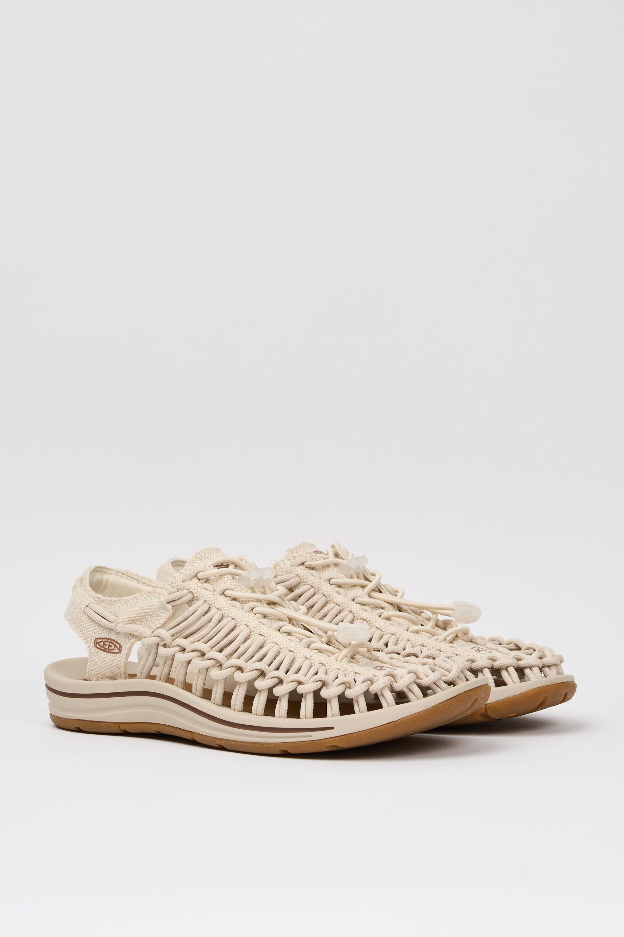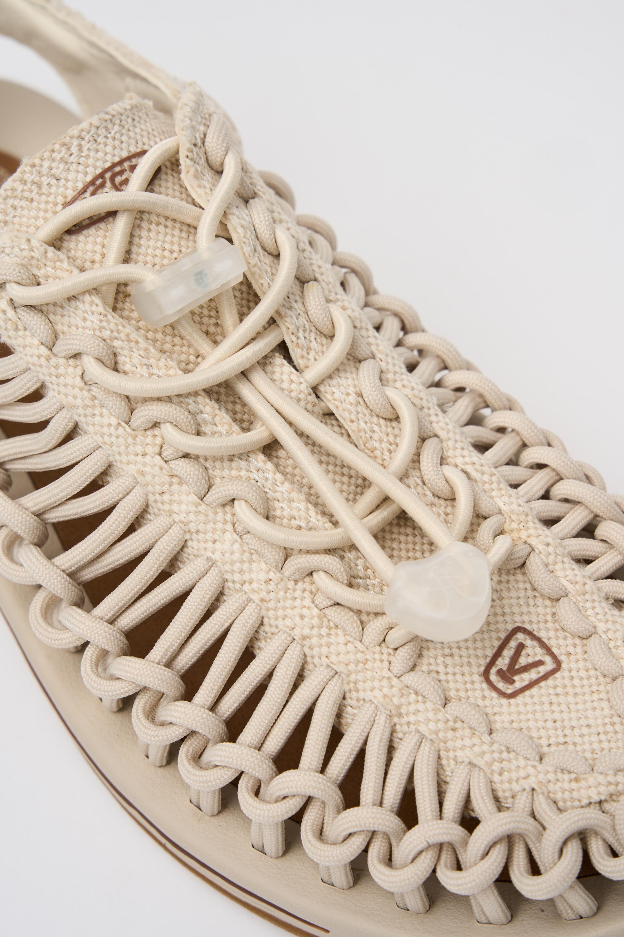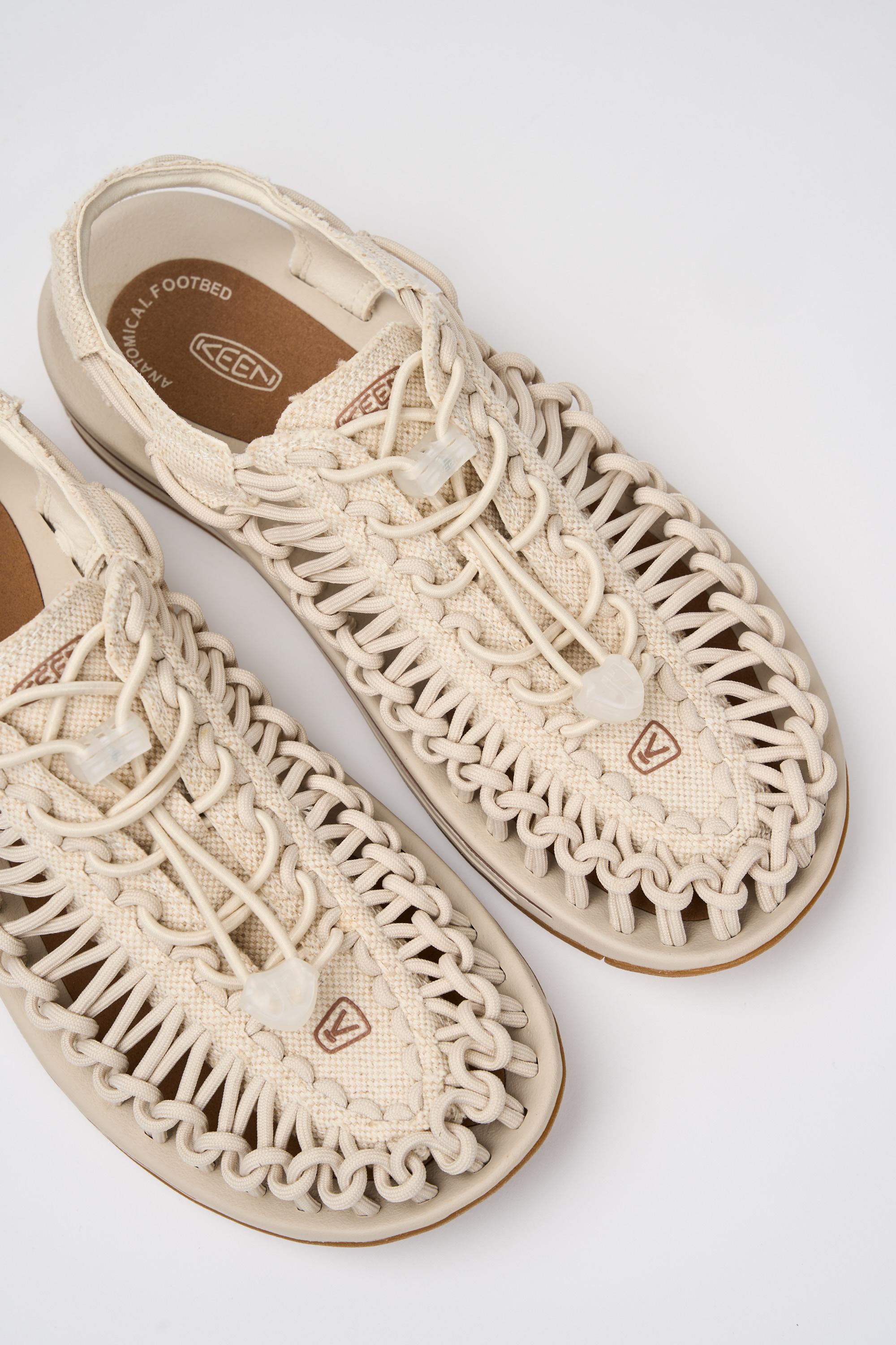 Sandalo modello Uneek di Keen caratterizzato da una tomaia intrecciata a doppia corda, con sistema di allacciatura 'Bungee' e tecnologia Cleansport NXT per il controllo naturale degli odori.
