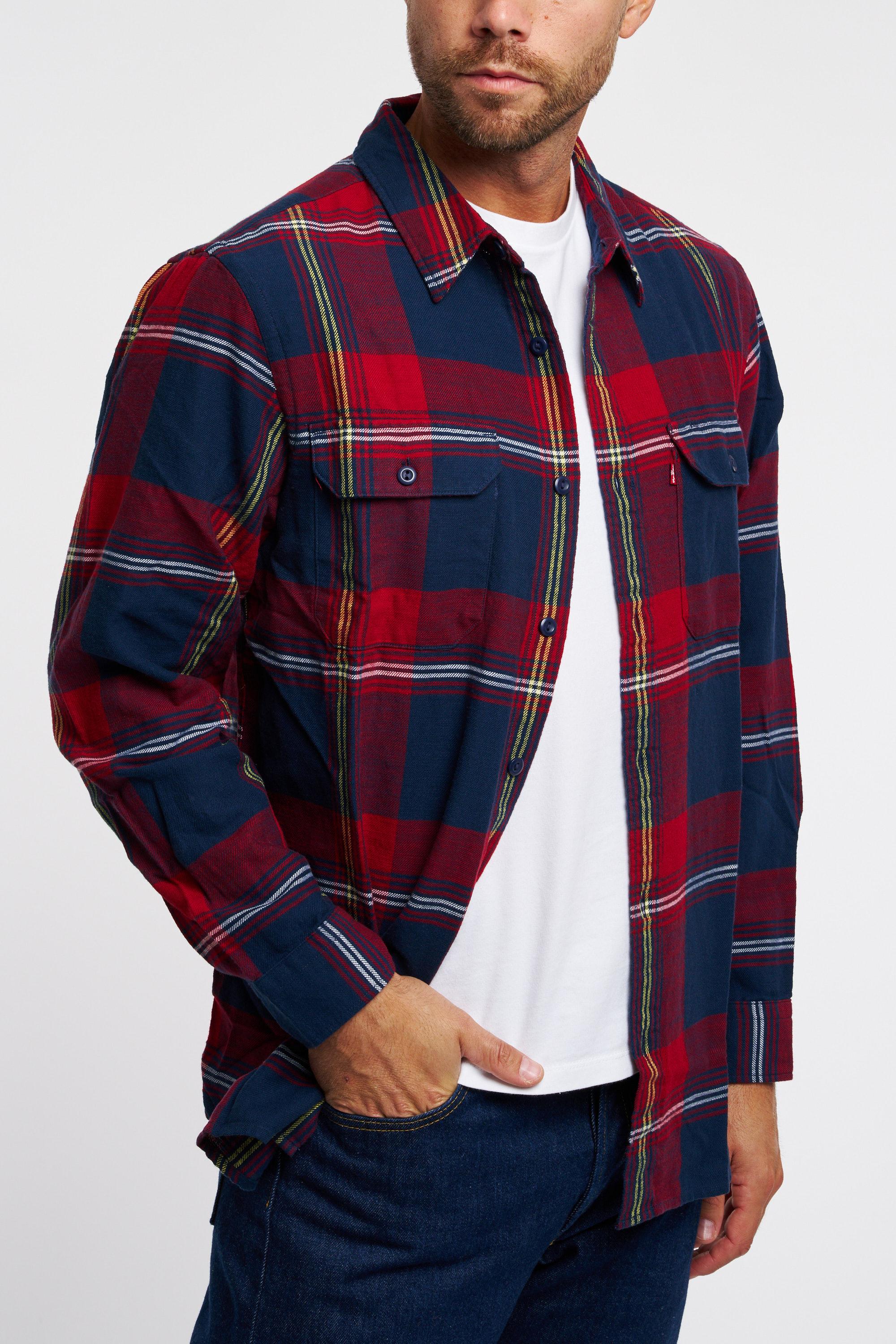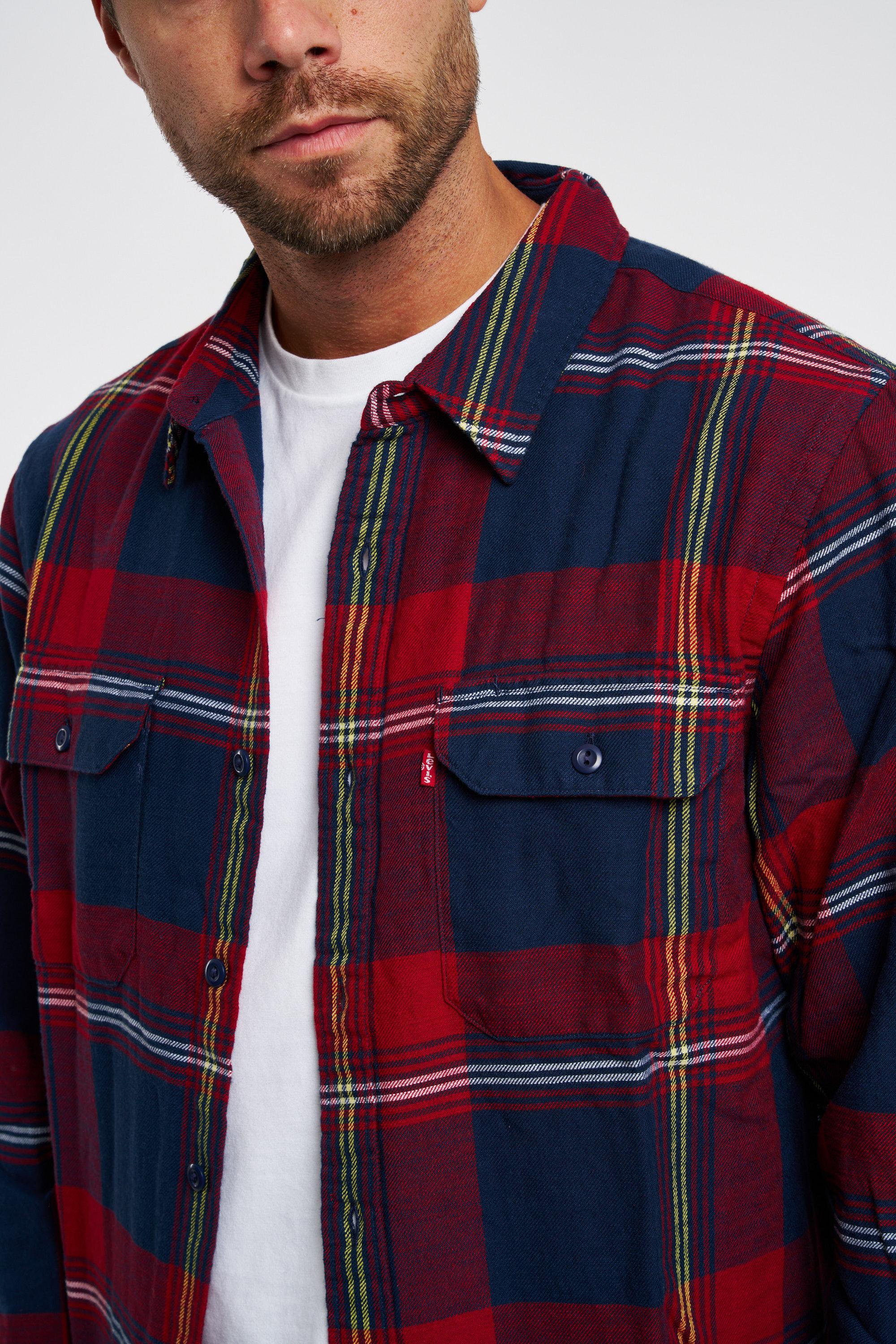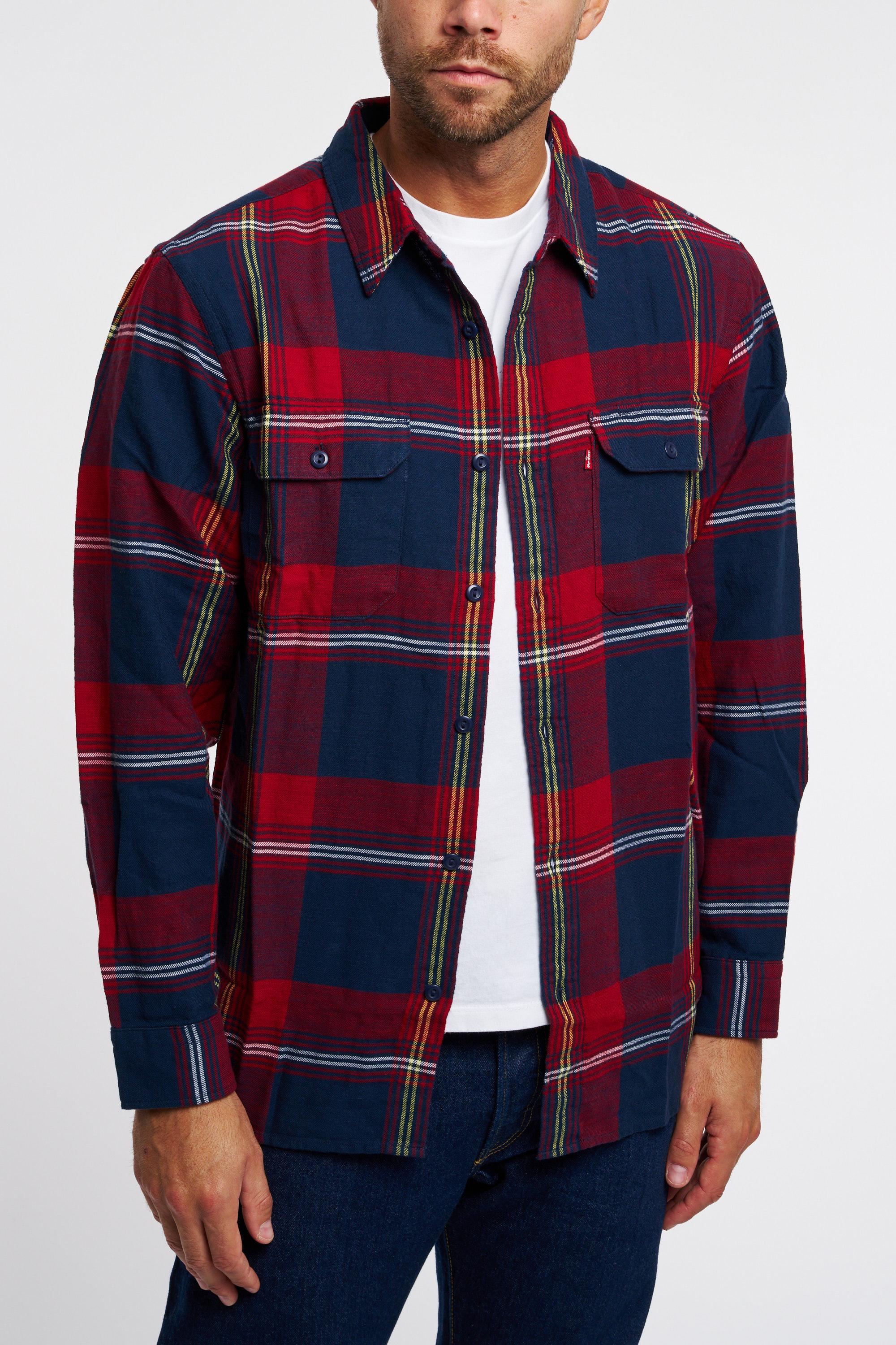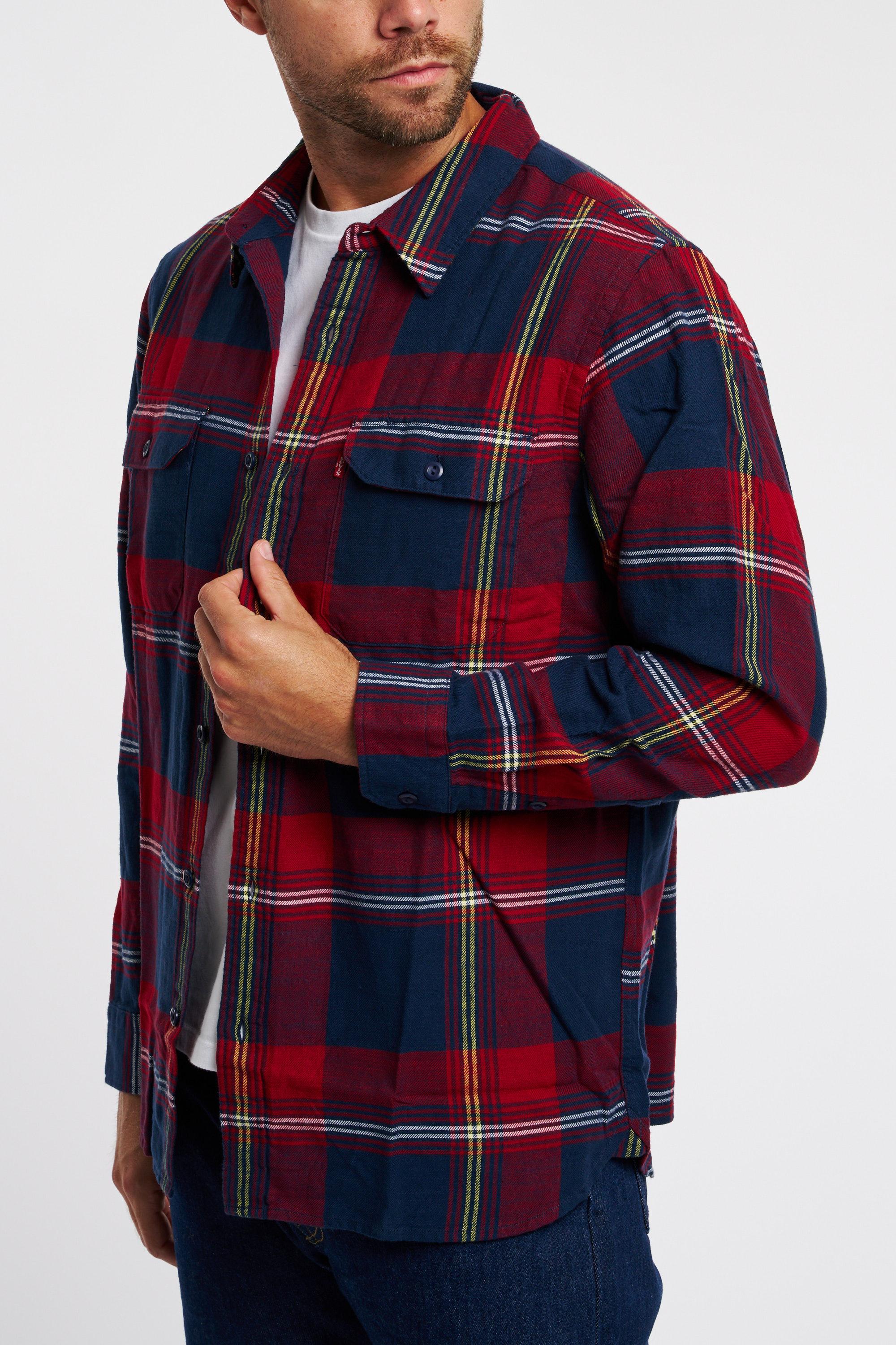 Camicia Jackson Worker ispirata all'abbigliamento da lavoro. Colletto button-down e due tasche frontali con bottone. Vestibilità over. Il modello è alto 187cm e indossa la taglia M.