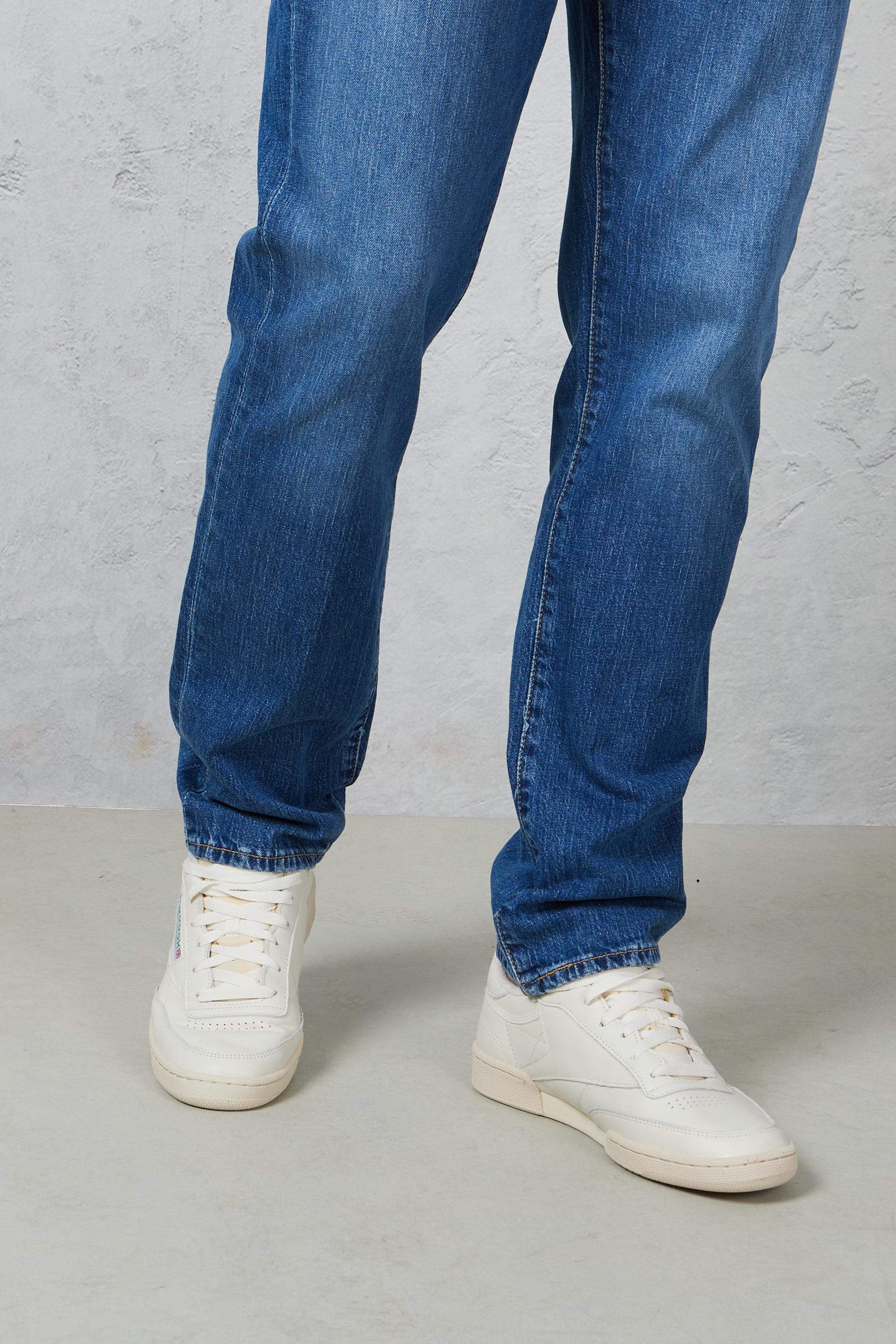 Jeans "511" slim in denim, gamba aderente e vita regolare. Cinque tasche, chiusura frontale con bottone e zip con patch logo sul retro. Il modello è alto 187cm e indossa la taglia 33.
