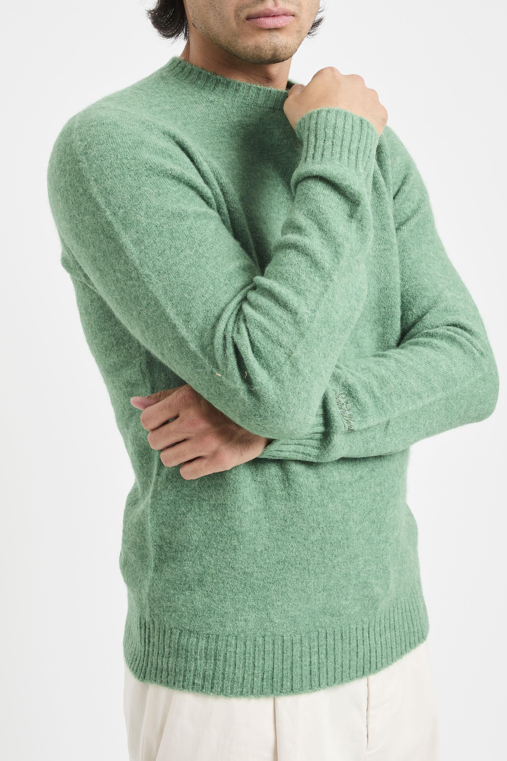 Maglia Regent girocollo in alpaca elasticizzata. Collo, polsi e fondo a coste. Ricamo logo St. Barth sul polso. Vestibilità regolare. Il modello è alto 187cm e indossa la taglia L.
