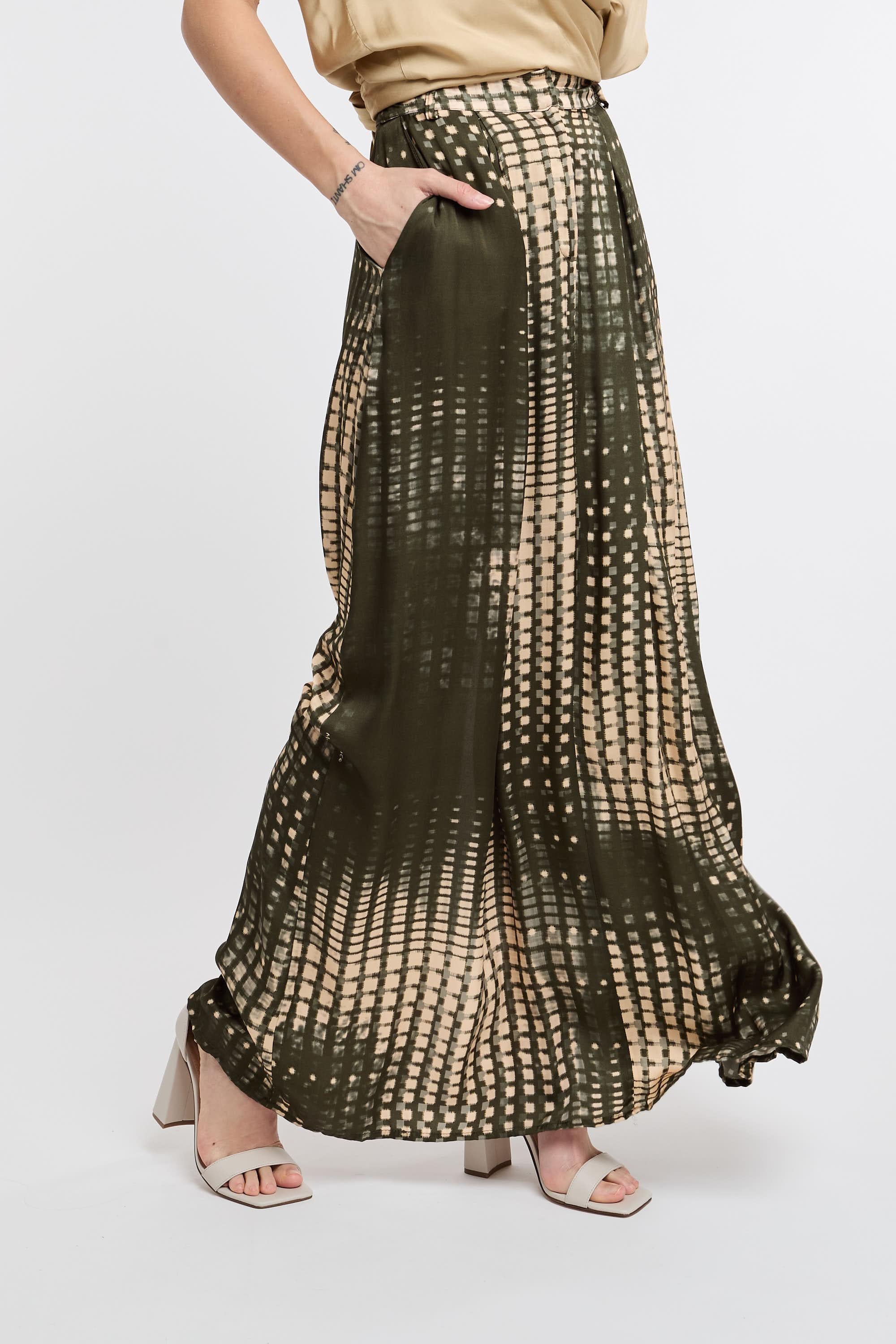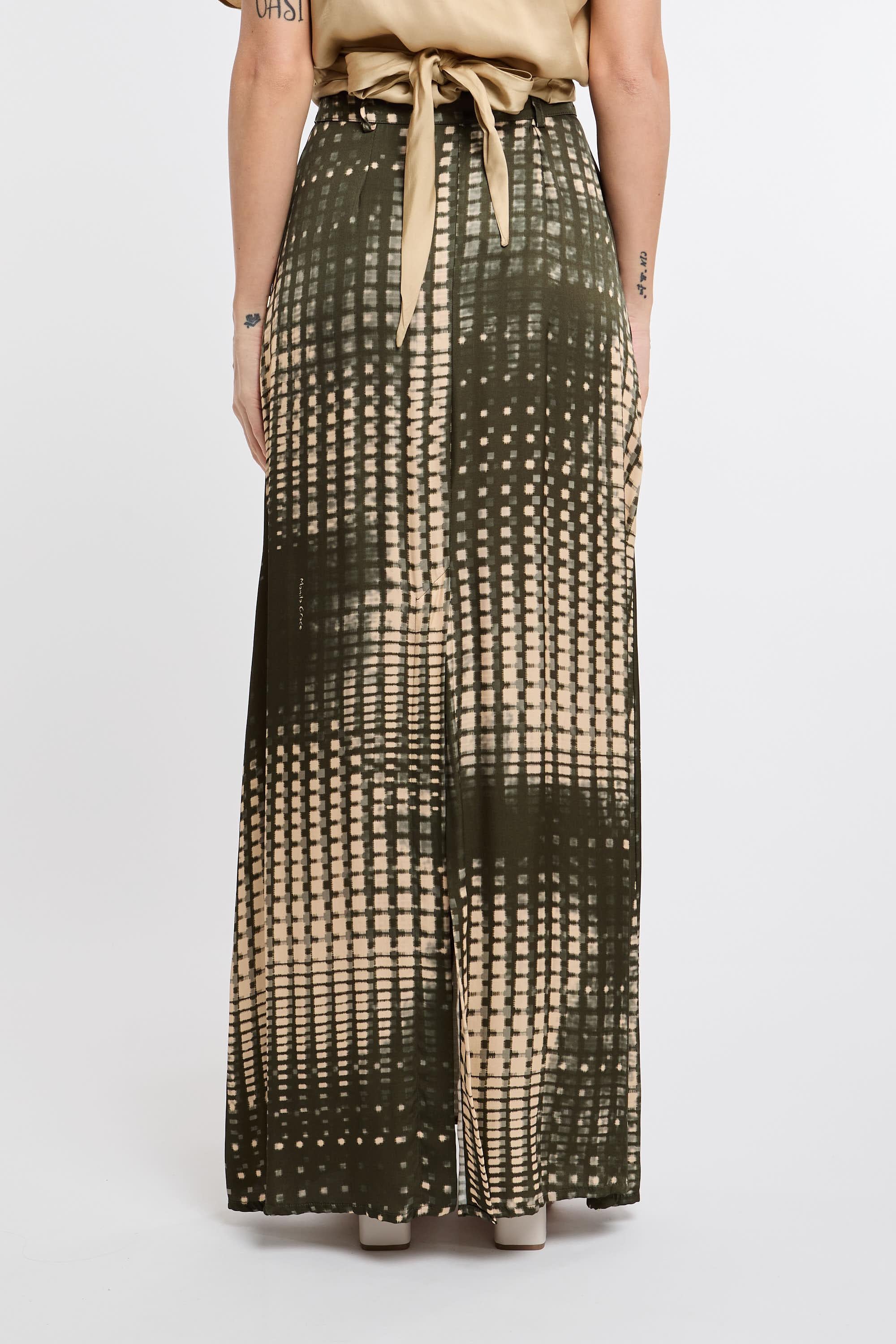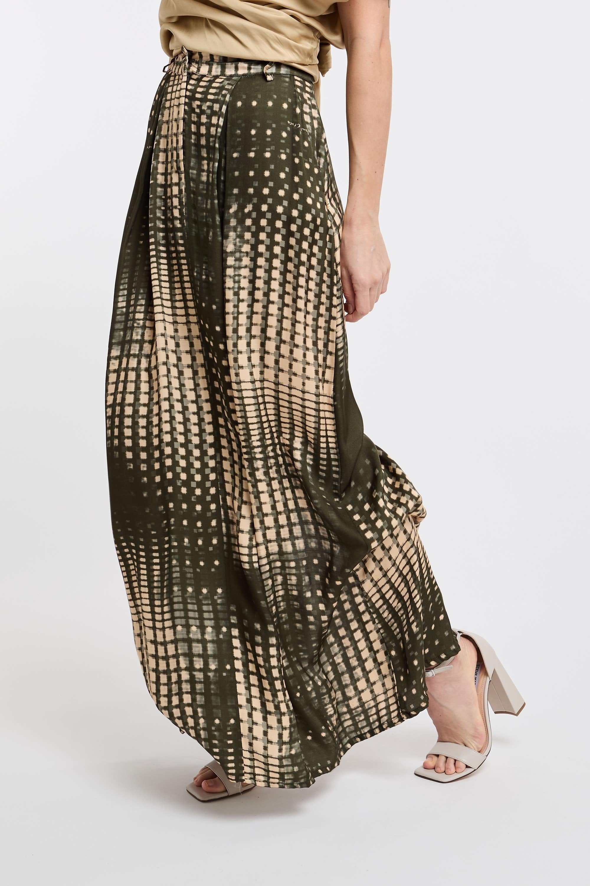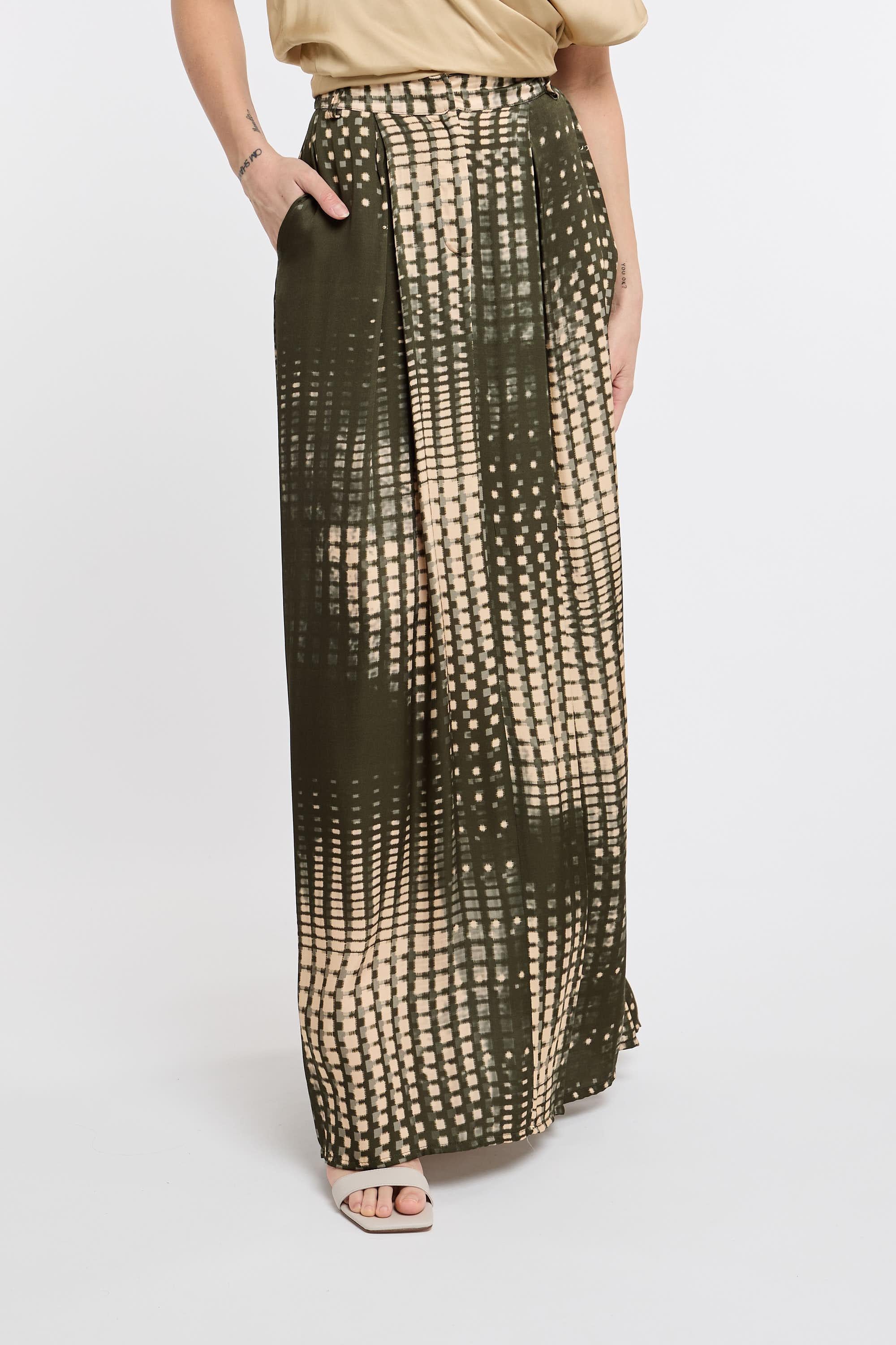 Gonna lunga in stampa astratta. Spacco sul retro e chiusura frontale con bottone e zip. La modella è alta 178 cm e indossa la taglia 40.