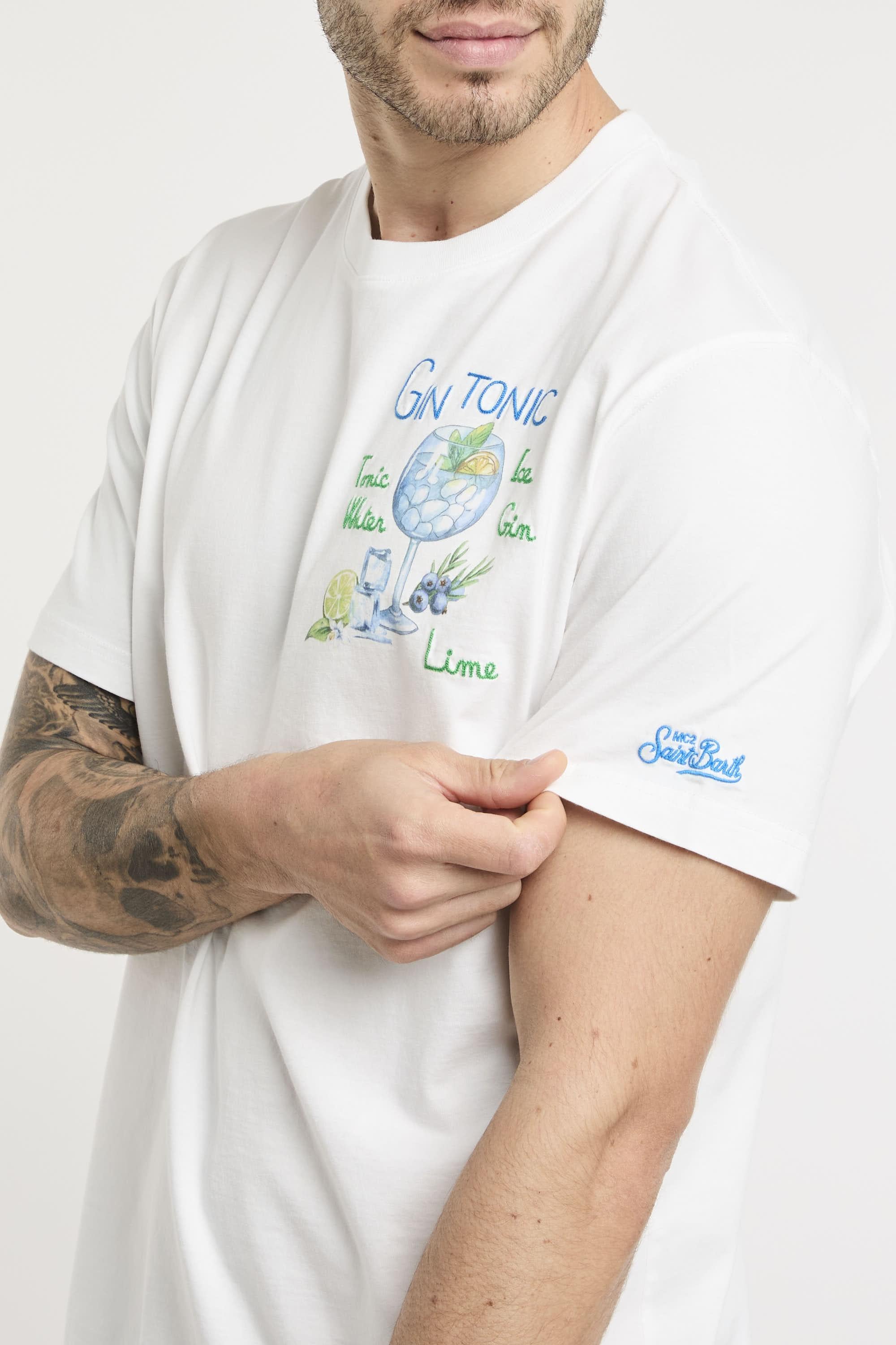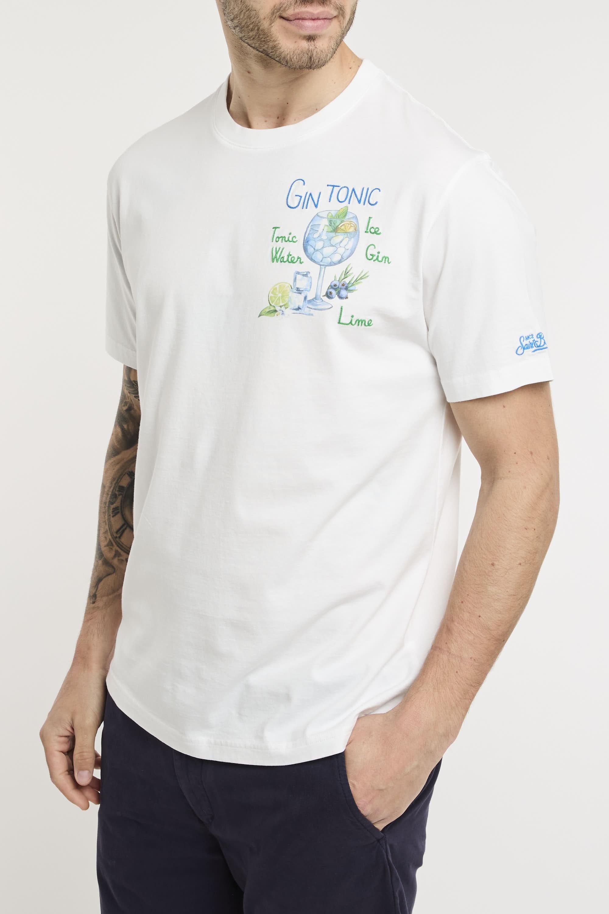 T-shirt girocollo mezza manica, realizzata in tessuto jersey di cotone al 100% con finitura tinta in capo, pesa 180 grammi per una sensazione di leggerezza. Vestibilità regolare per un uso confortevole. Stampa e ricamo sul petto, insieme al ricamo MC2 Saint Barth sul fondo della manica sinistra. Il modello è alto 187cm e indossa la taglia L.