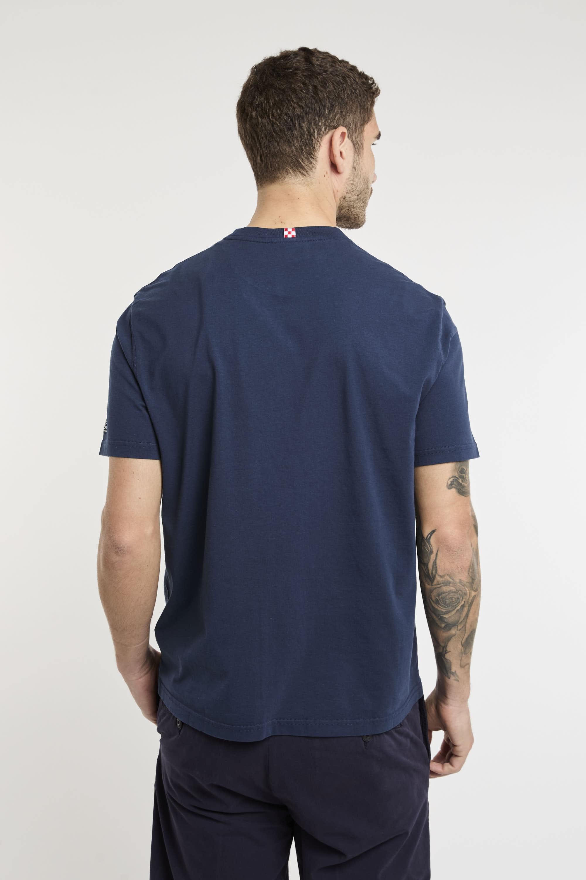 T-shirt girocollo mezza manica, realizzata in tessuto jersey di cotone al 100% con finitura tinta in capo, pesa 180 grammi per una sensazione di leggerezza. Vestibilità regolare per un uso confortevole. Stampa e ricamo sul petto, insieme al ricamo MC2 Saint Barth sul fondo della manica sinistra. Il modello è alto 187cm e indossa la taglia L.