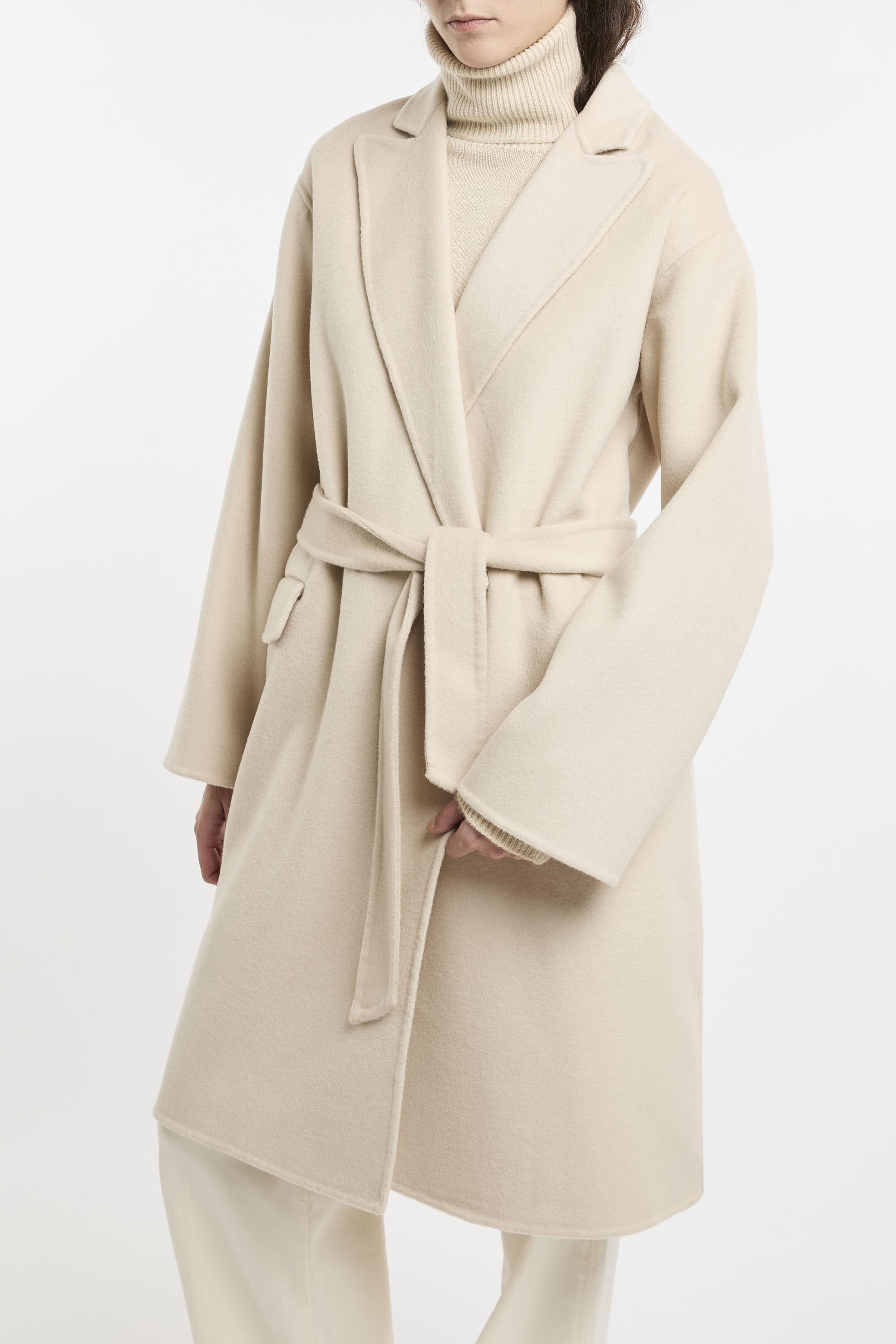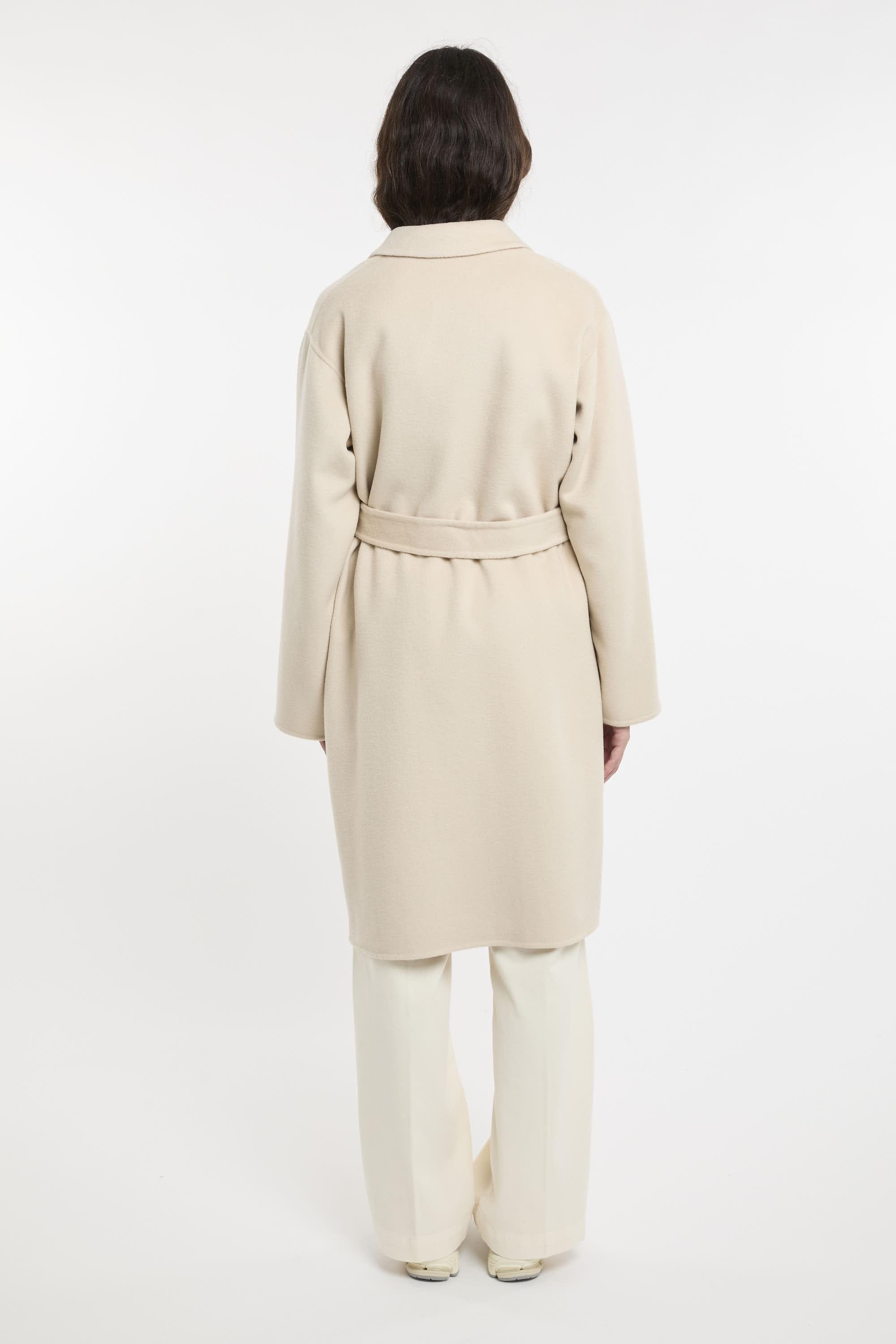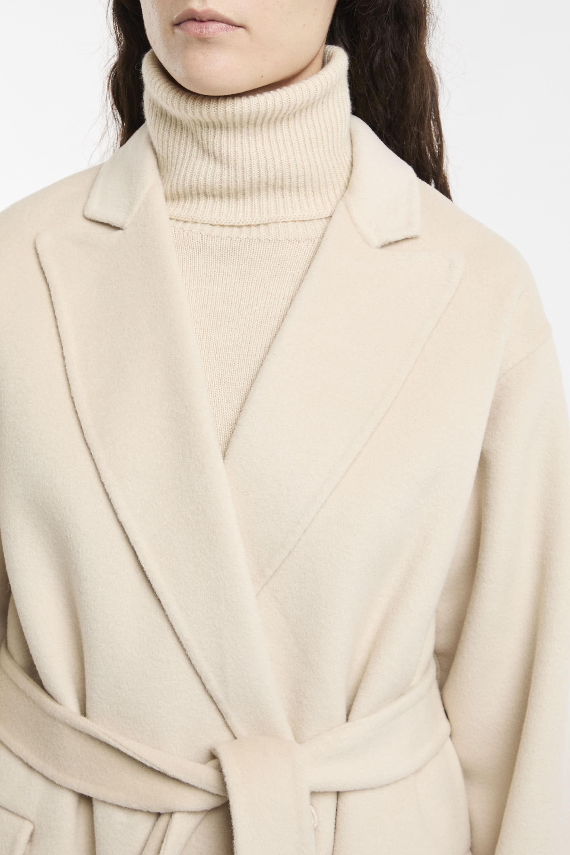 Cappotto midi in misto lana con cintura. La modella è alta 178 cm e indossa la taglia 40.