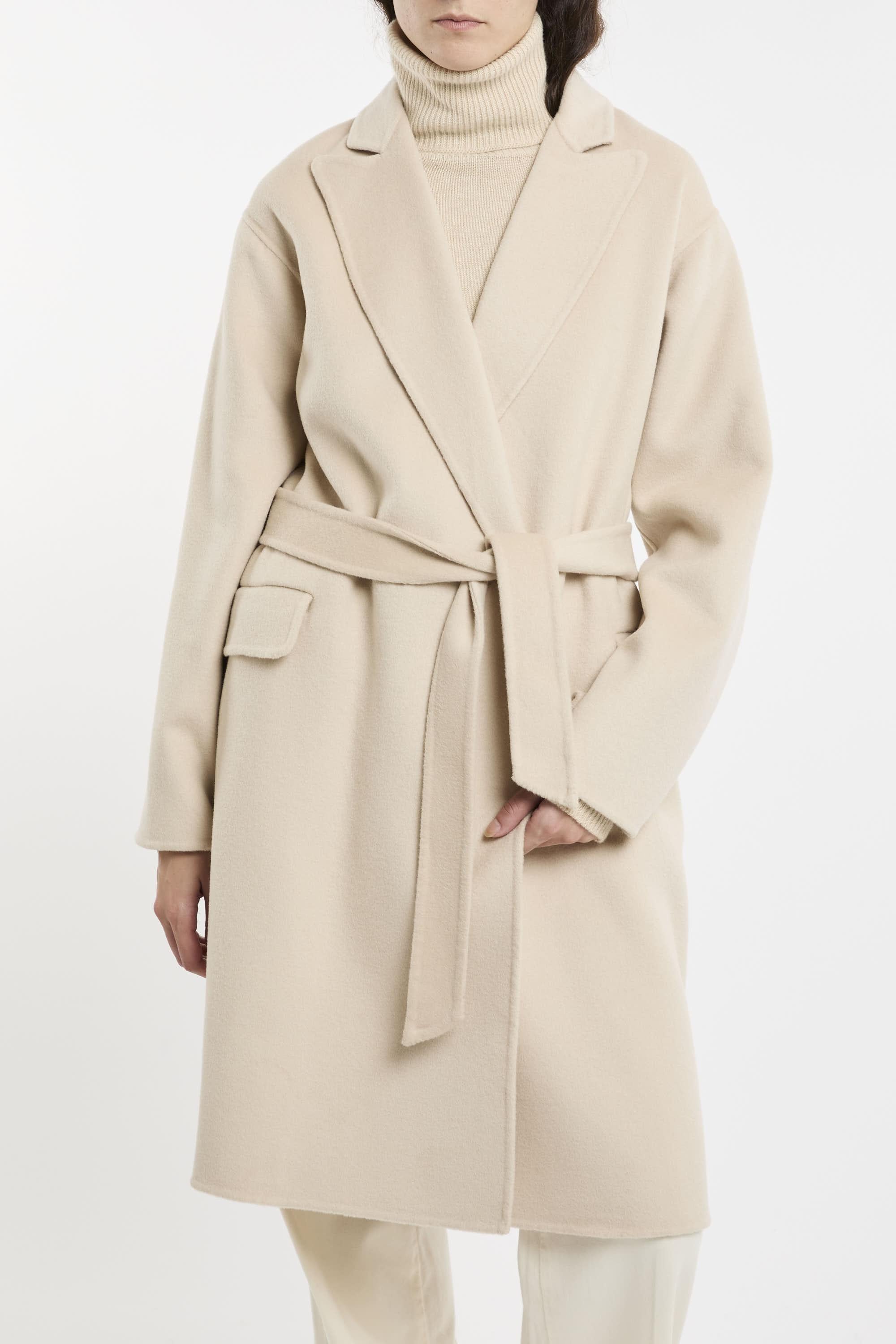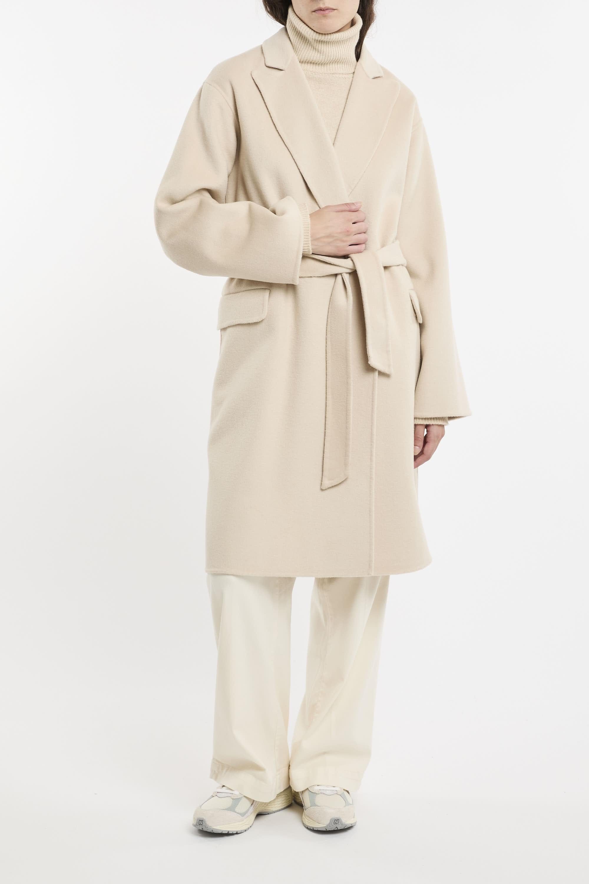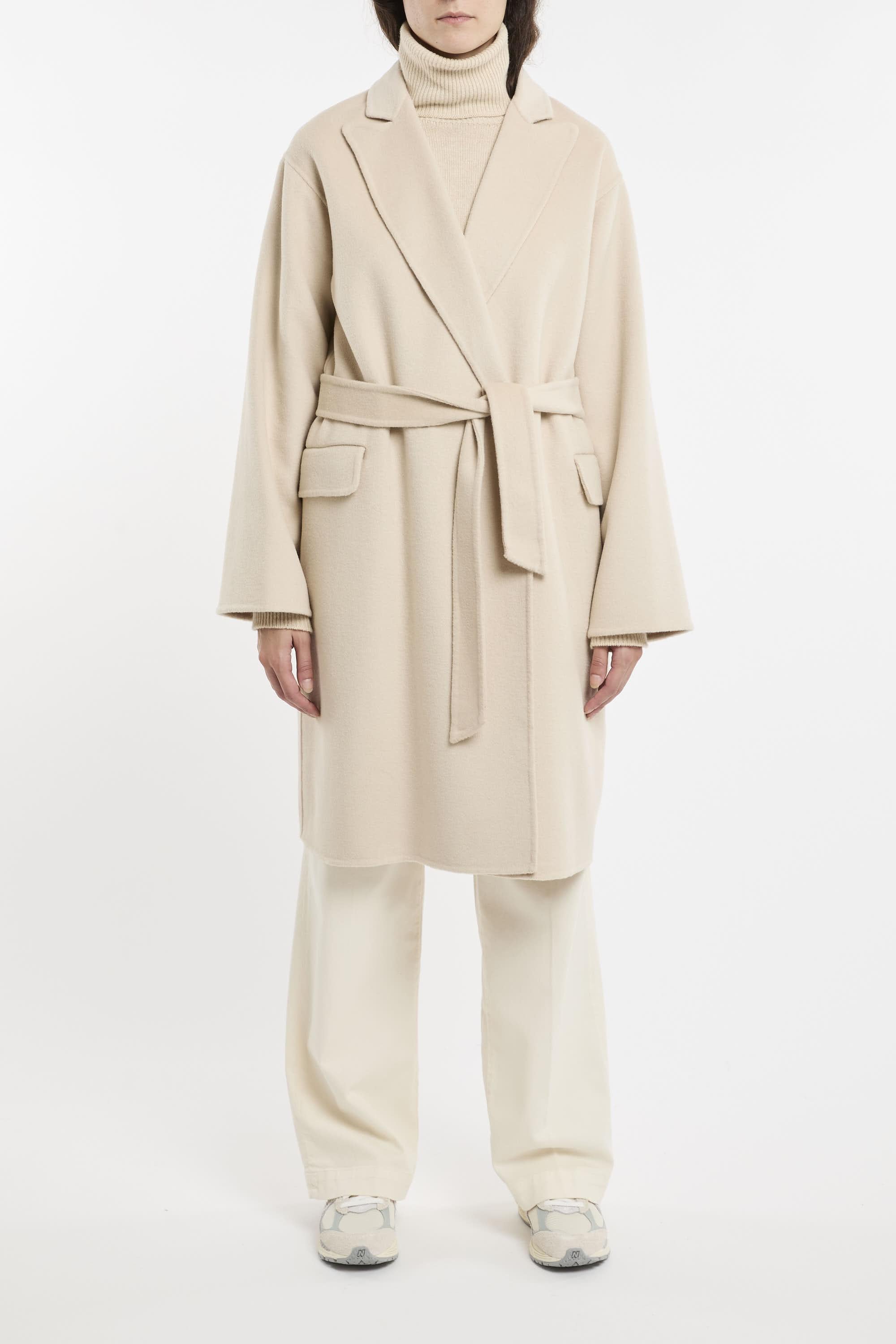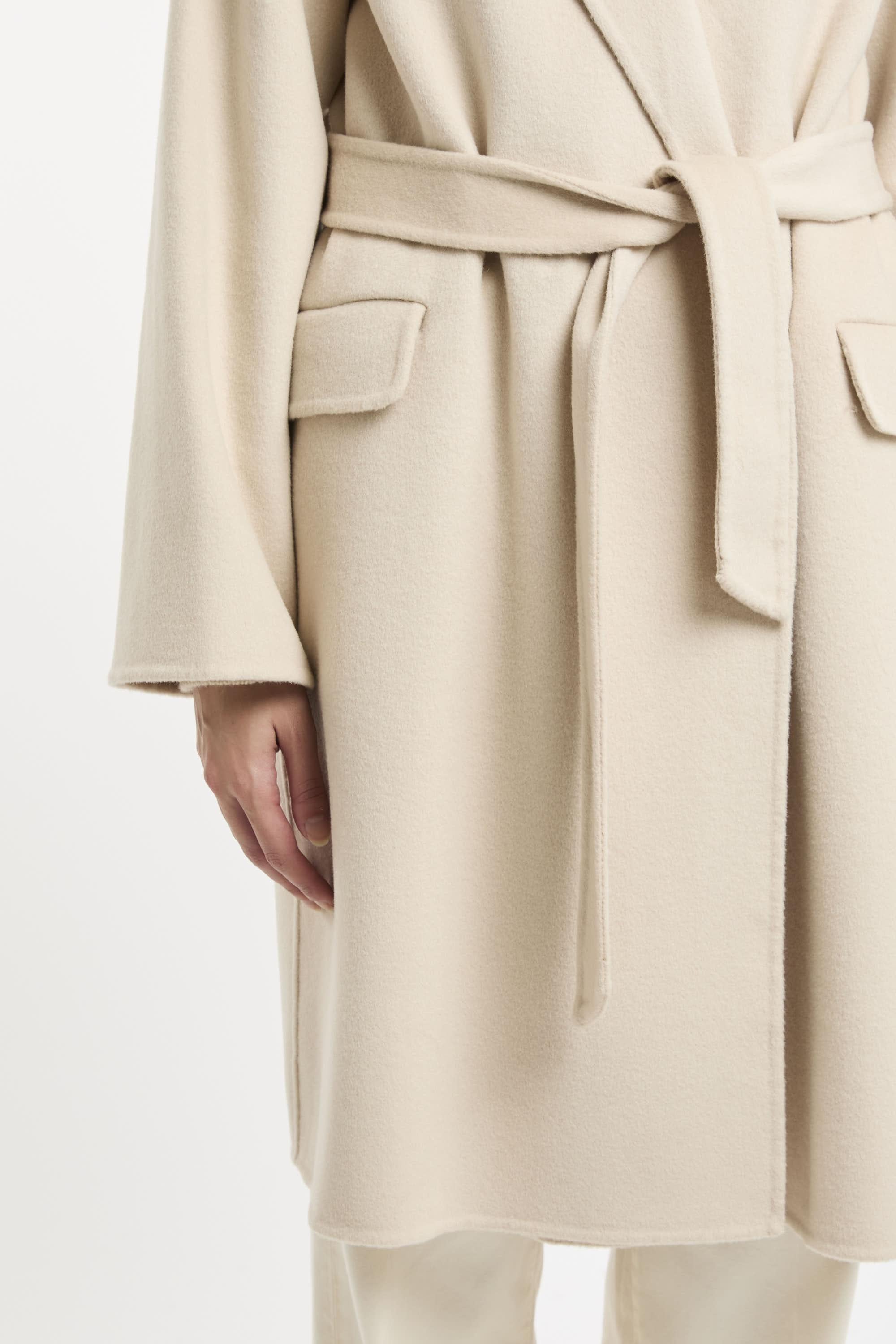 Cappotto midi in misto lana con cintura. La modella è alta 178 cm e indossa la taglia 40.