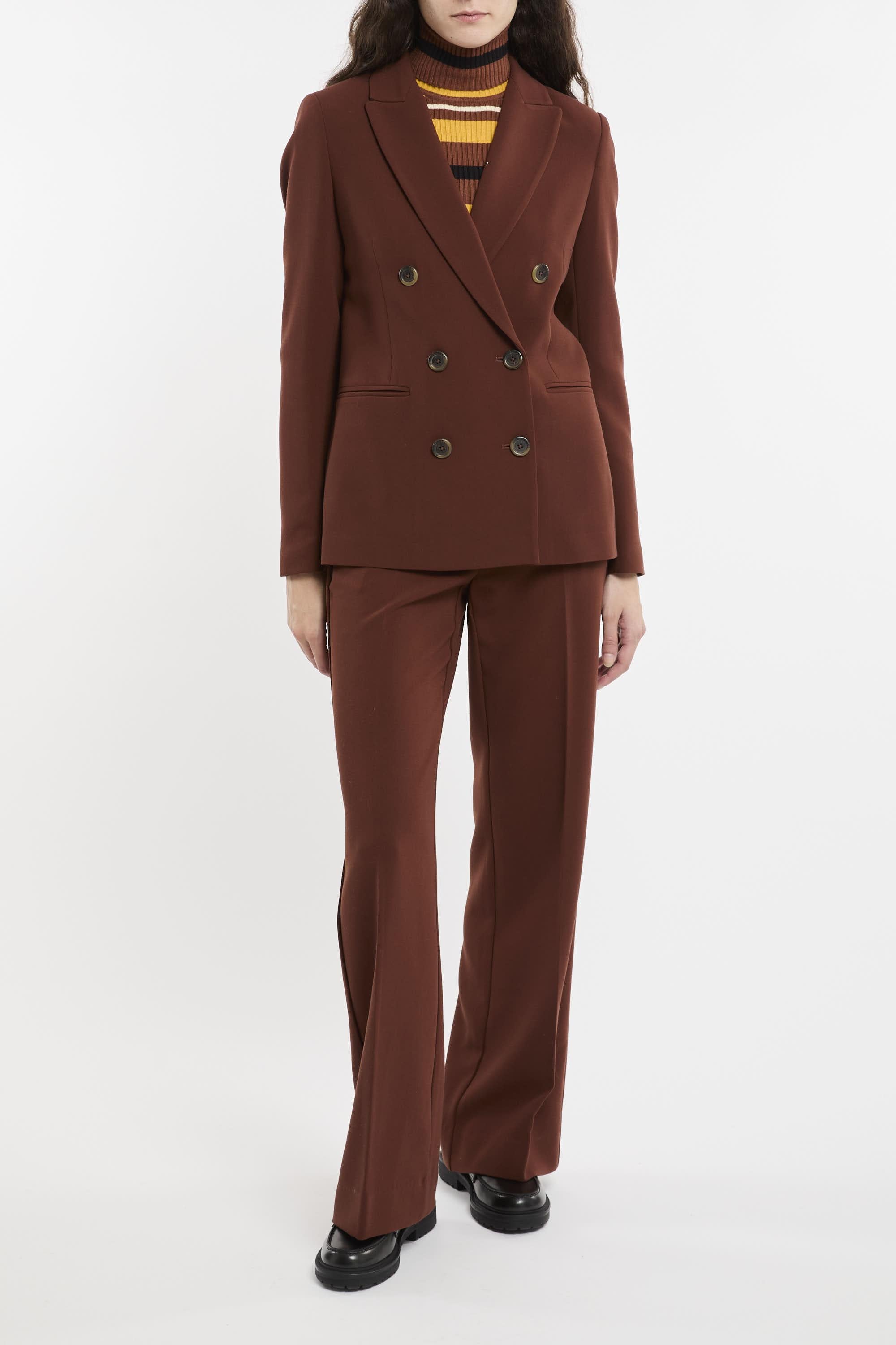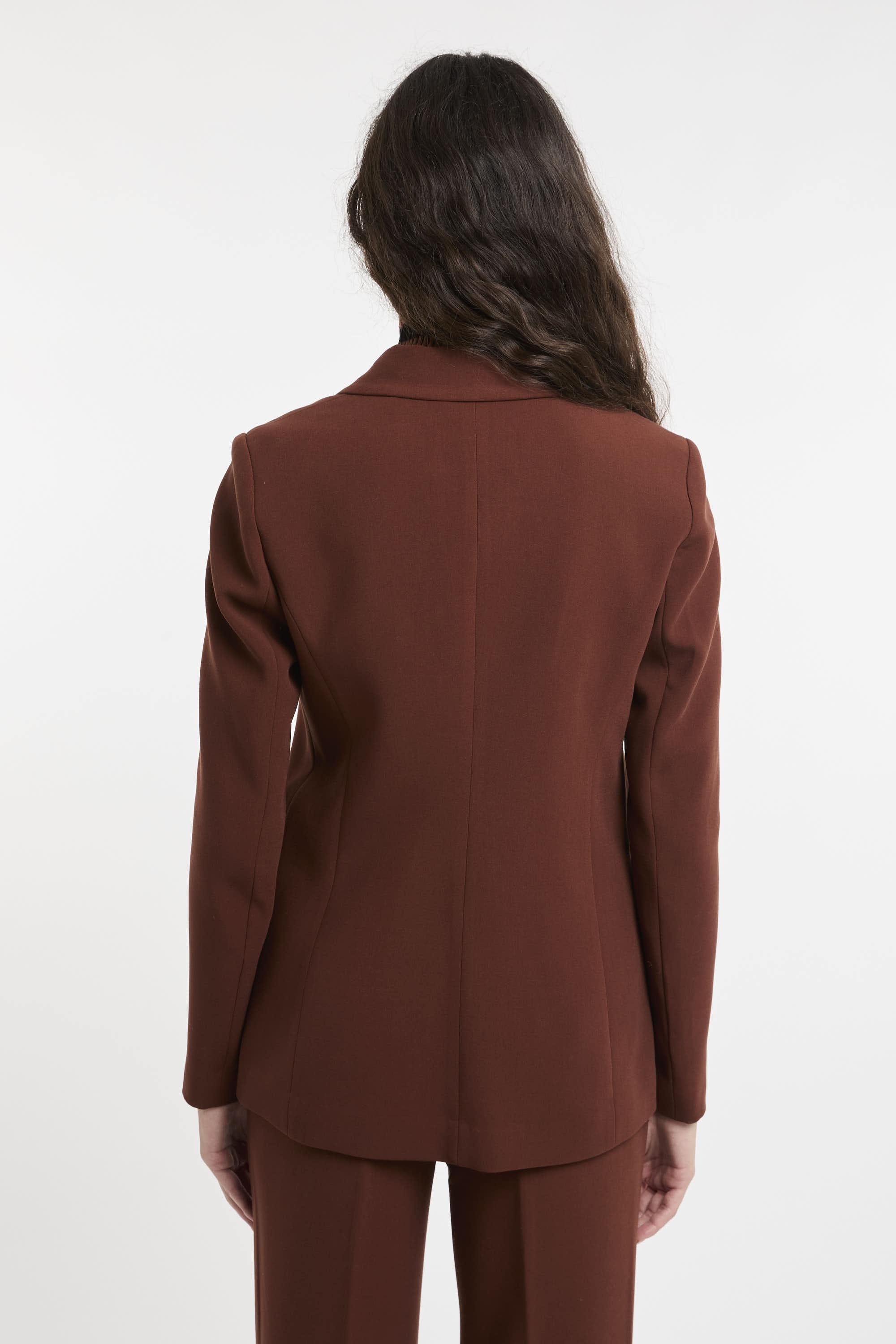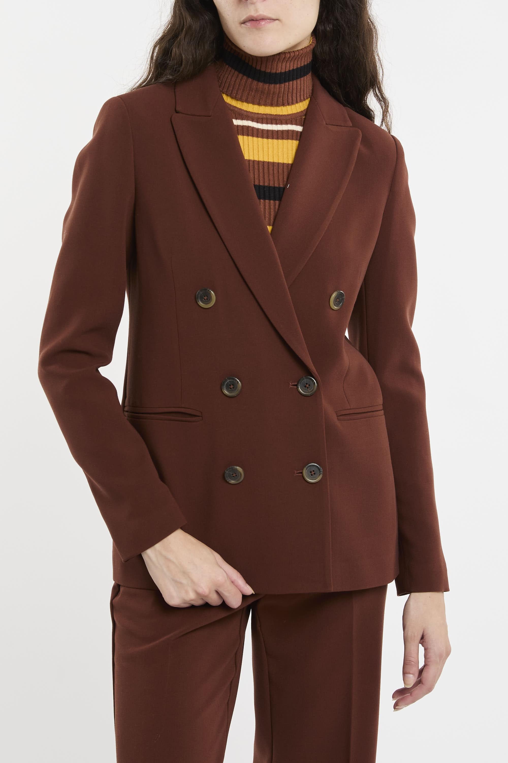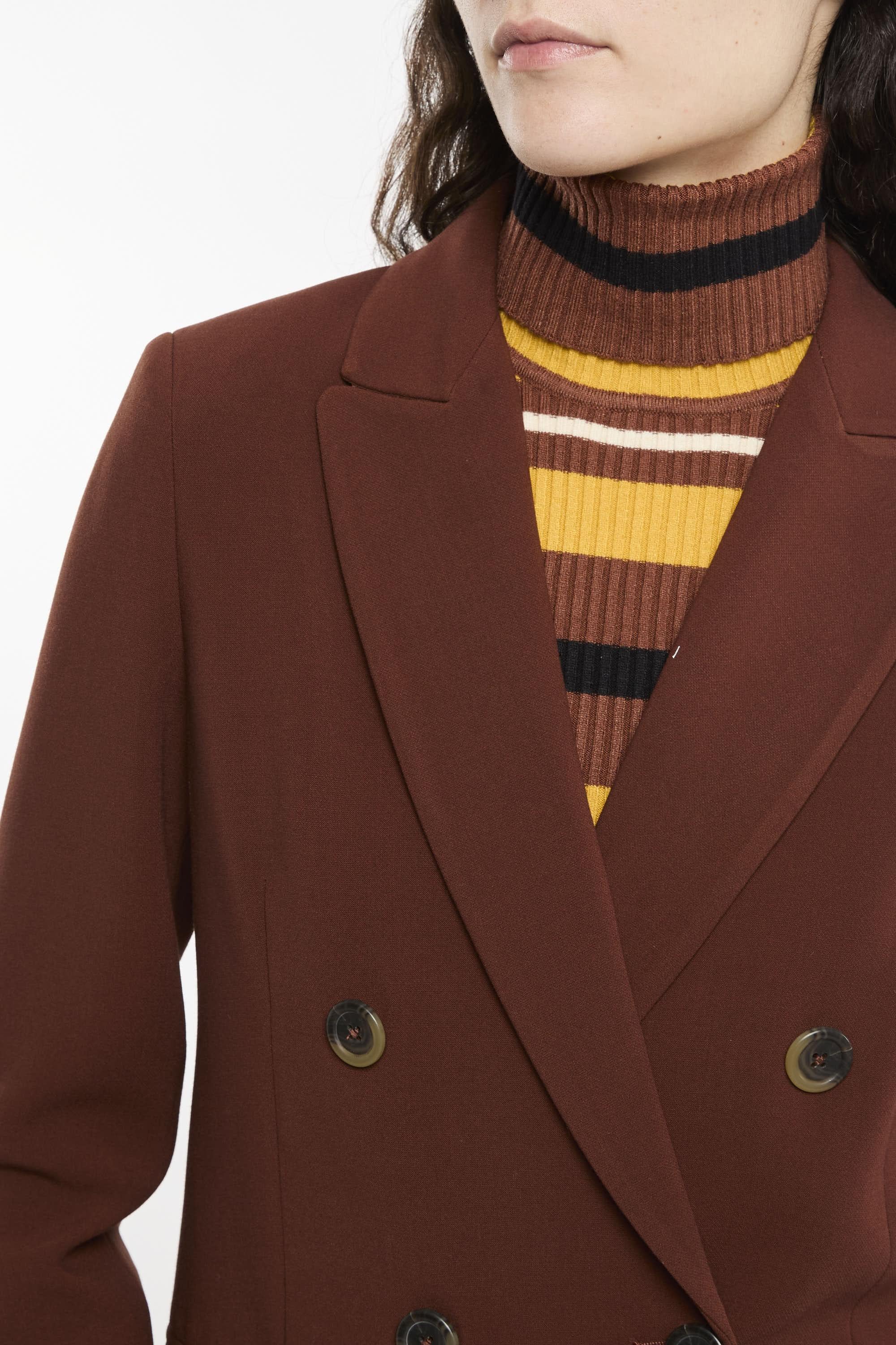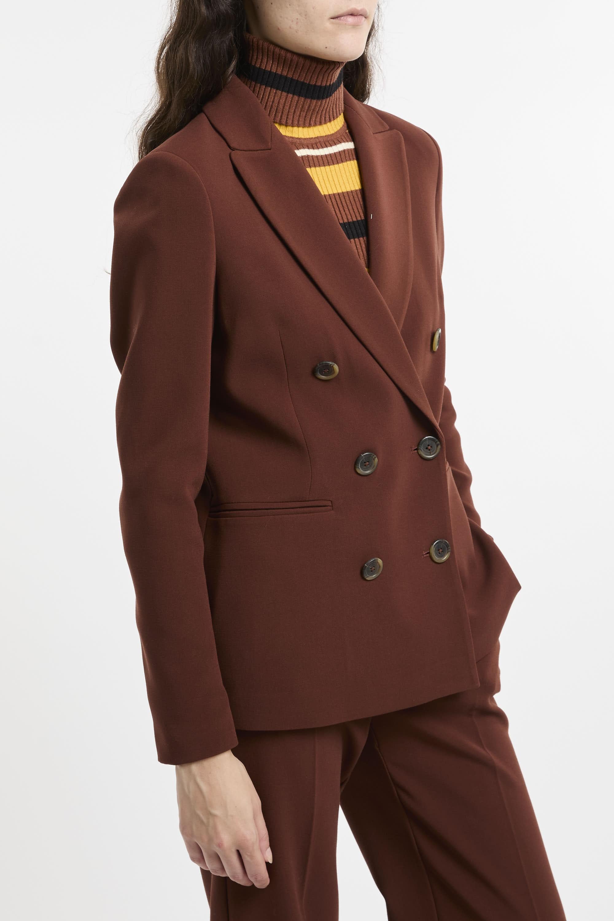 Giacca doppiopetto con revers in tinta. La modella è alta 178 cm e indossa la taglia 40.