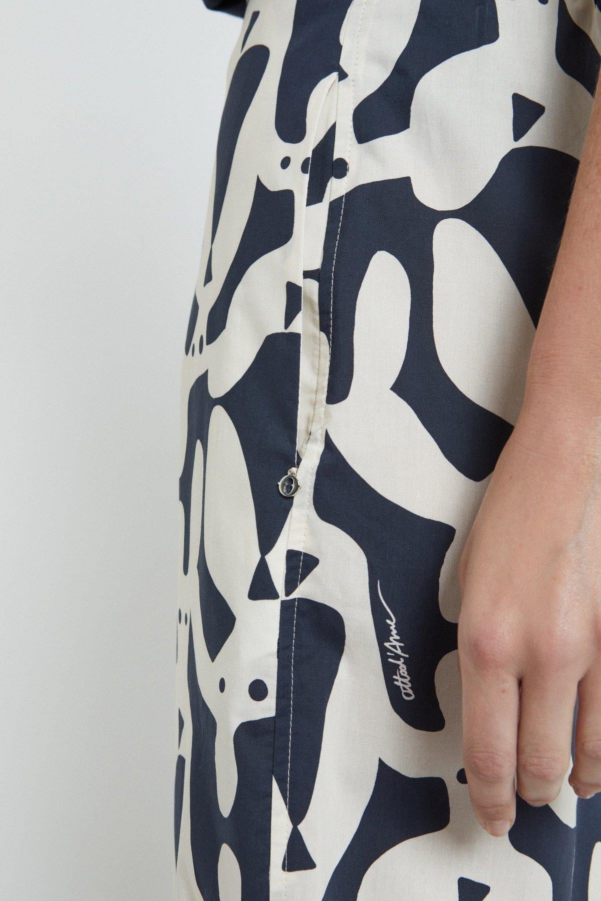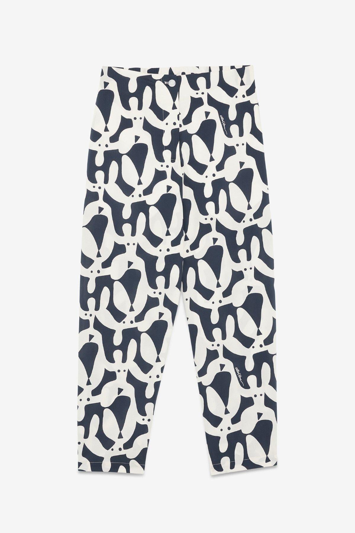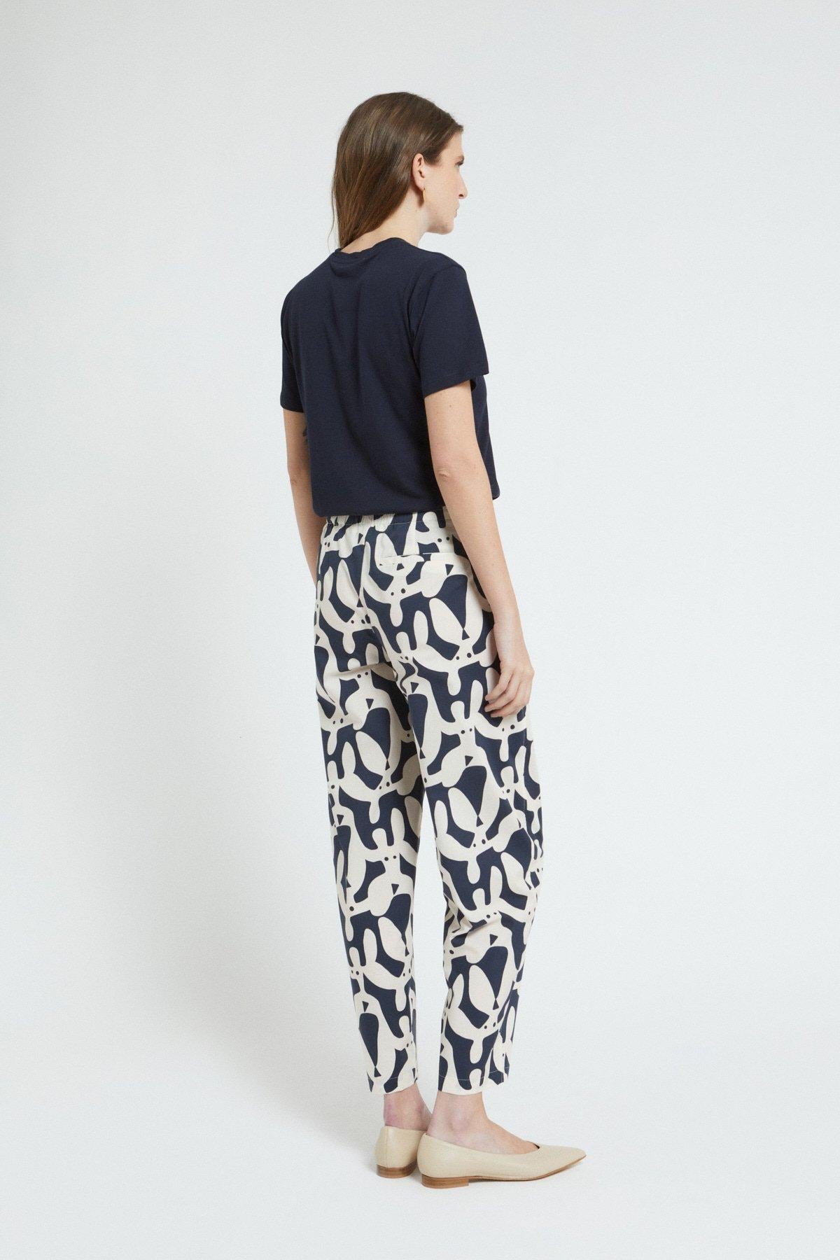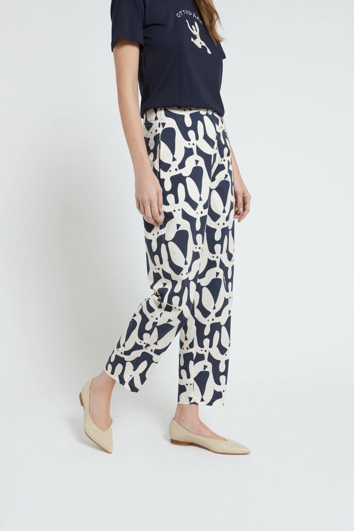 Pantalone alla caviglia in 100% popeline di cotone stampato. La modella è alta 178 cm e indossa la taglia 40.