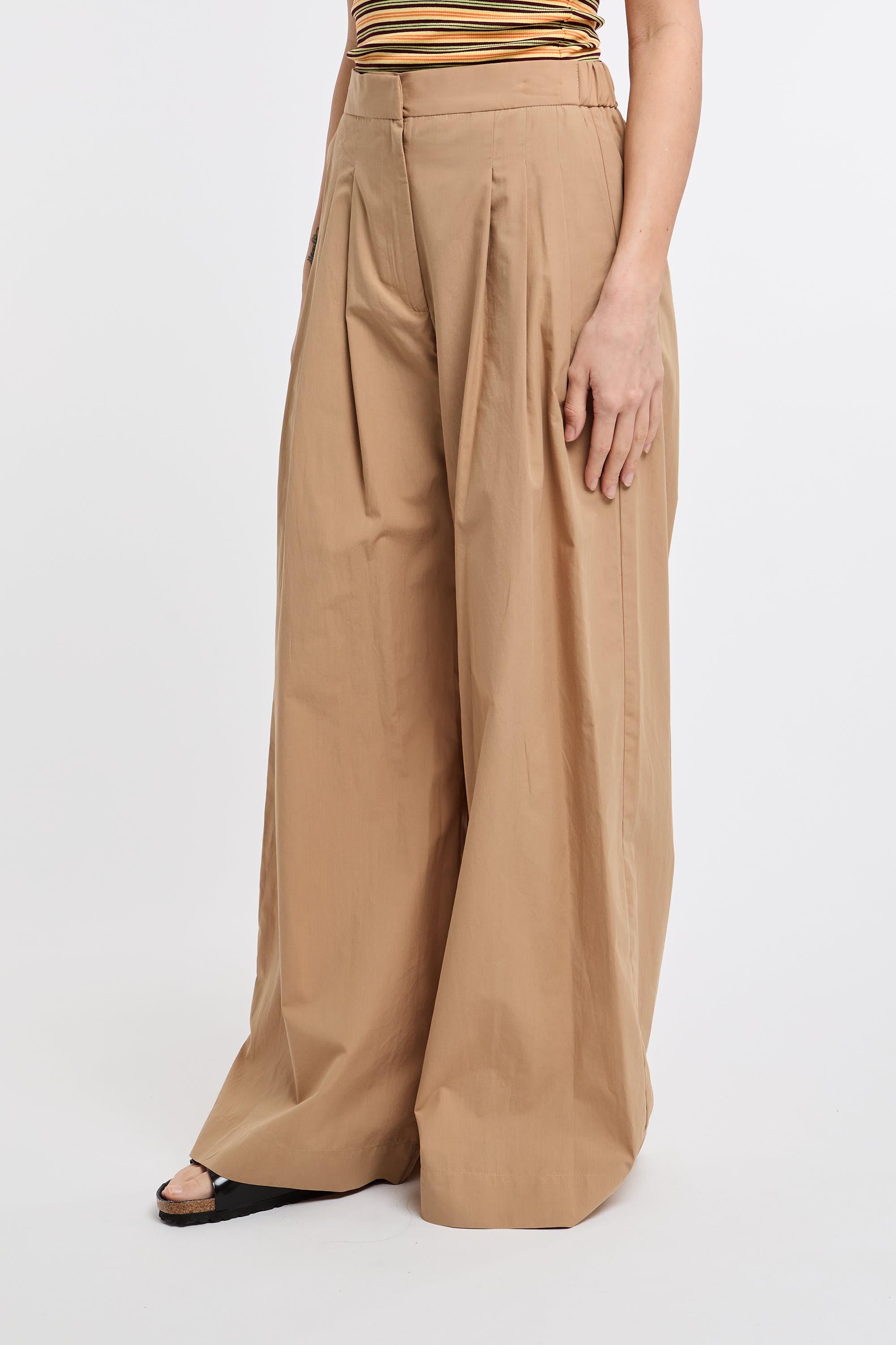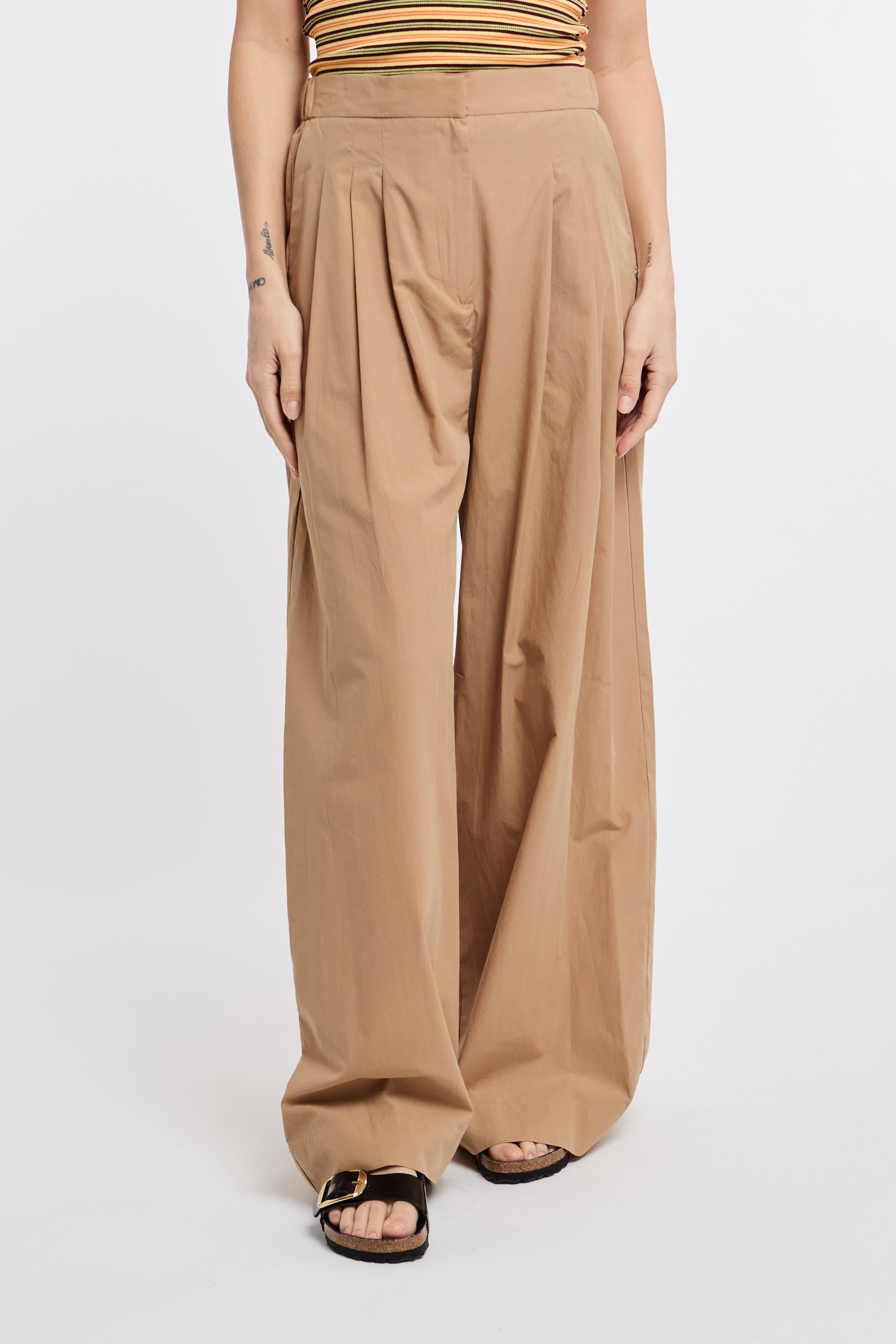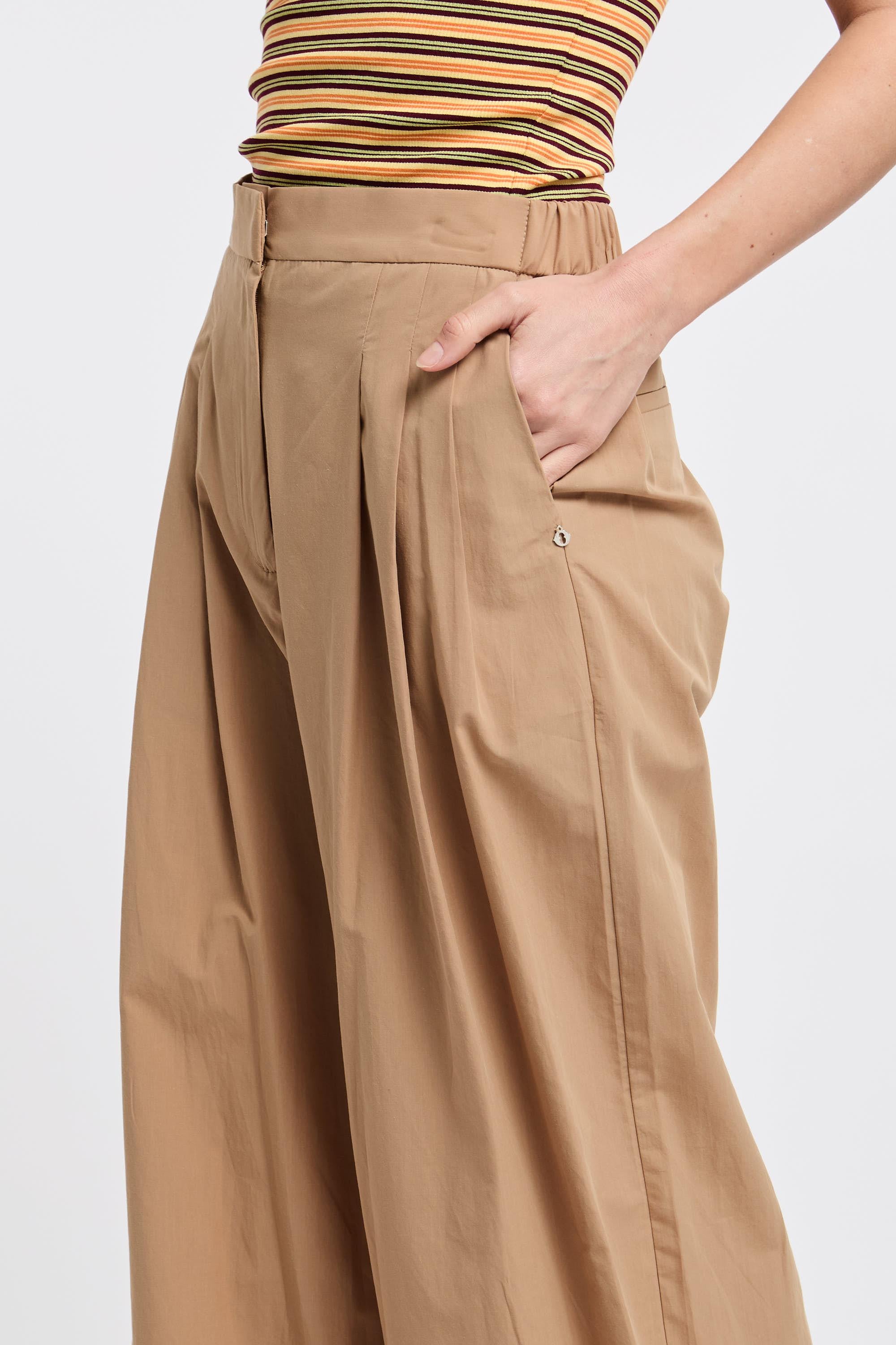 Pantalone palazzo in puro cotone popeline con pences. La modella è alta 178 cm e indossa la taglia 40.
