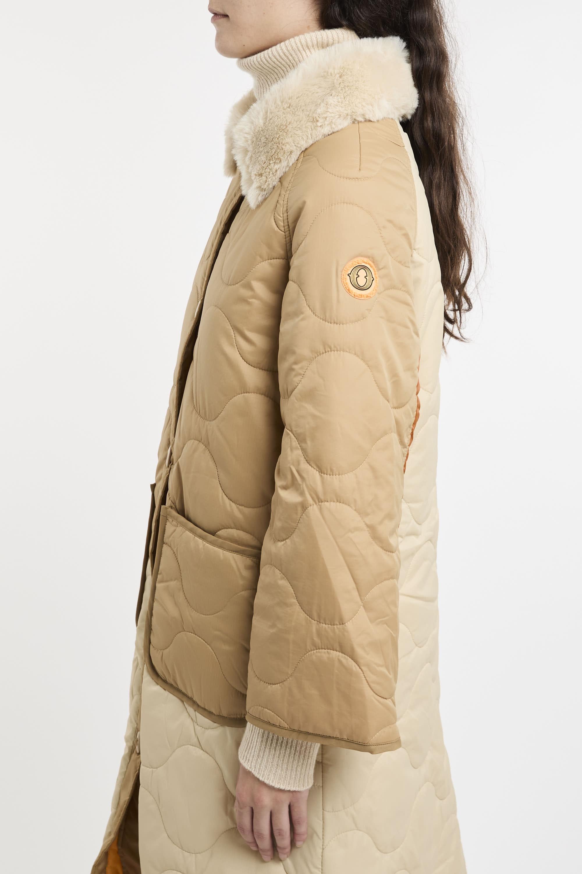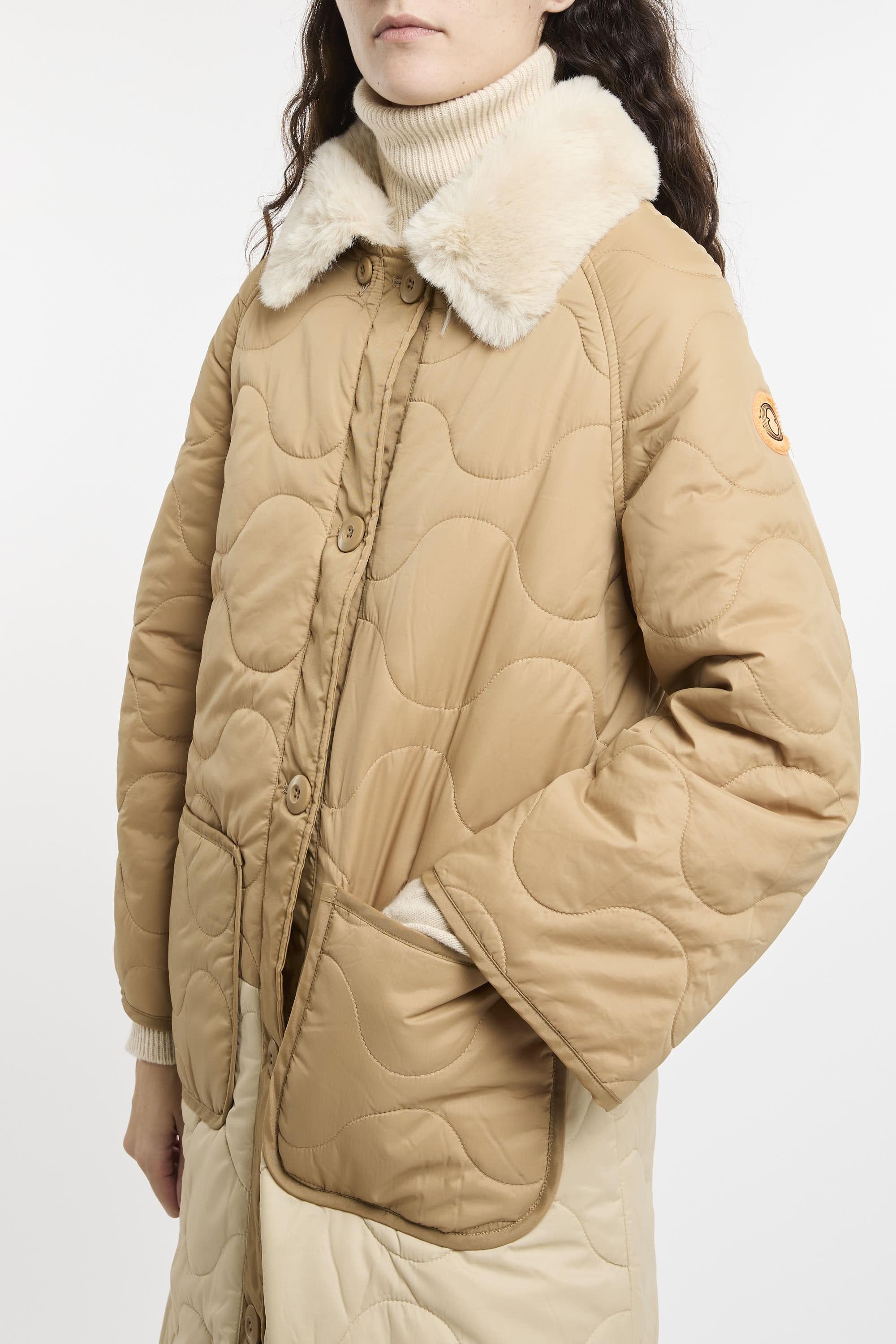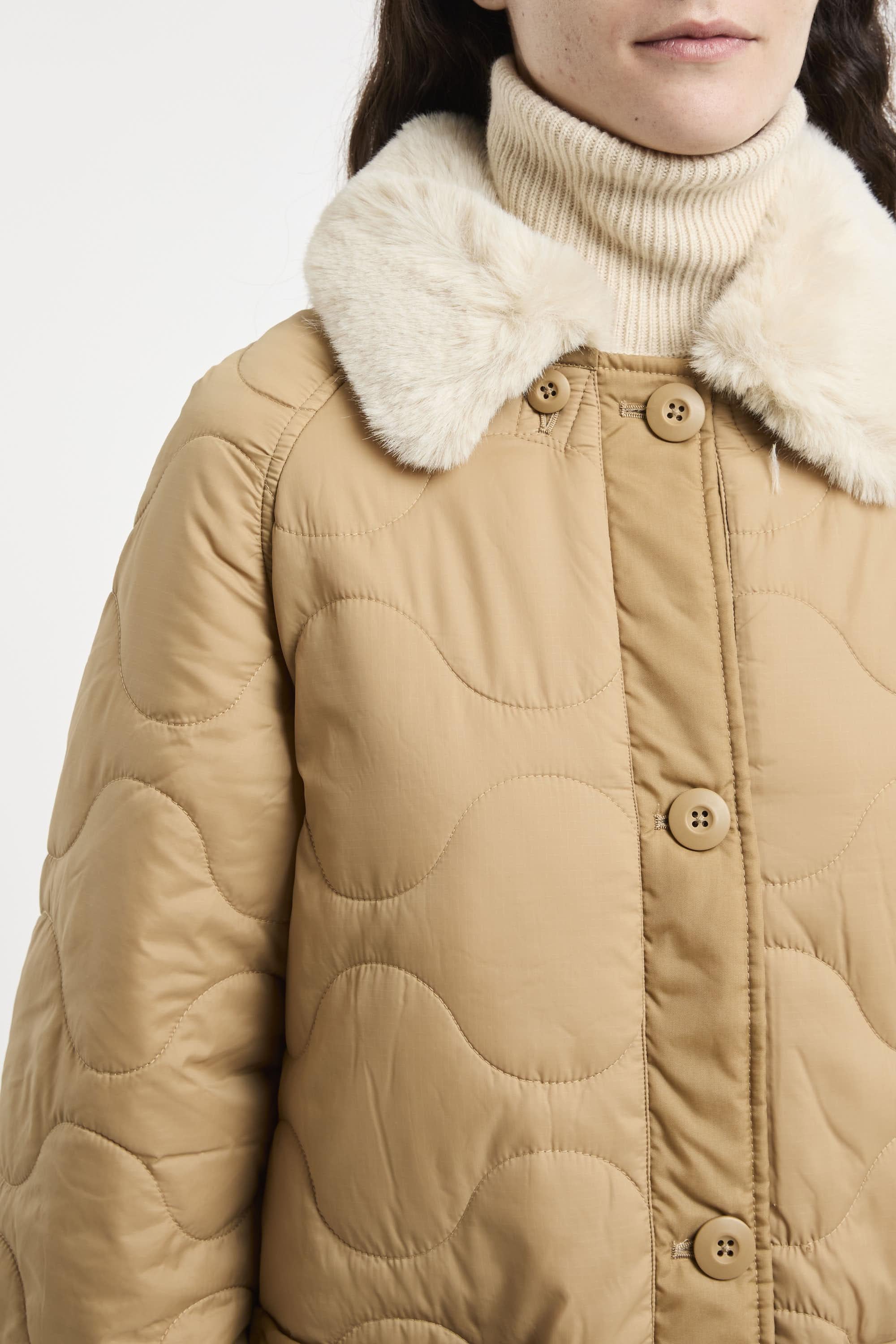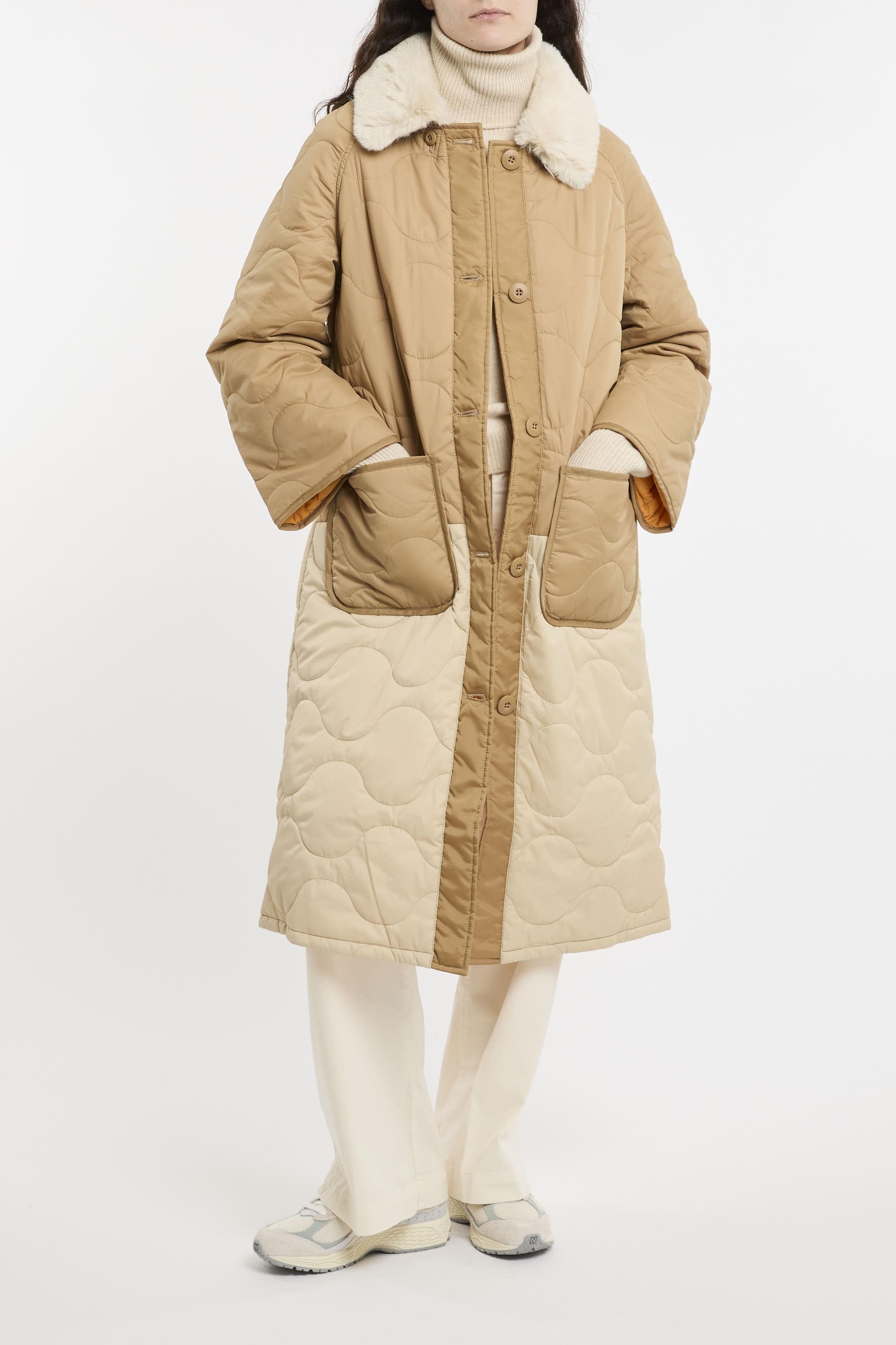 Piumino lungo imbottito e trapuntato con collo staccabile e tasche applicate. La modella è alta 178 cm e indossa la taglia S.