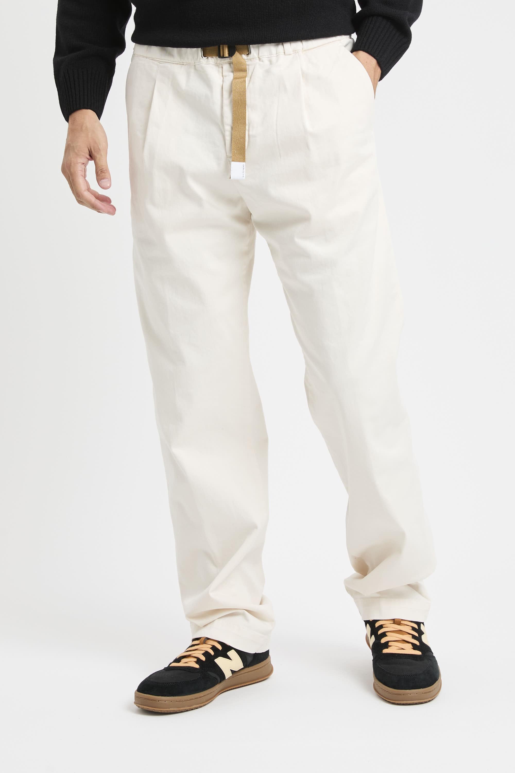 Pantalone in cotone con pinces, cintura regolabile con fibbia sul davanti. Due tasche laterali e due posteriori. Chiusura frontale con zip nascosta. Il modello è alto 187cm e indossa la taglia 48.