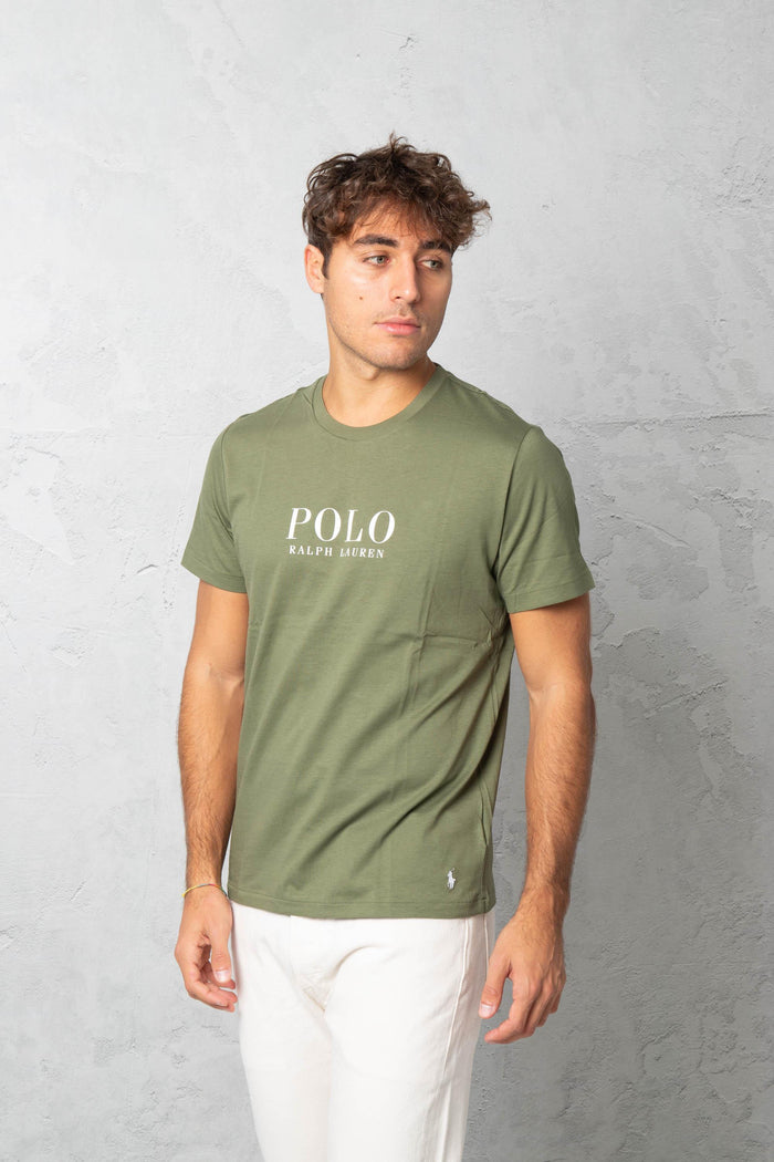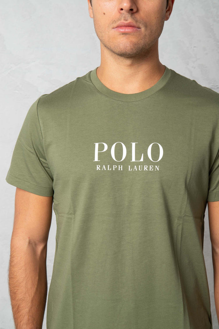 T-shirt girocollo in cotone tinta unita a maniche corte. Logo Polo Ralph Lauren stampato in contrasto sul fronte. Regular fit. Il modello è alto 187cm e indossa la taglia L.