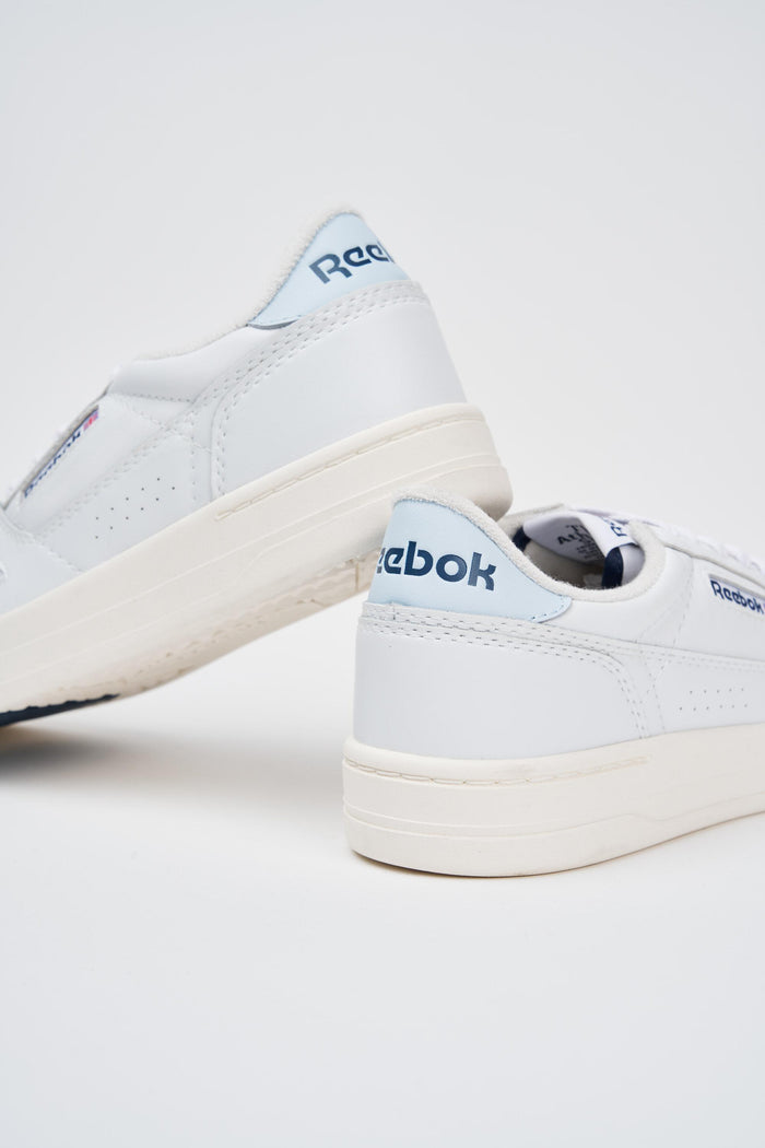 Sneakers LT Court ispirate ai modelli d'archivio di Reebok. L'elegante tomaia in pelle presenta inserti in suede e in TPU di ispirazione rétro, mentre la fodera in spugna garantisce il massimo comfort. Sulla linguetta è presente il logo del brand e suola esterna in gomma. Chiusura con lacci.