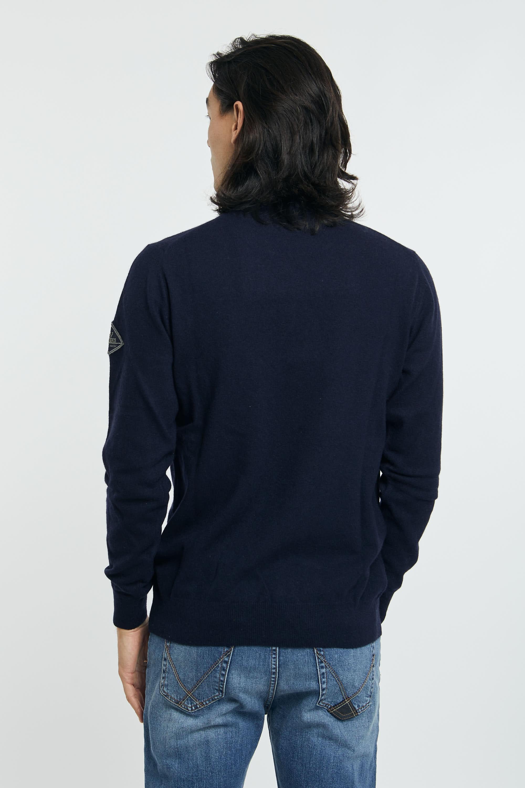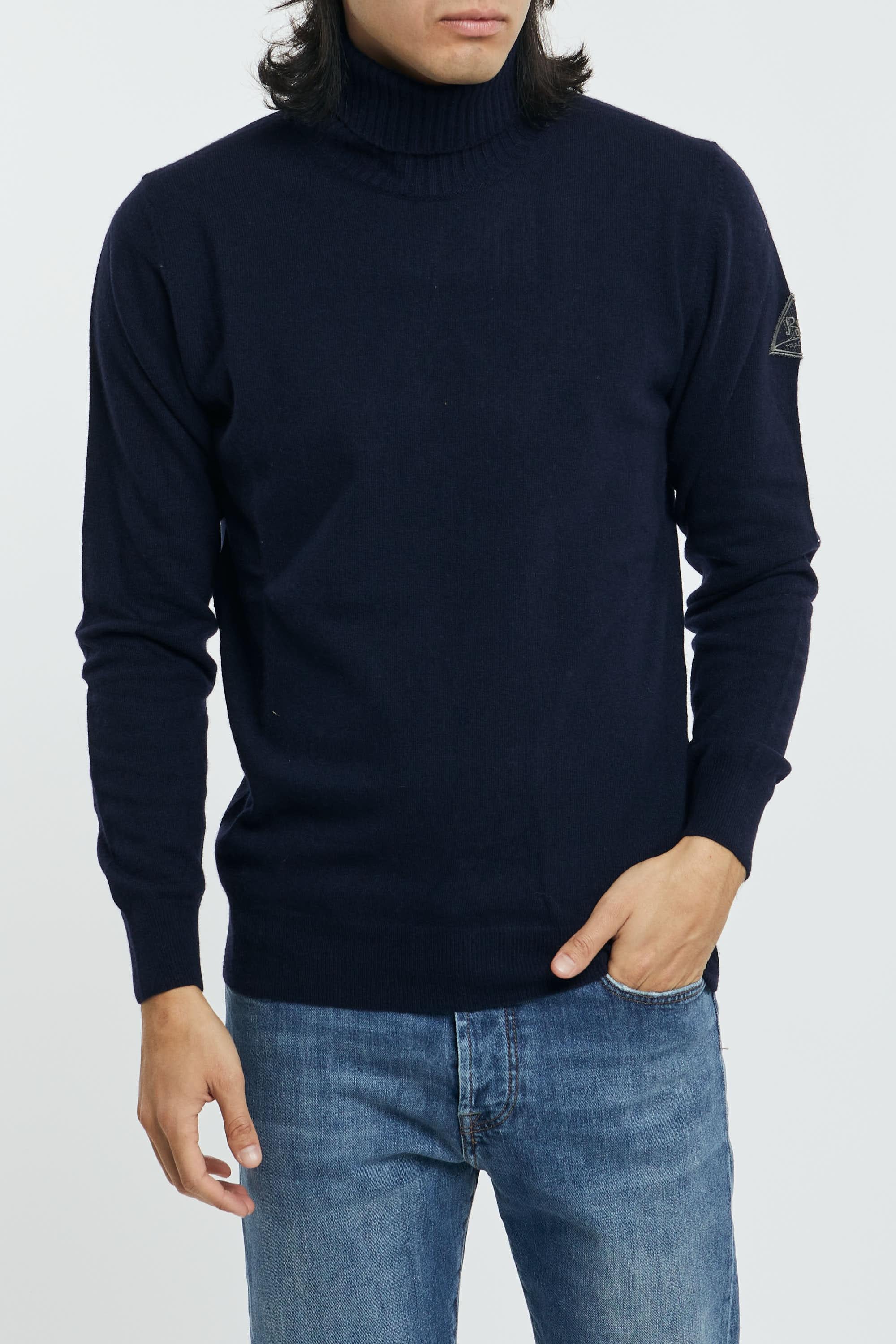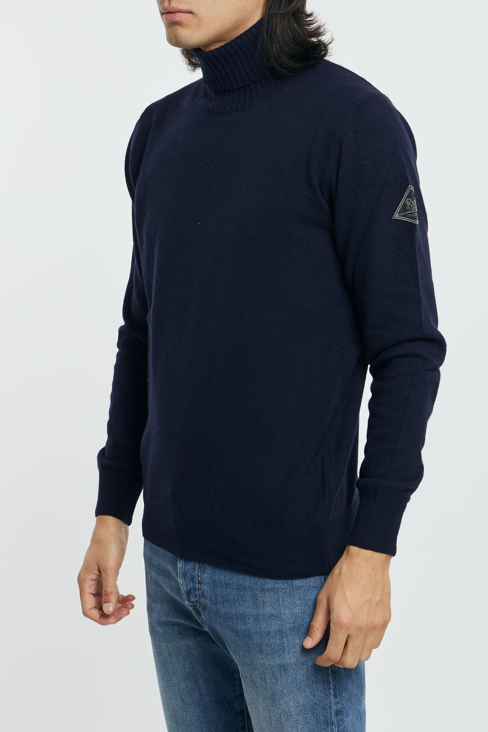 Maglia collo alto in lana e cashmere tinta unita. Collo, polsini e fondo maglia a costine. Patch Roy Roger's in denim applicata sulla manica sinistra. Regular fit. Made in Italy. Il modello è alto 187cm e indossa la taglia L.