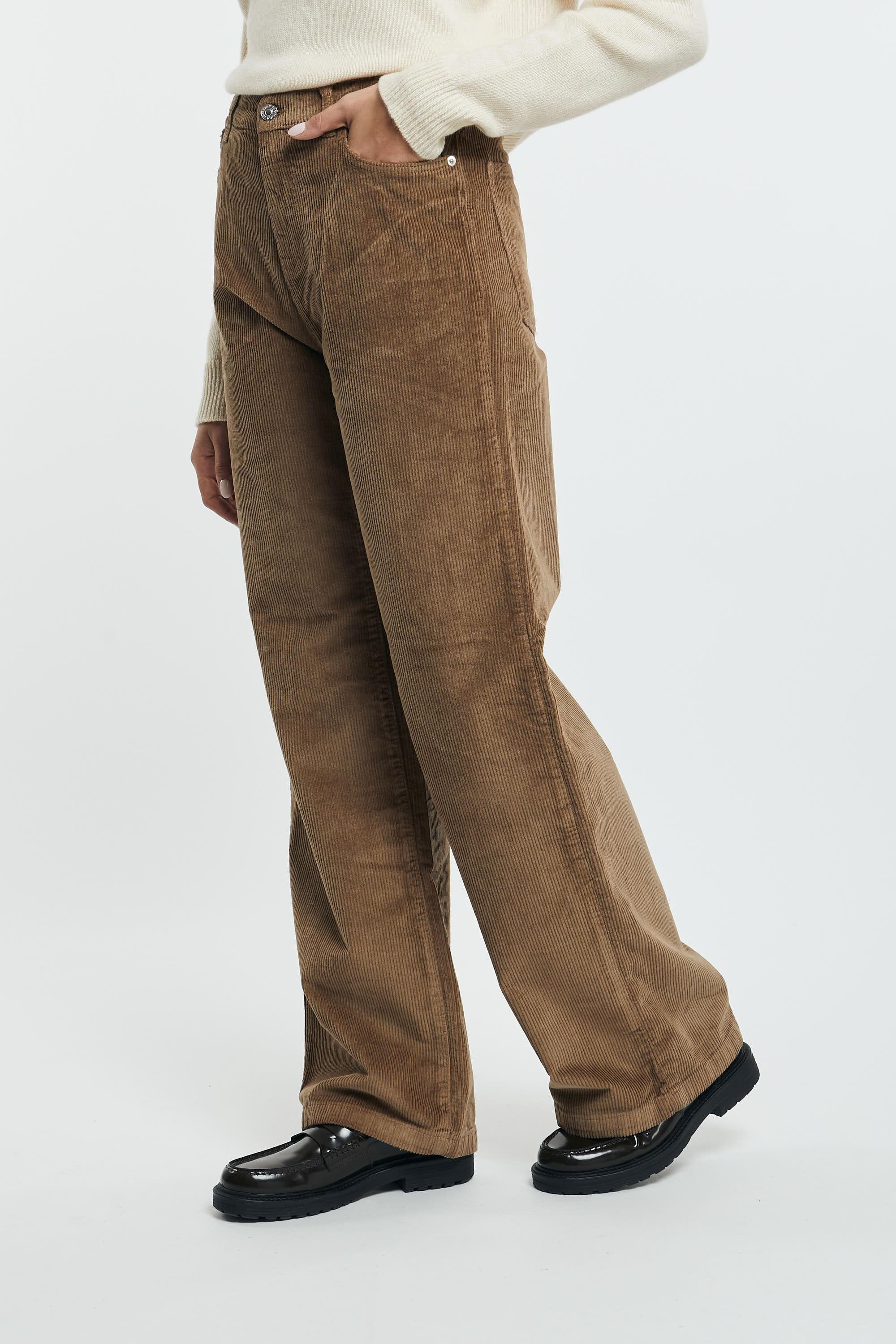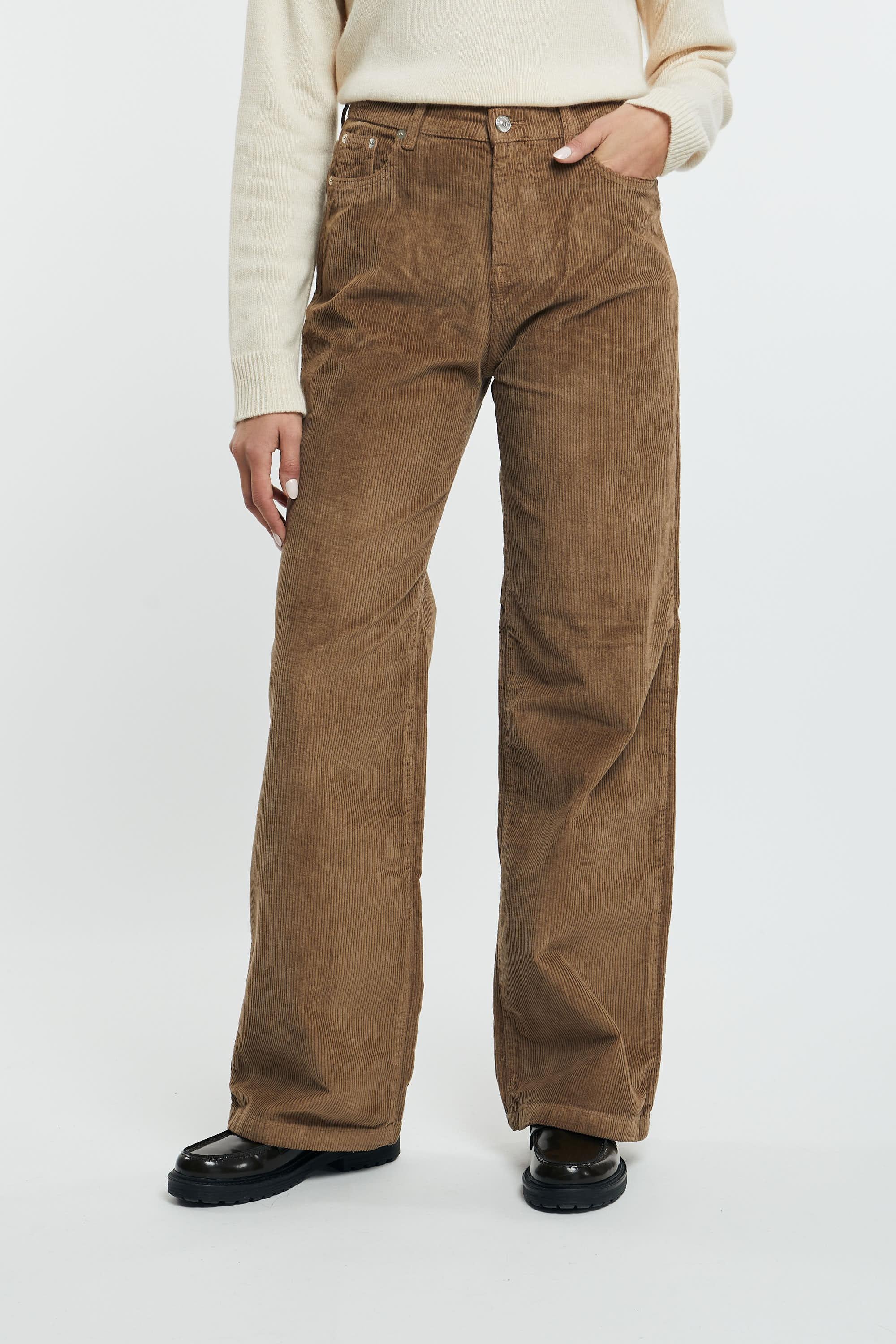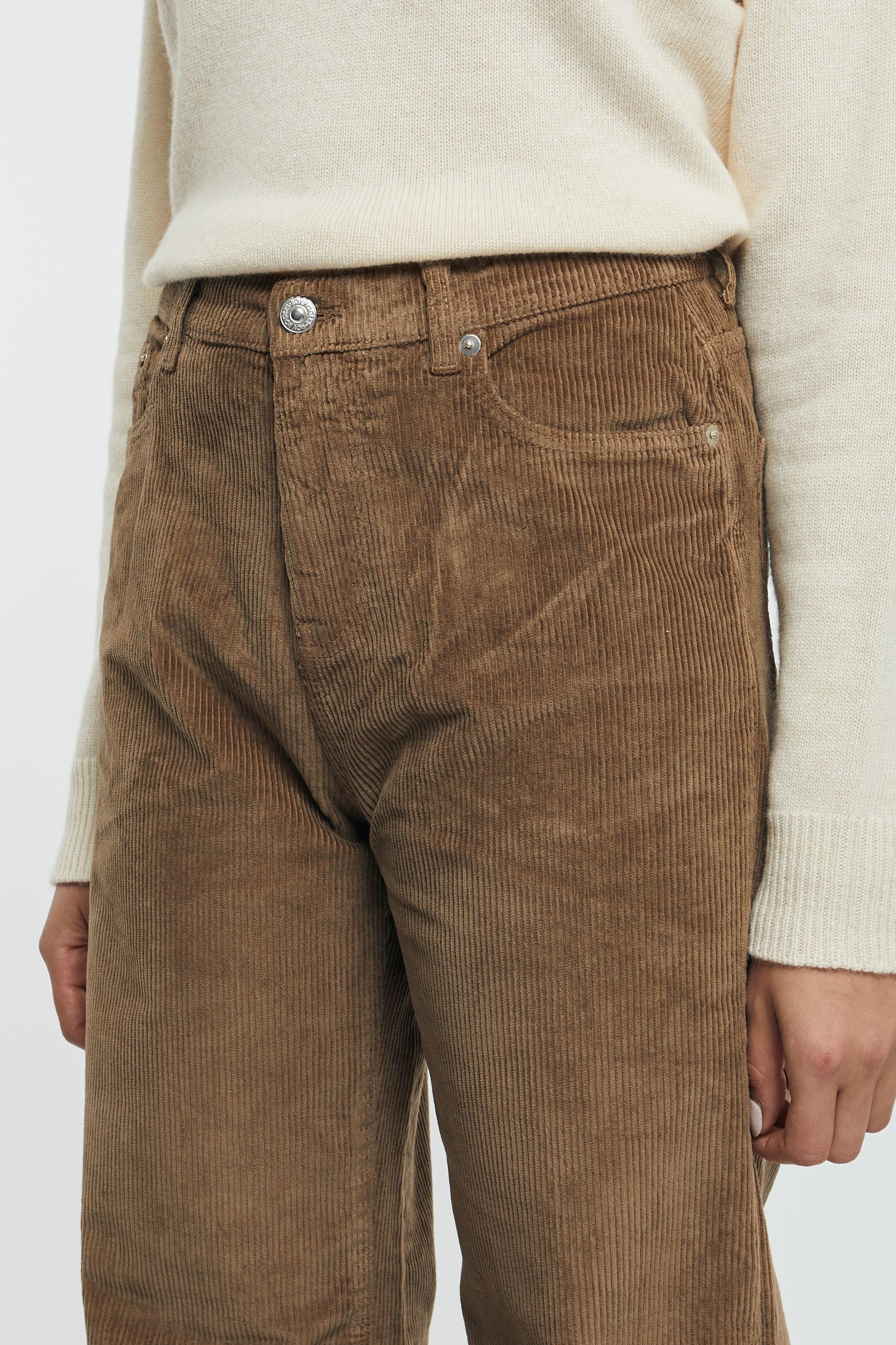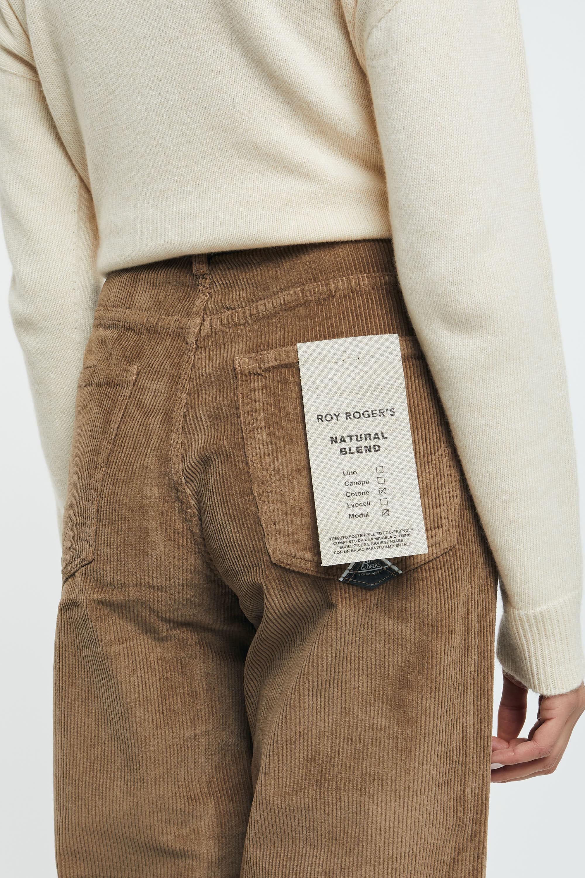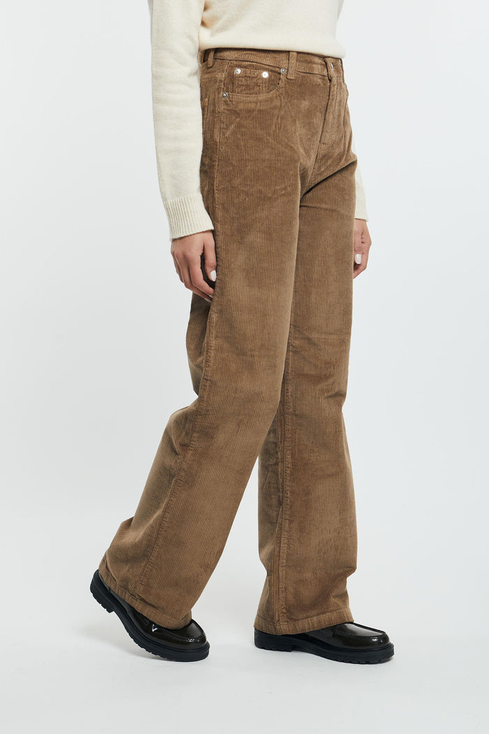 Pantalone modello Marta in velluto a coste tinta unita. Vita alta con passanti. Chiusura con bottone logato e zip. Due tasche sul fronte e due tasche sul retro con label Roy Roger's applicata. Flare fit. La modella è alta 178 cm e indossa la taglia 27.