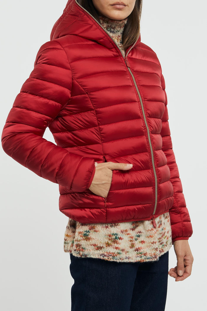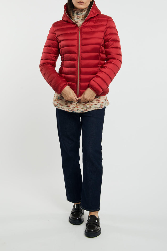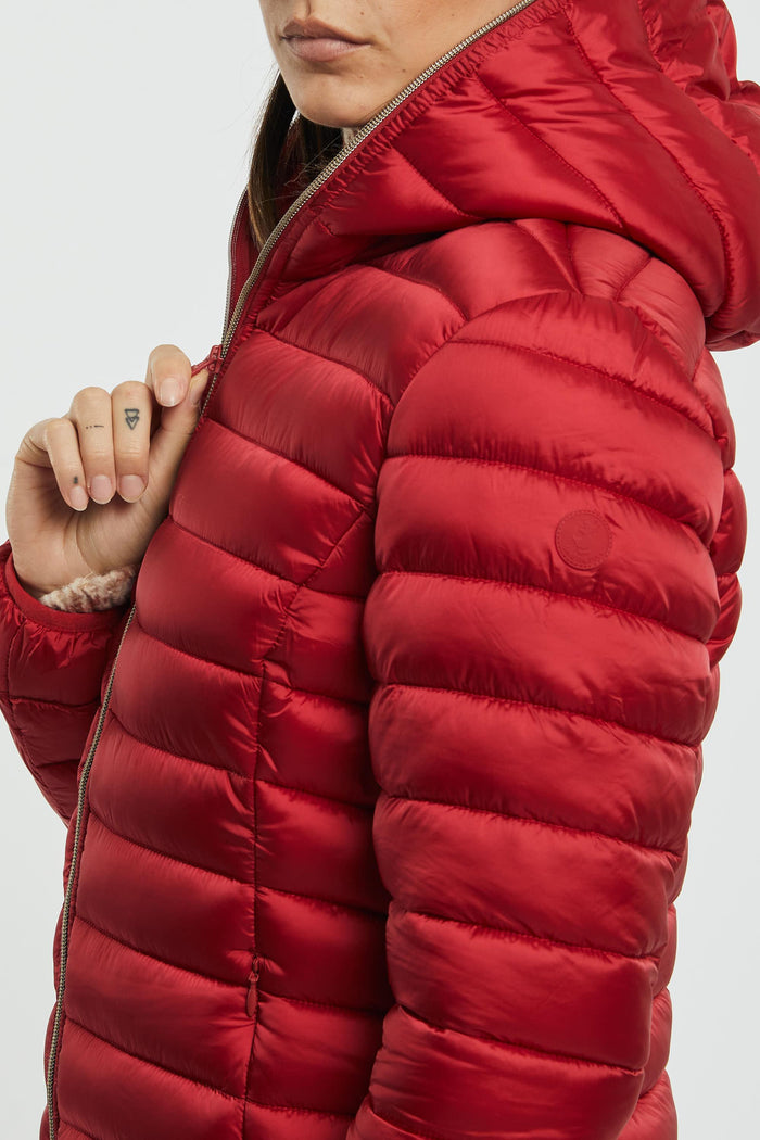 Piumino Alexis unisce la fine trama trapuntata, il tessuto leggero dall'aspetto lucente e l'imbottitura animal-free in Plumtech. Dotato di cappuccio, chiusura a doppio cursore e tasche laterali, il modello è rifinito da polsi e fondo in lycra. Foderato tono su tono, il giubbotto si distingue per il tirazip personalizzato e il logo gommato sulla manica sinistra, entrambi tono su tono. La modella è alta 178 cm e indossa la taglia II.