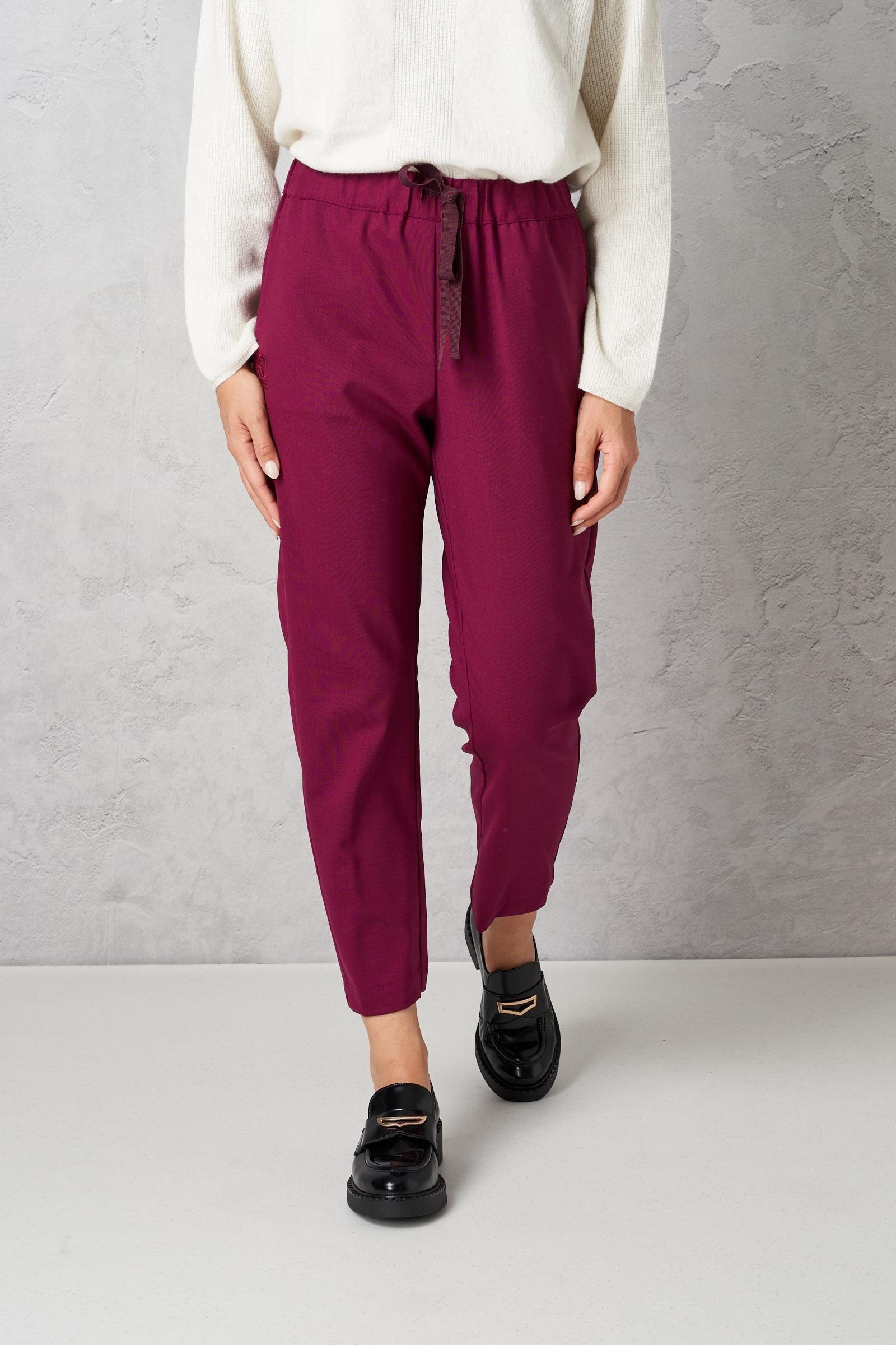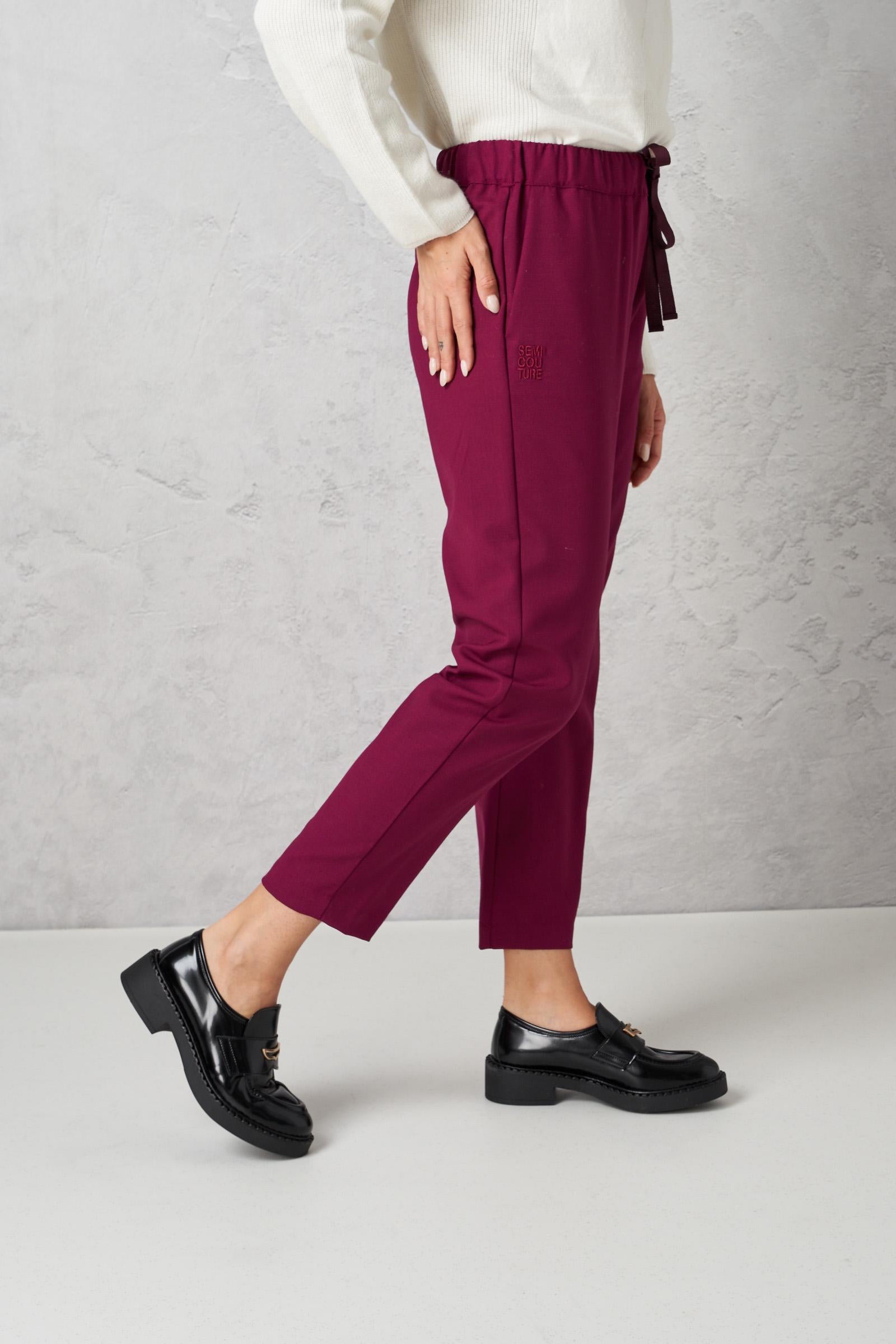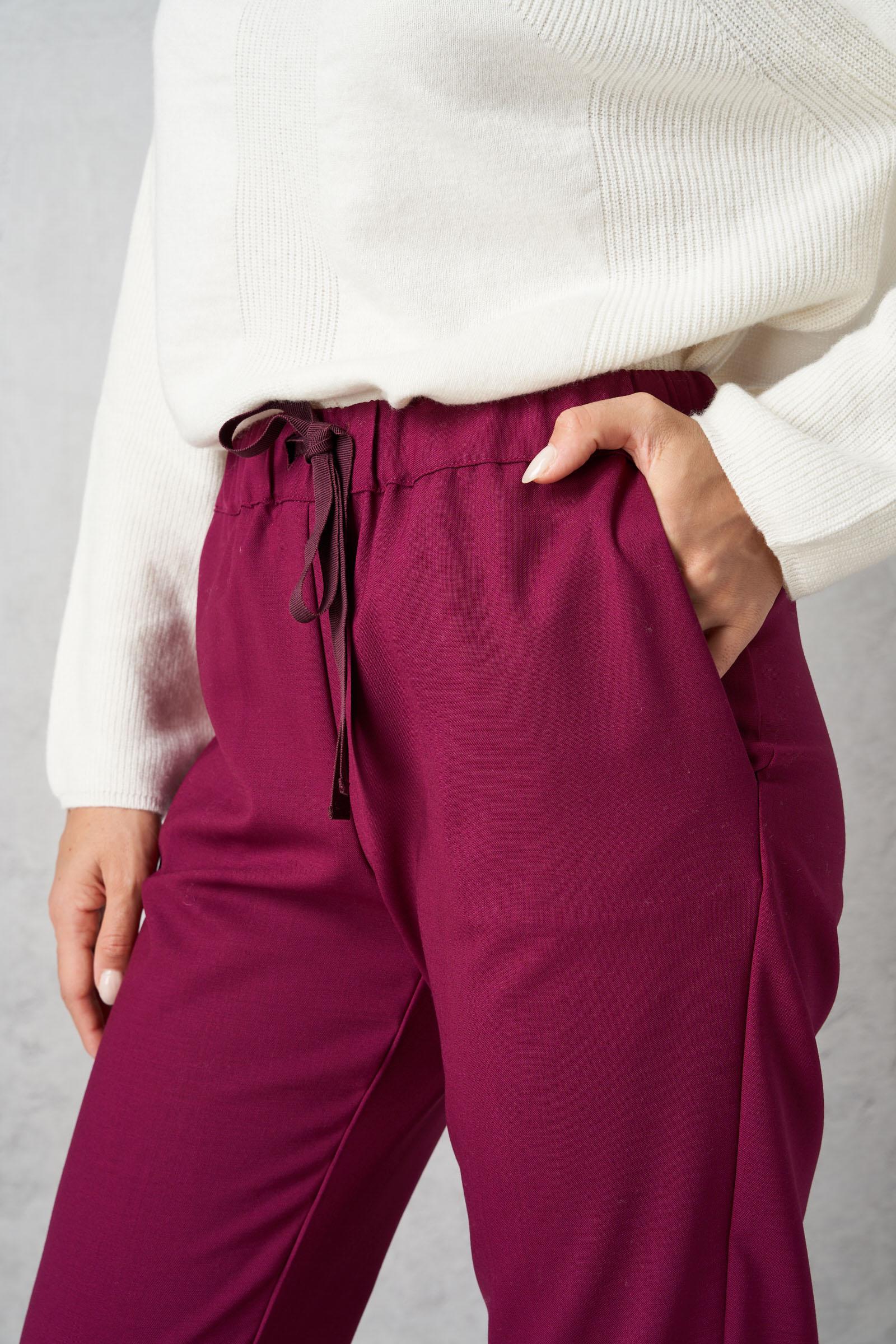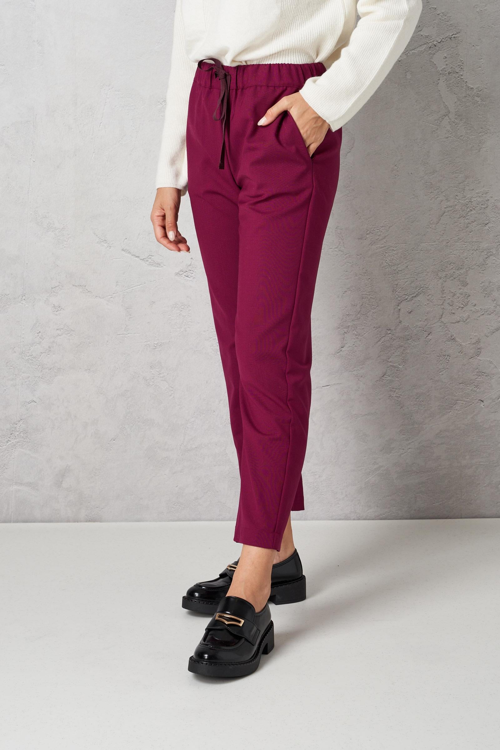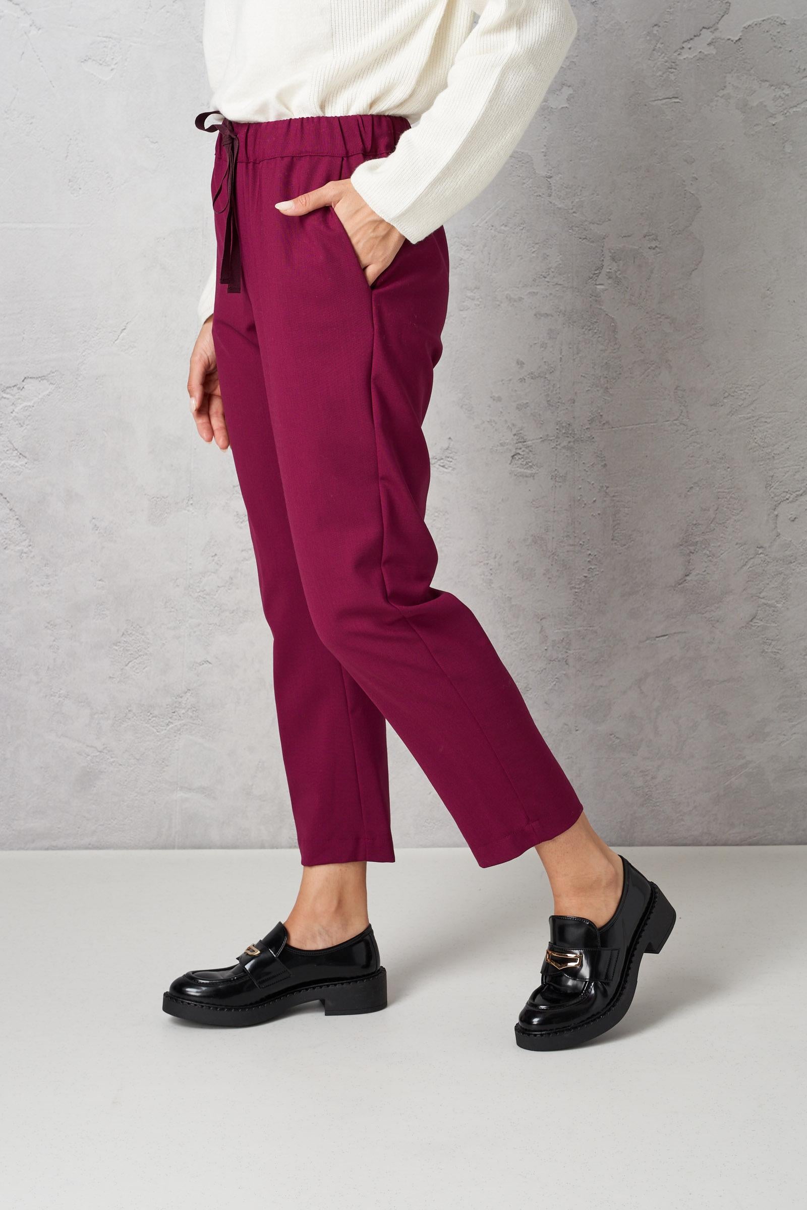 Pantalone misto lana modello jogger, a vita alta con coulisse in vita in tono, tasche a scomparsa ai lati, lunghezza sotto alla caviglia. La modella è alta 178 cm e indossa la taglia 40 italiana.