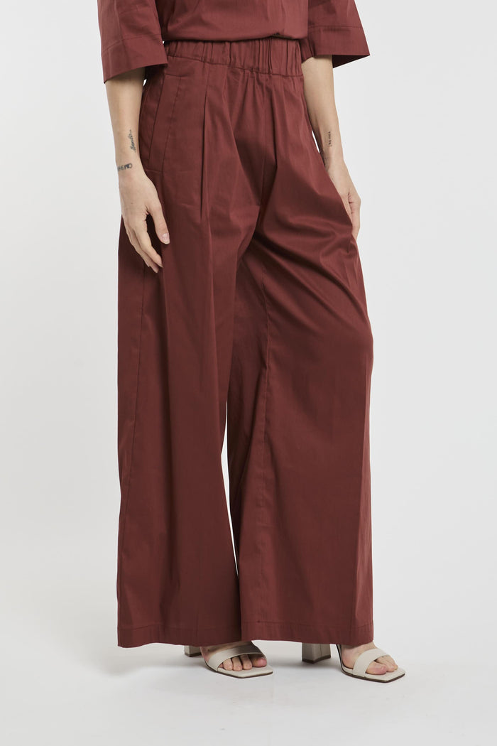 Pantaloni a palazzo in popeline. Elastico in vita, due tasche a filetto e pieghe stiro. Volume ampio e lunghezza ai piedi. La modella è alta 178 cm e indossa la taglia 40.