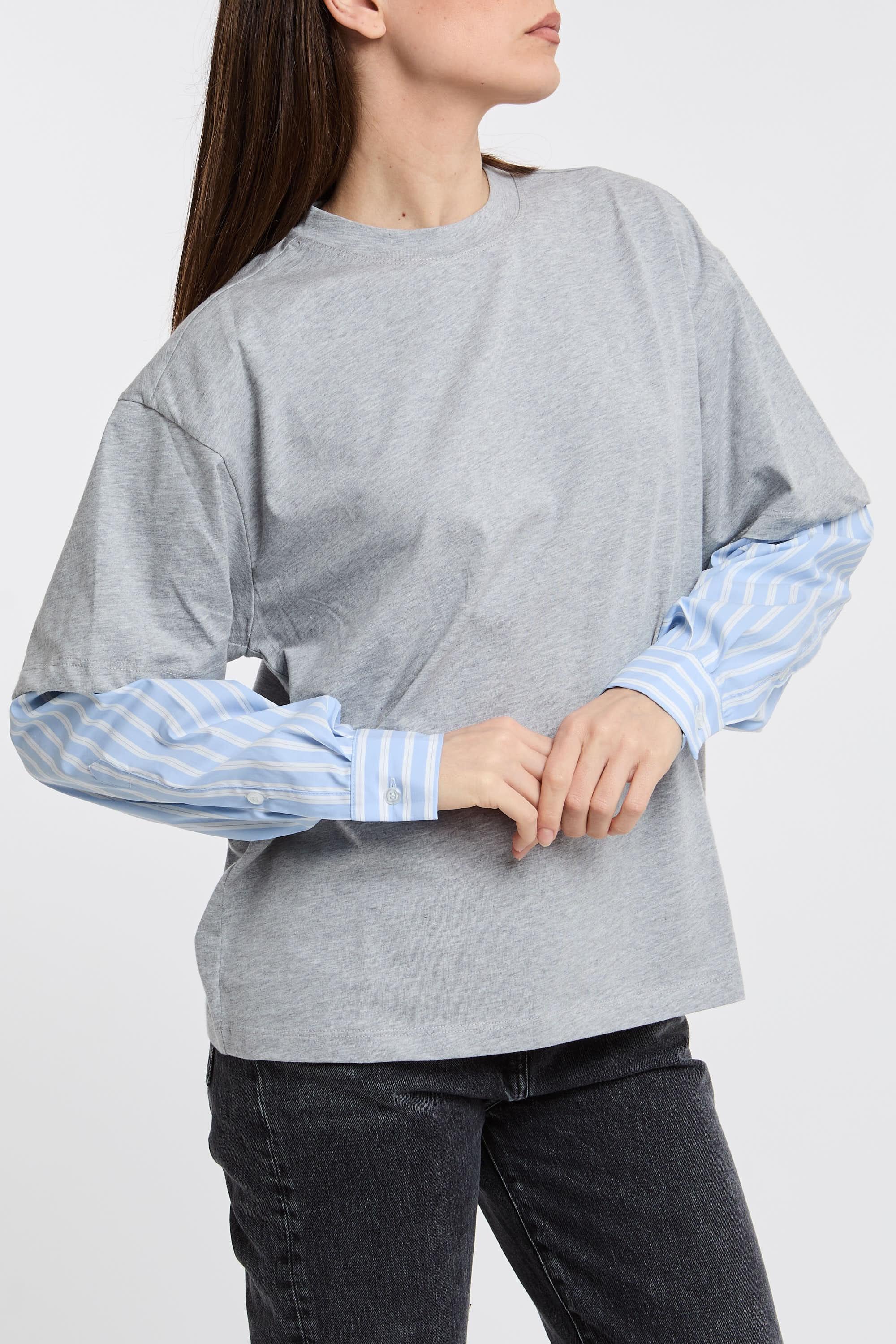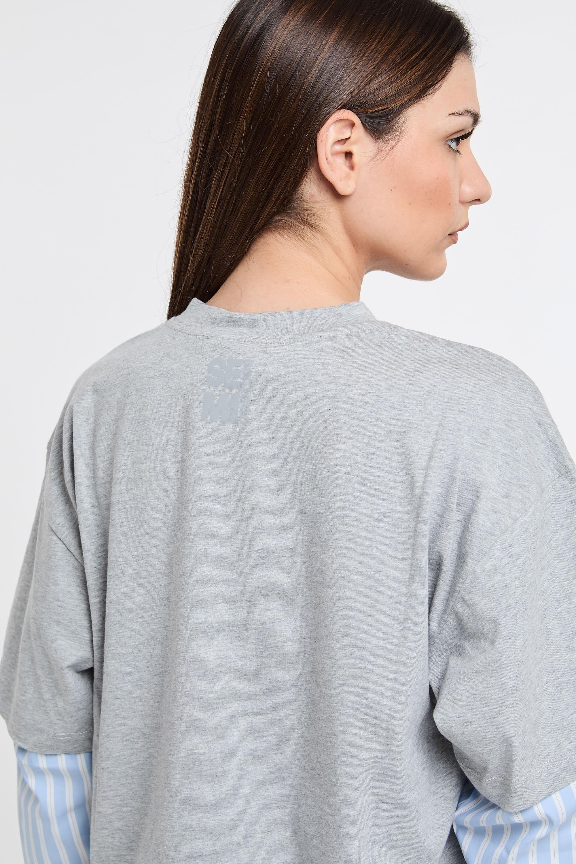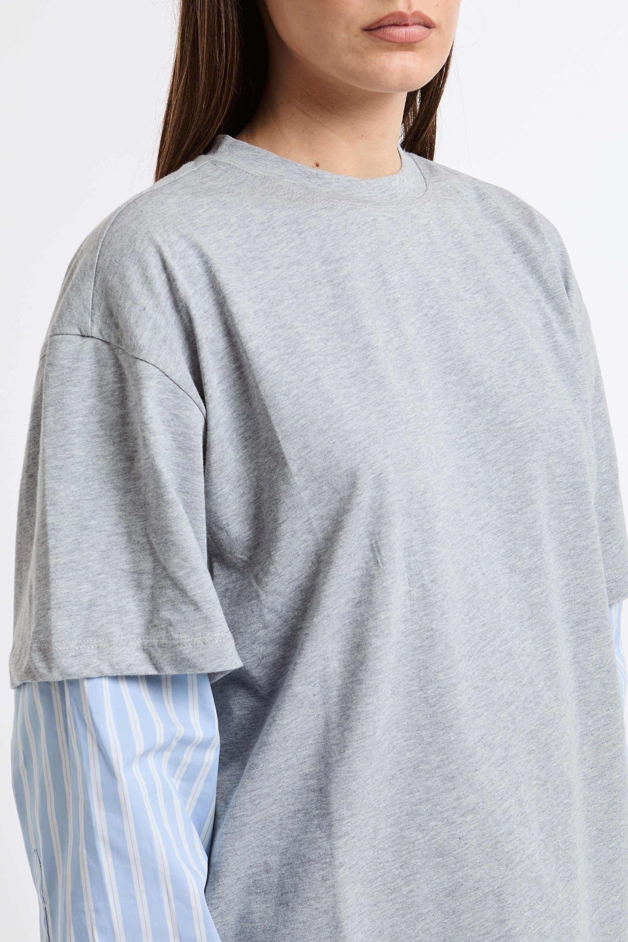 T-shirt in jersey di cotone. Modello girocollo, maniche con inserto in popeline. Vestibilità regular, lunghezza bacino. Stampa logo in tono. La modella è alta 178 cm e indossa la taglia S.