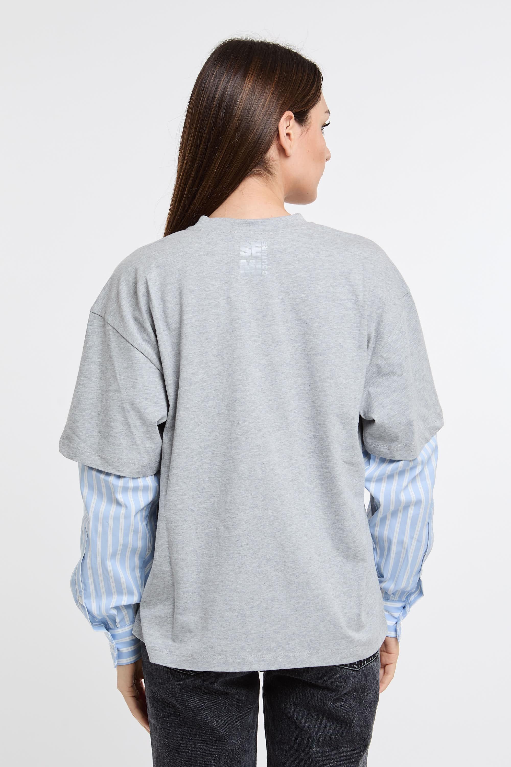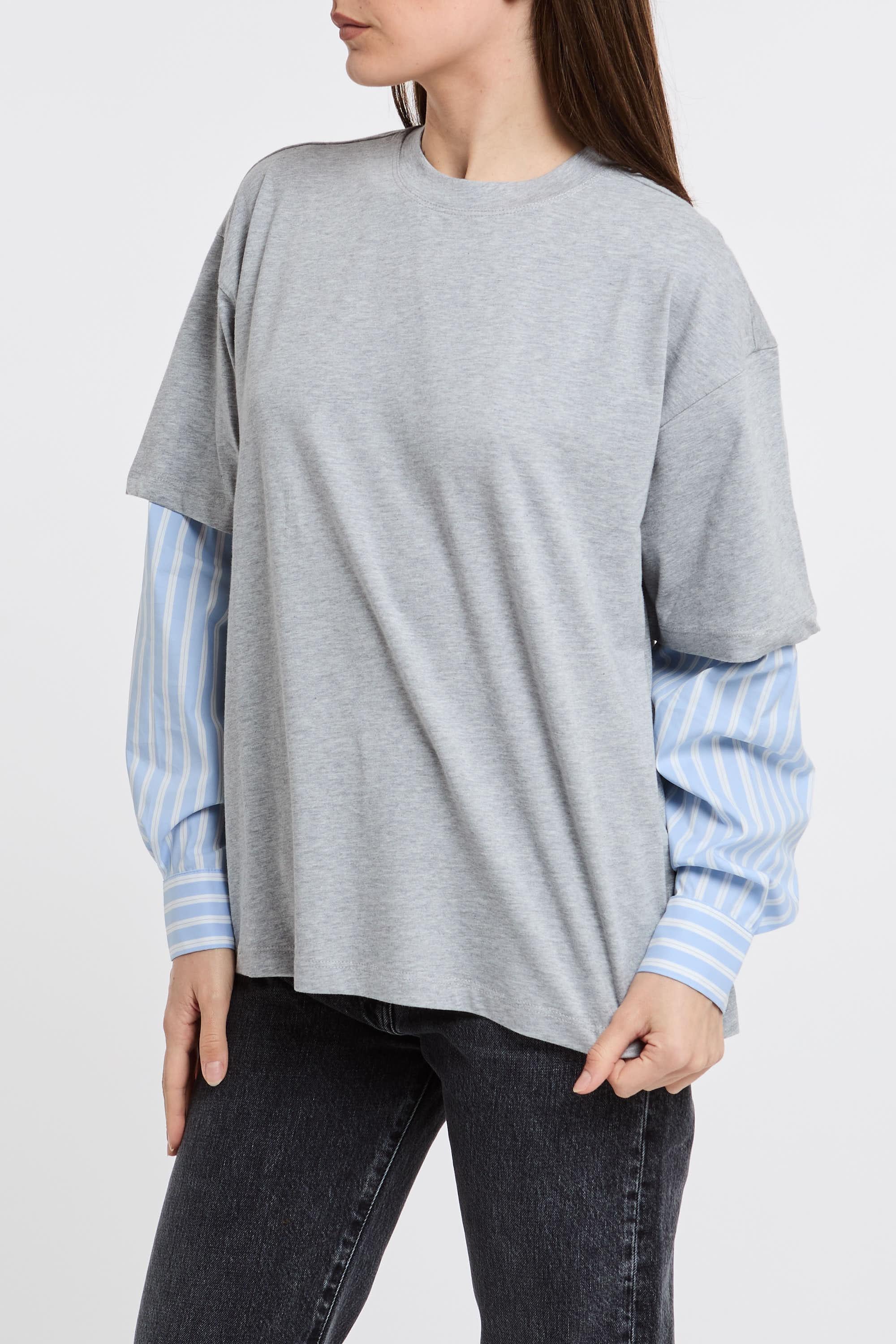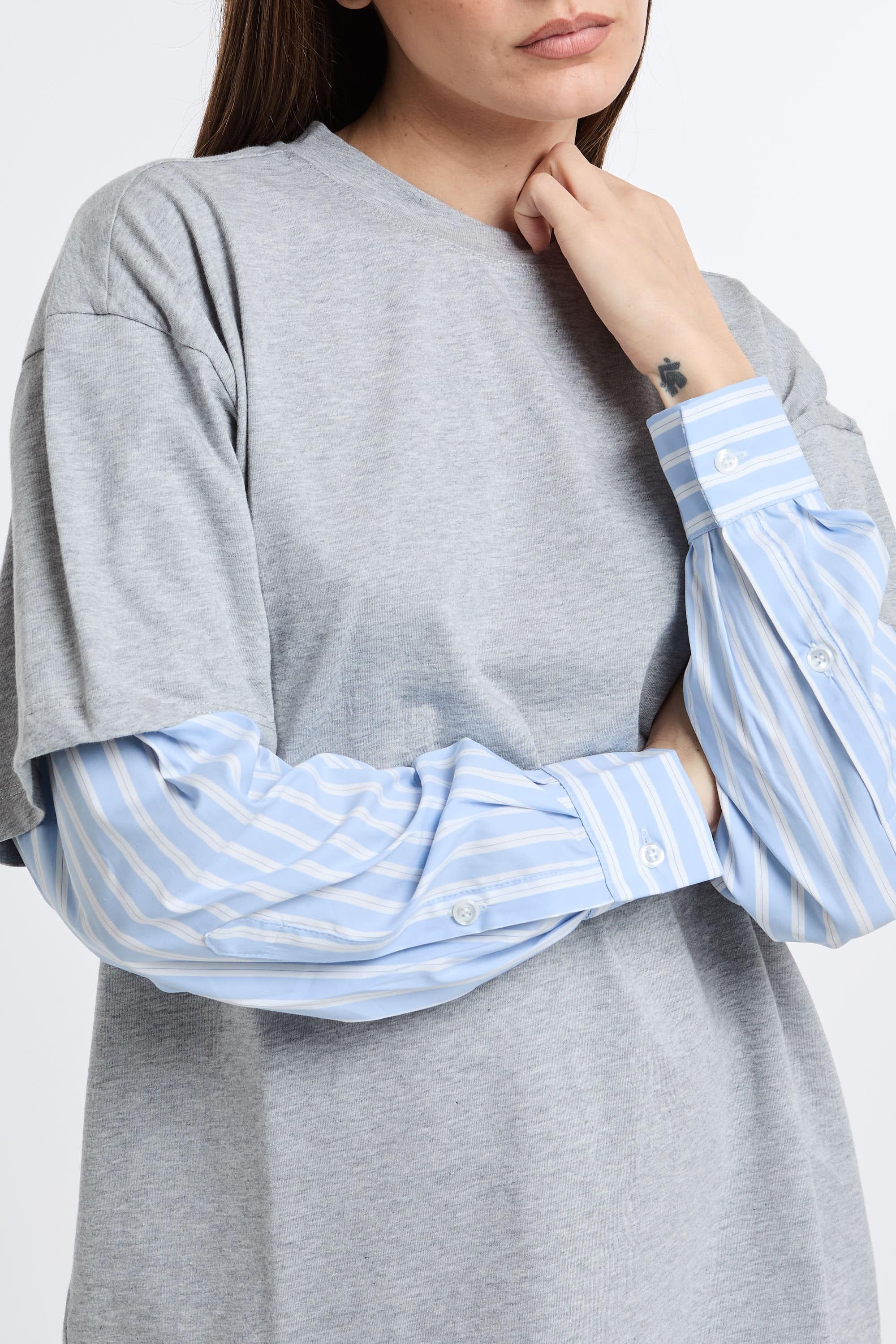T-shirt in jersey di cotone. Modello girocollo, maniche con inserto in popeline. Vestibilità regular, lunghezza bacino. Stampa logo in tono. La modella è alta 178 cm e indossa la taglia S.