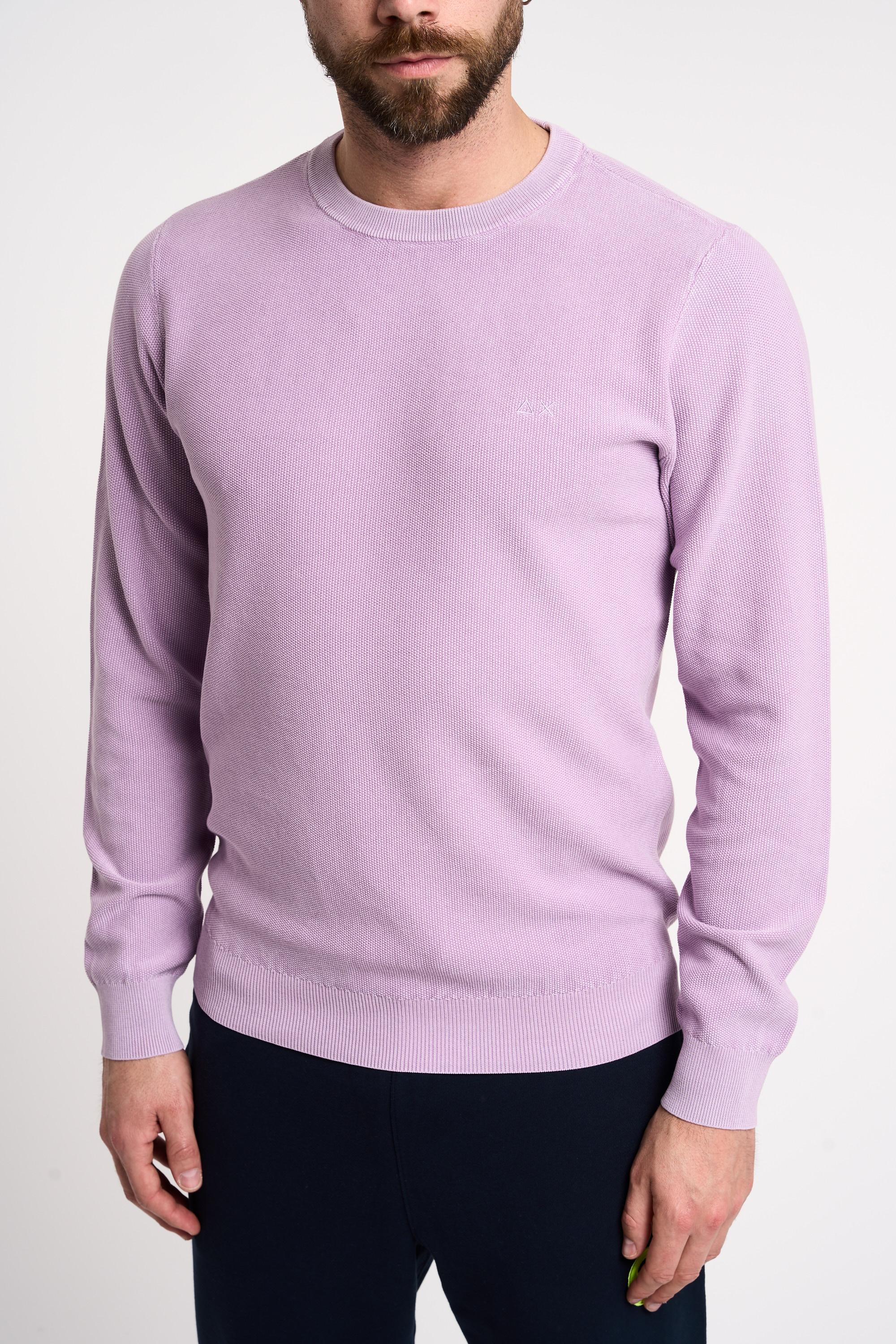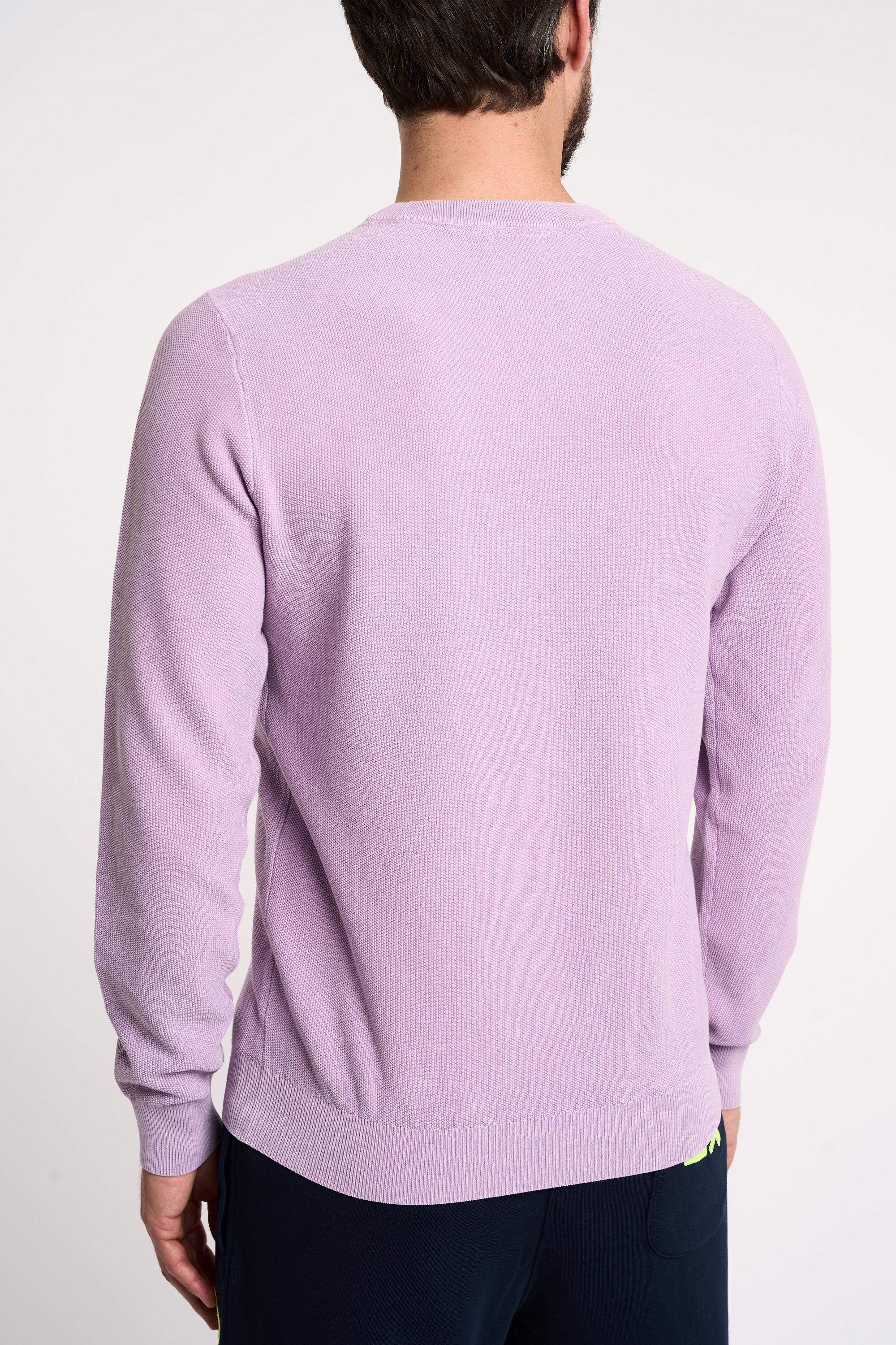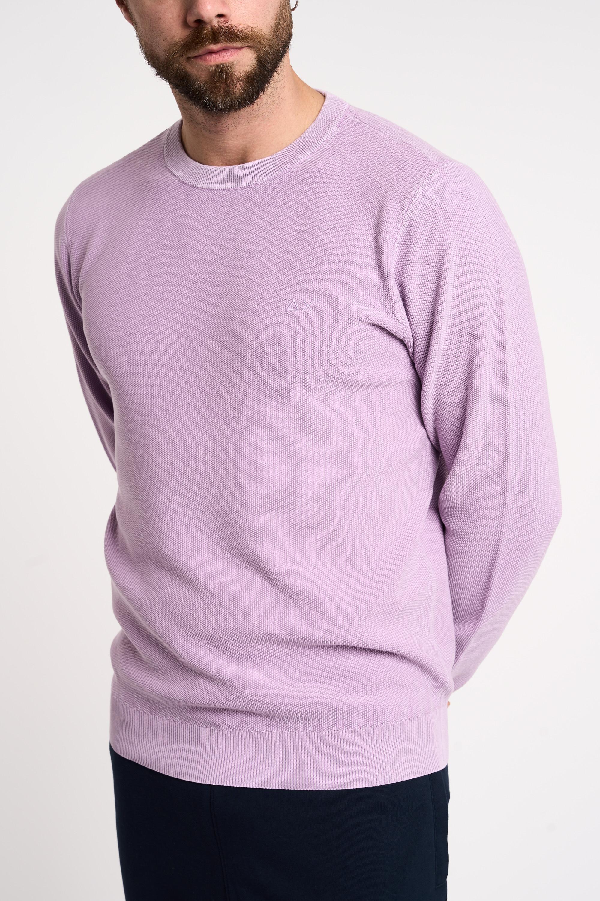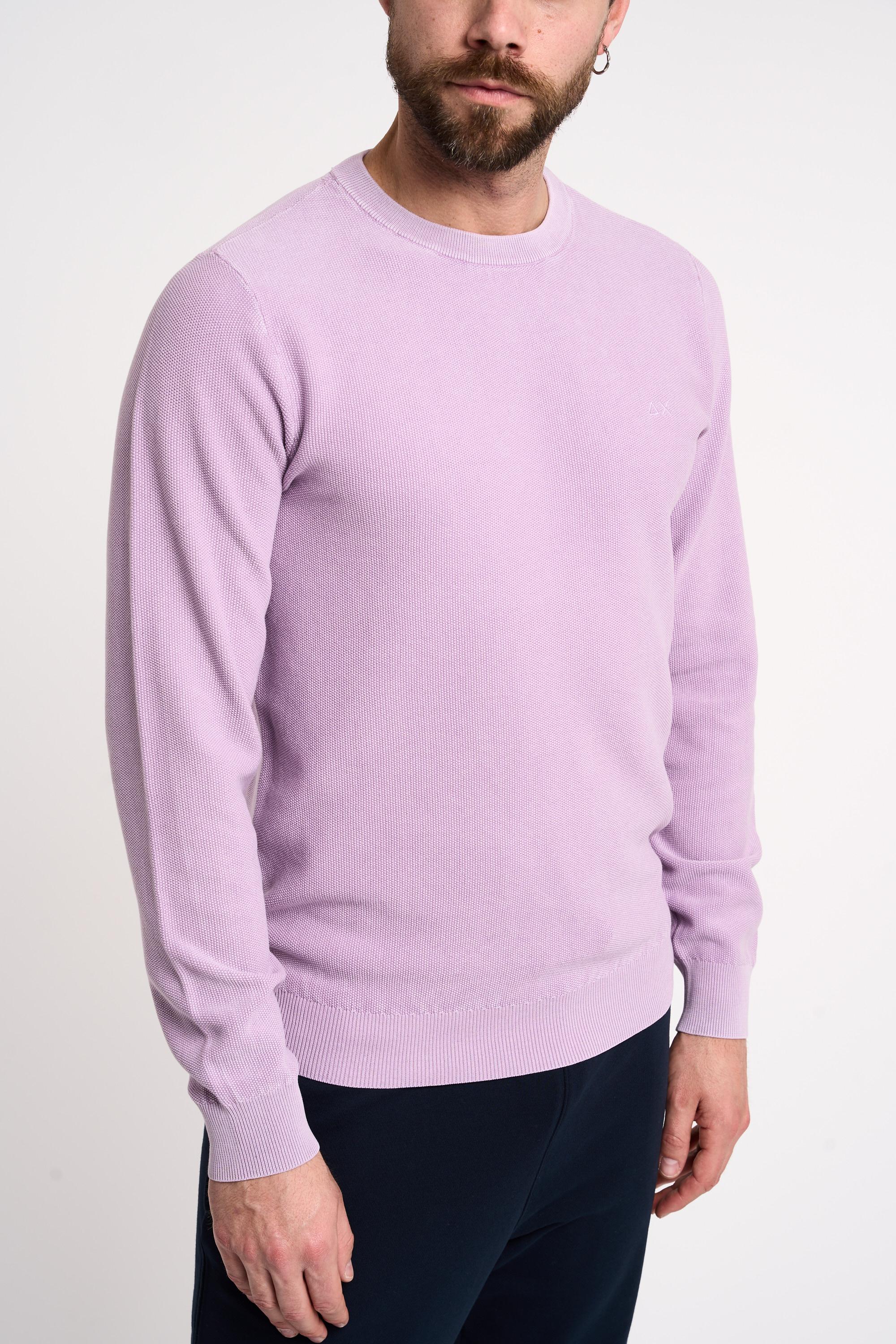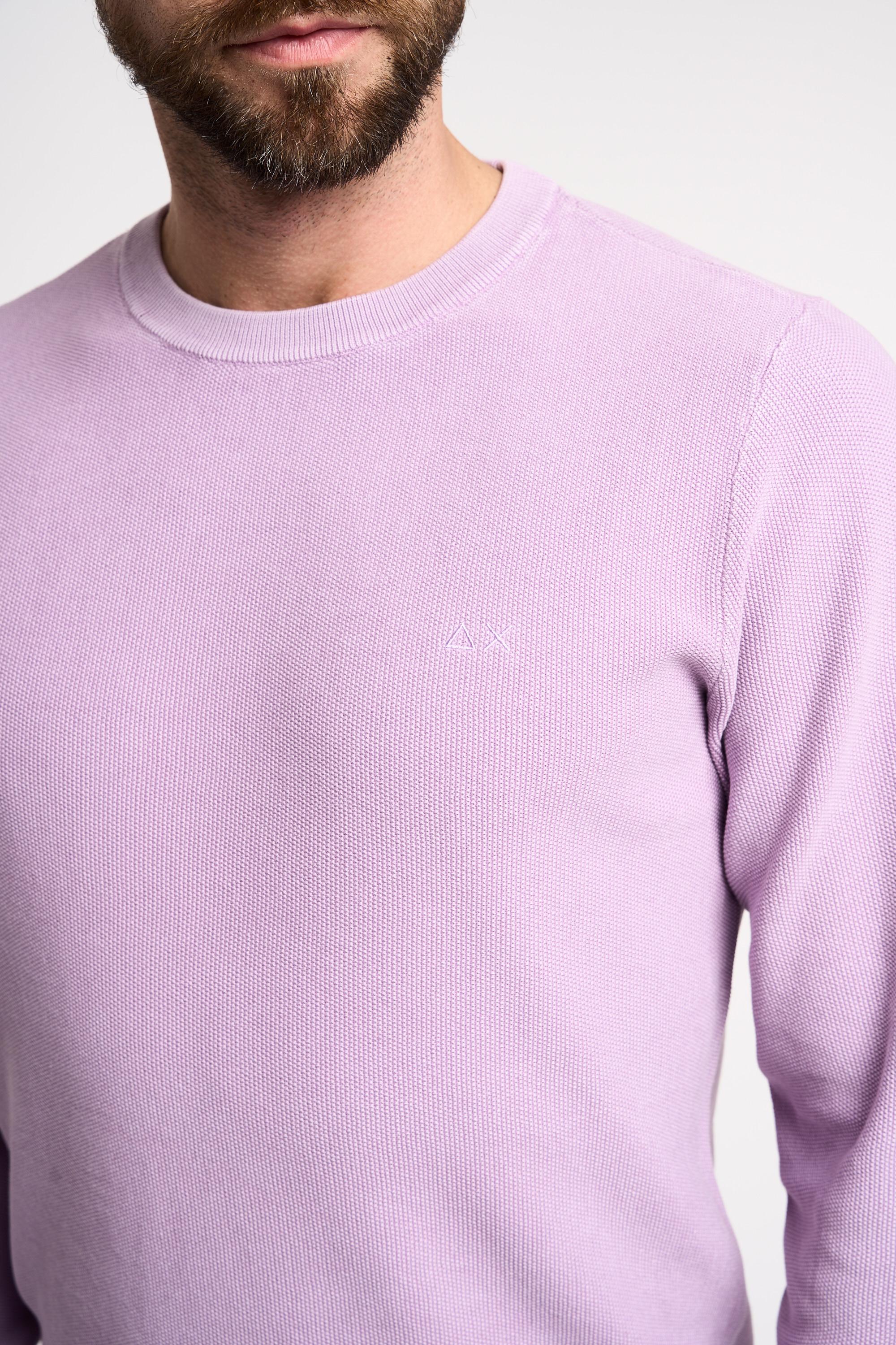 Maglia vintage girocollo in cotone maniche lunghe con collo e polsini a costine. Il modello è alto 187 cm e indossa la taglia L.