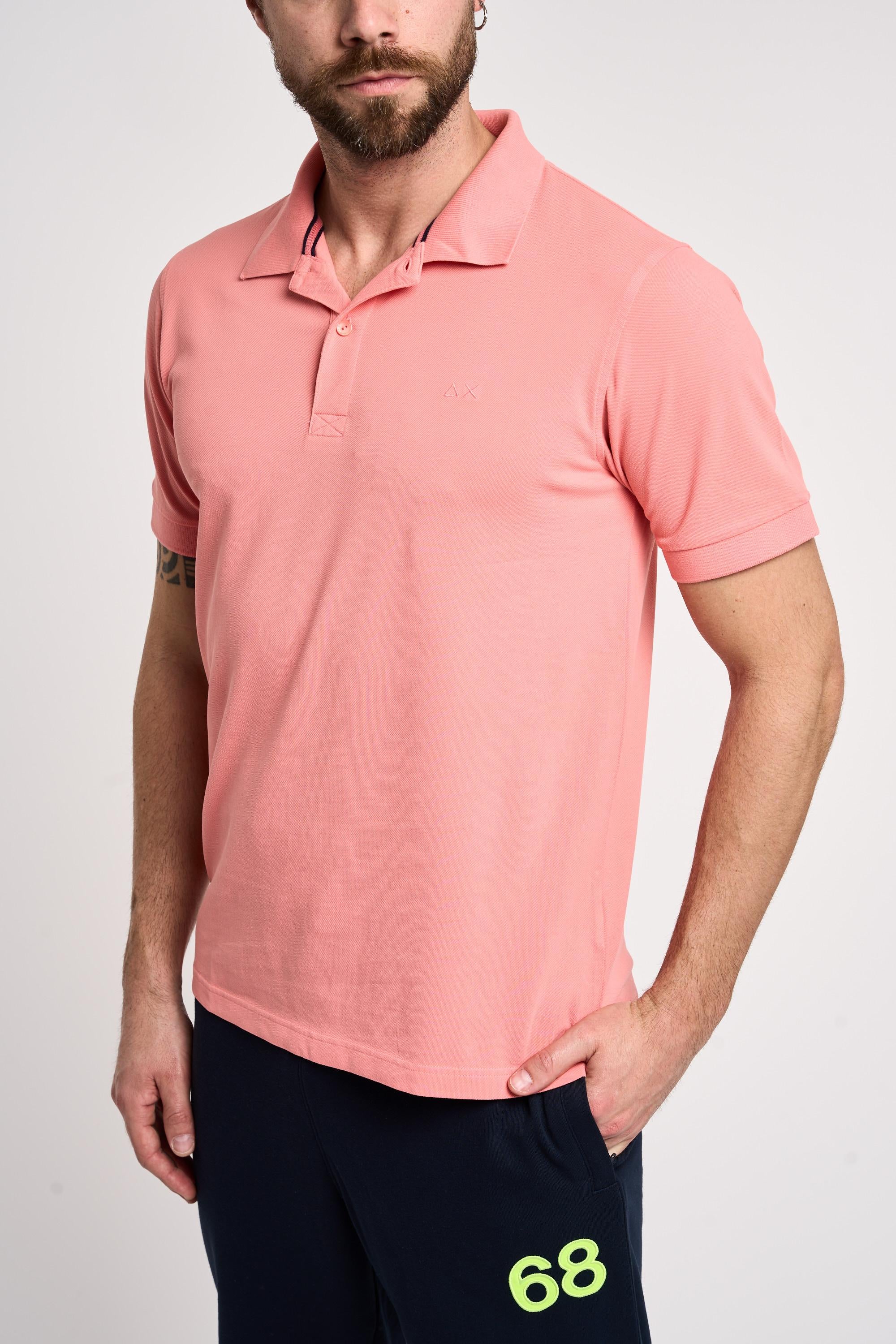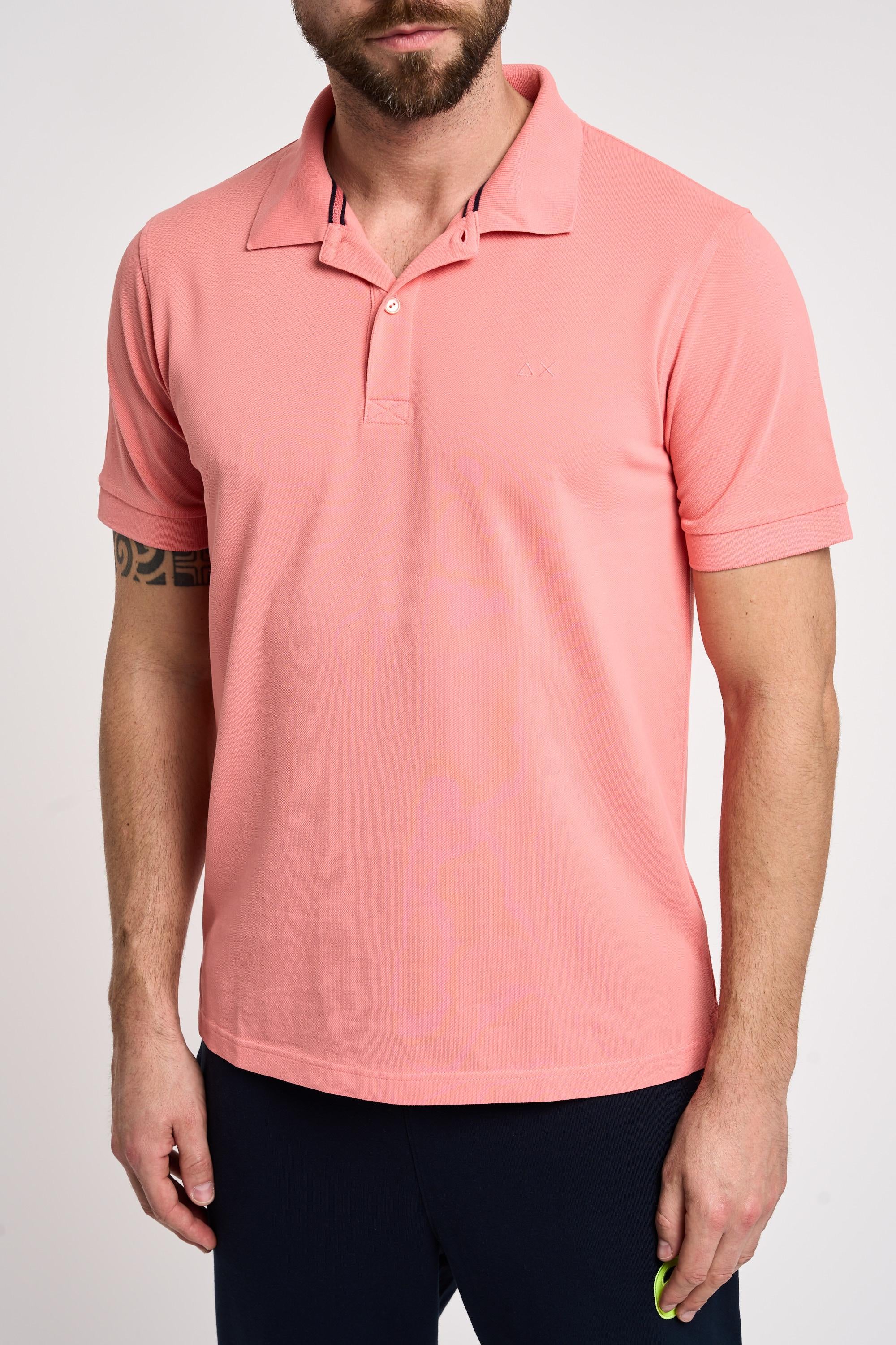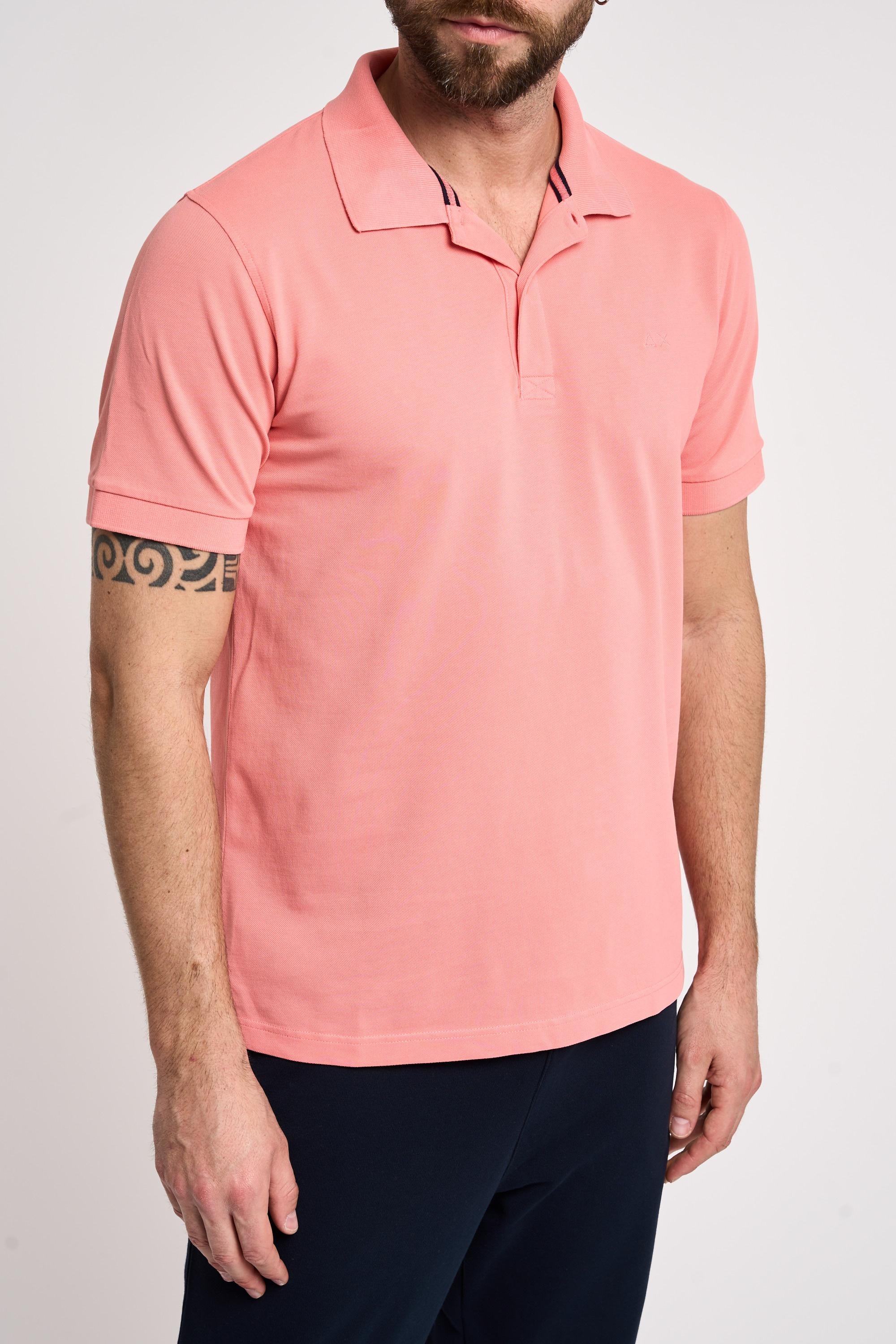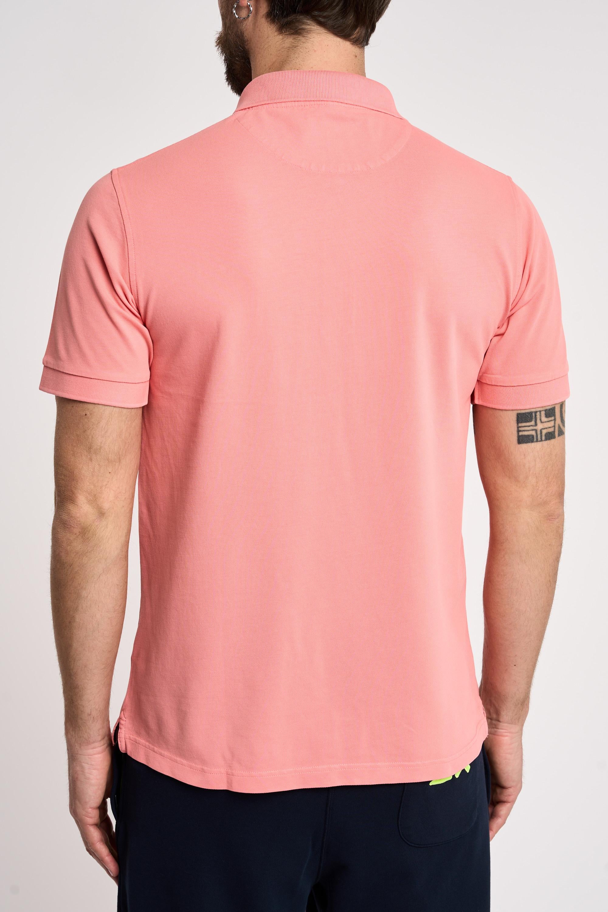 Polo in piquet a maniche corte con colletto. Chiusura due bottoni sulla parte frontale. Il modello è alto 187 cm e indossa la taglia L.