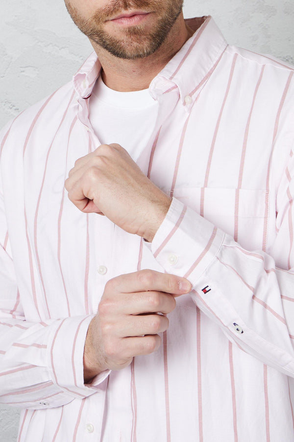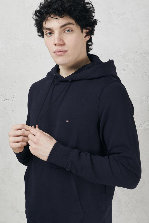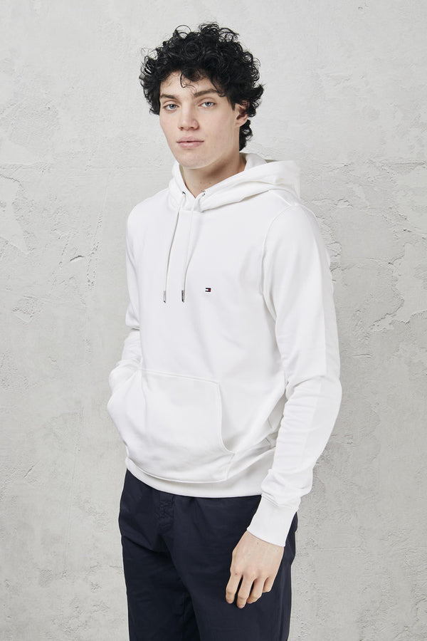 Maglia girocollo con polsini e fondo a coste. Bandierina Tommy Hilfiger ricamata sul polsino. Il modello è alto 187 cm e indossa la taglia M.