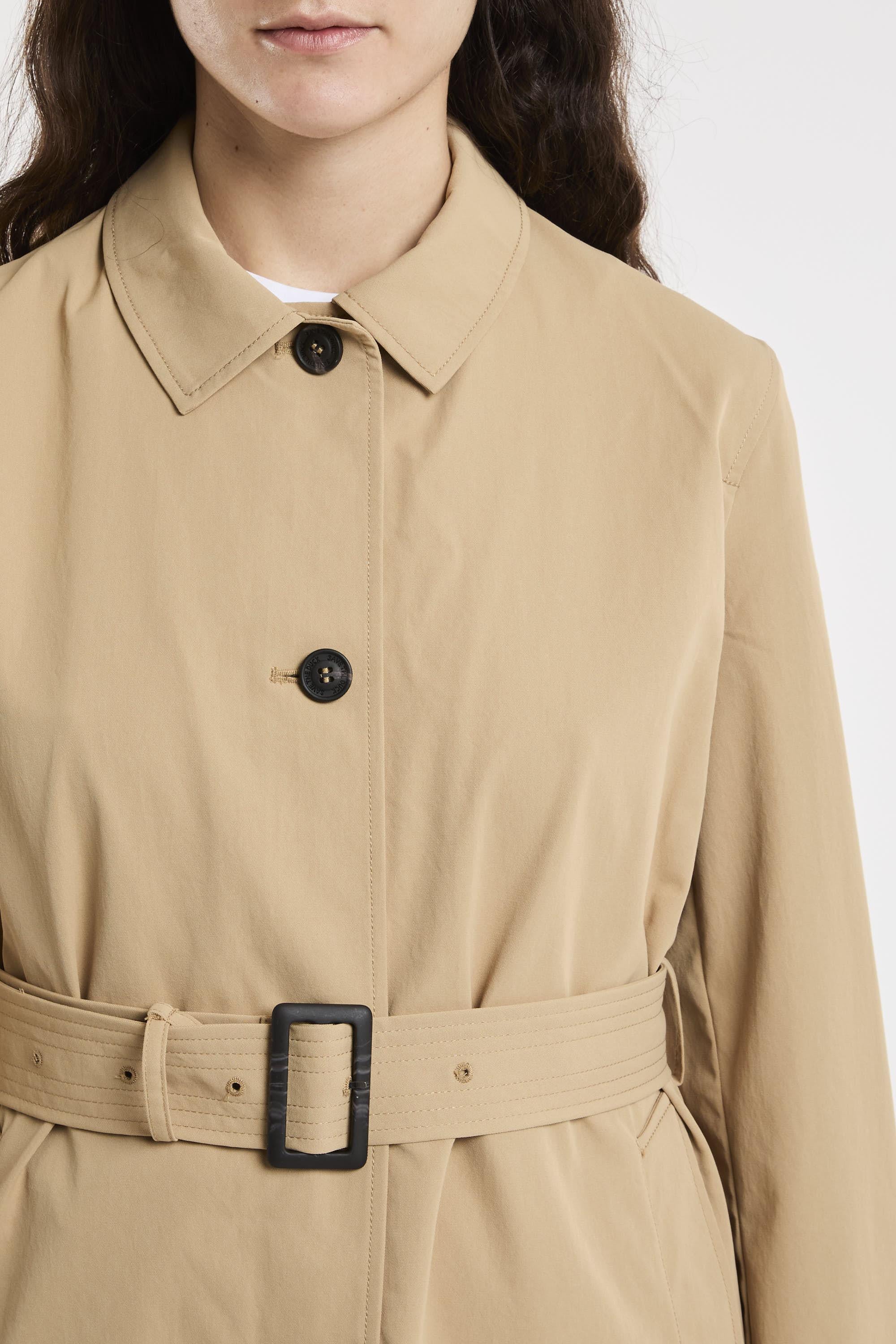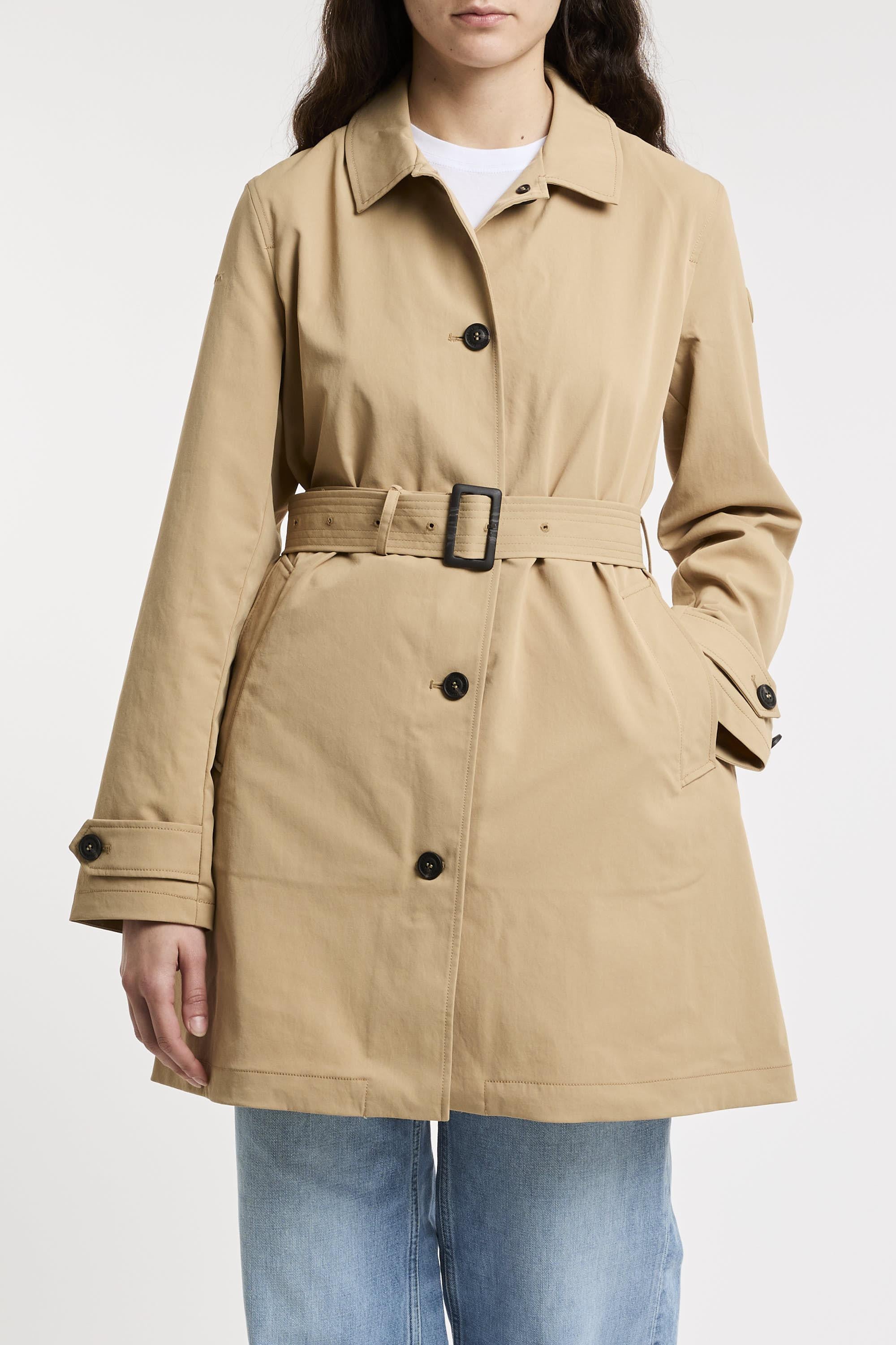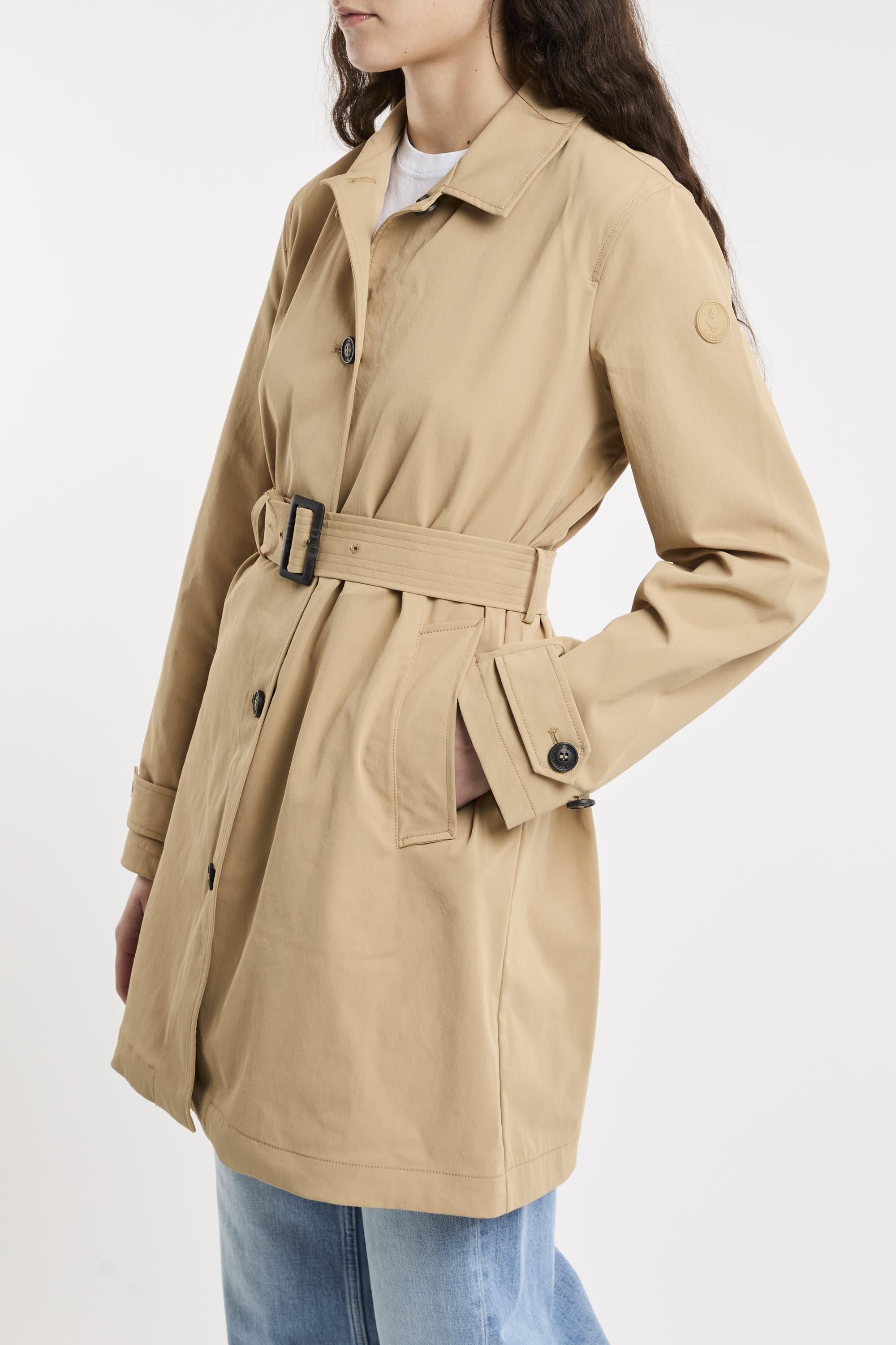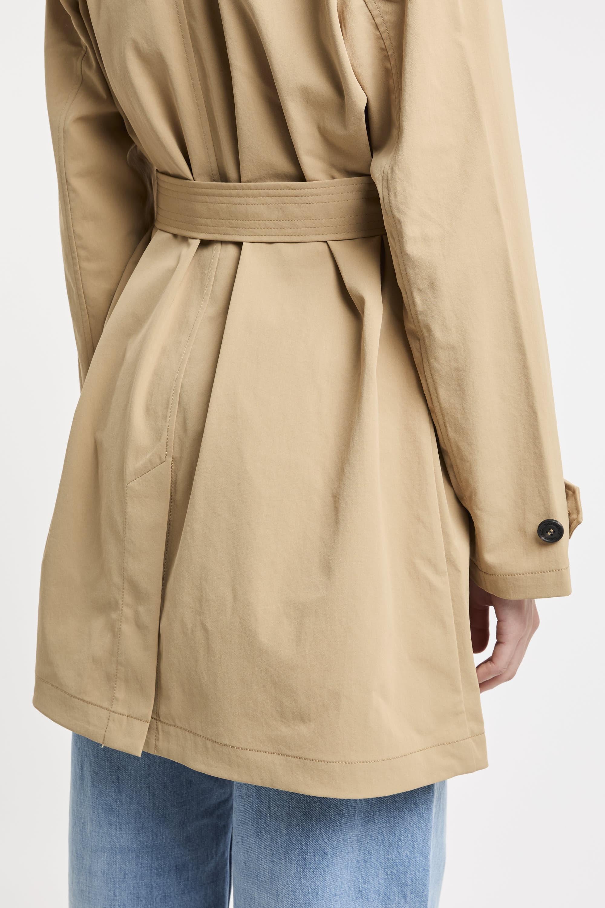 Trench Verve realizzato in gabardina traspirante e leggera. Chiusura centrale con bottoni logati. Due tasche a filo laterali. Manica lunga con cinturino regolabile. Badge tondo in nuance applicato sulla manica. Cintura con fibbia removibile. La modella è alta 178 cm e indossa la taglia I.