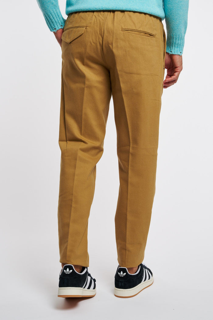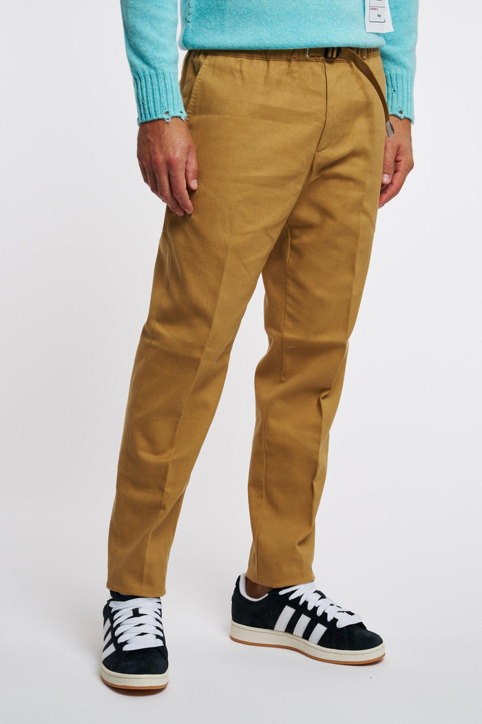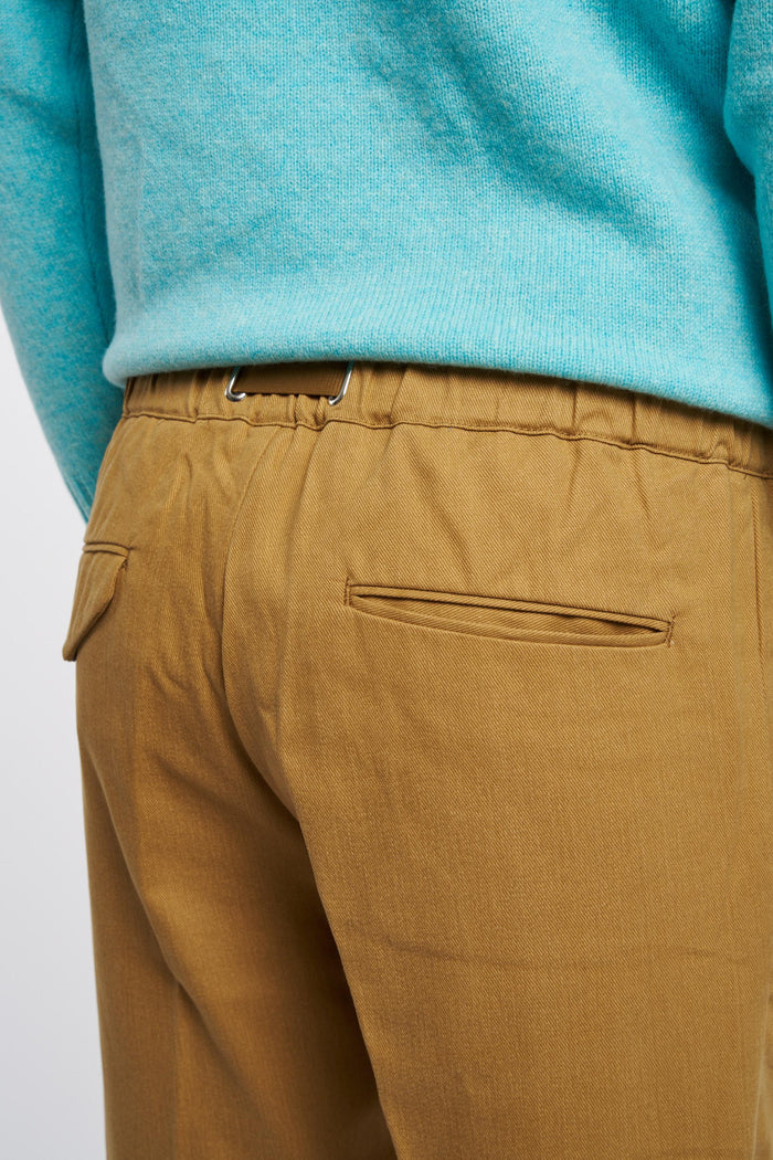 Pantalone in cotone con cinturino regolabile in vita. Tasche laterali e due tasche posteriori a filo. Chiusura frontale con zip nascosta.
